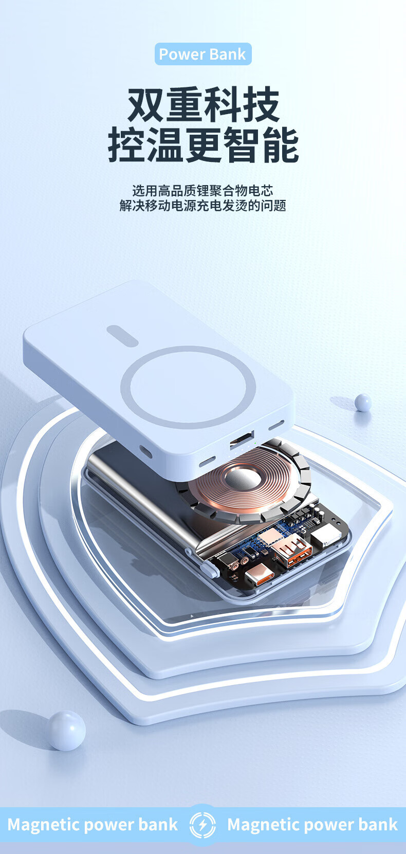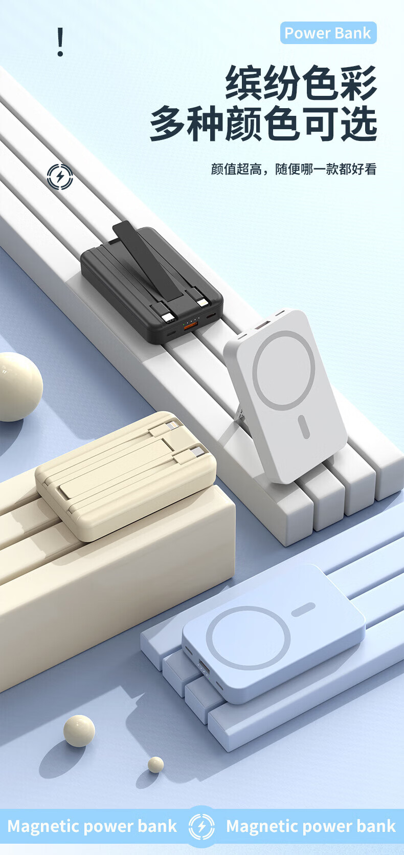 小米锅巴【国家3C认证】磁吸充电宝自带线智能无线充迷你超薄共享快充移动电源适用华为苹果 神秘黑【自带双快充线机身强力吸附】支架款 10000mAh