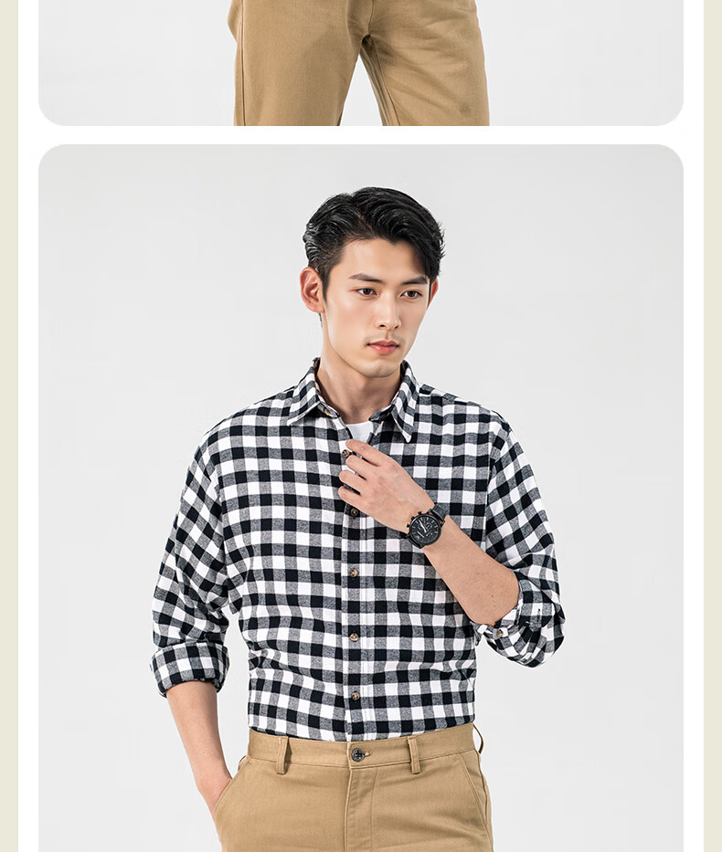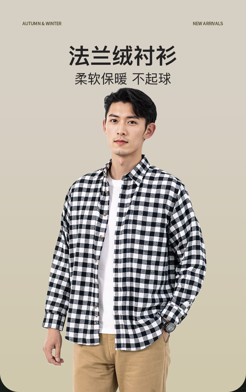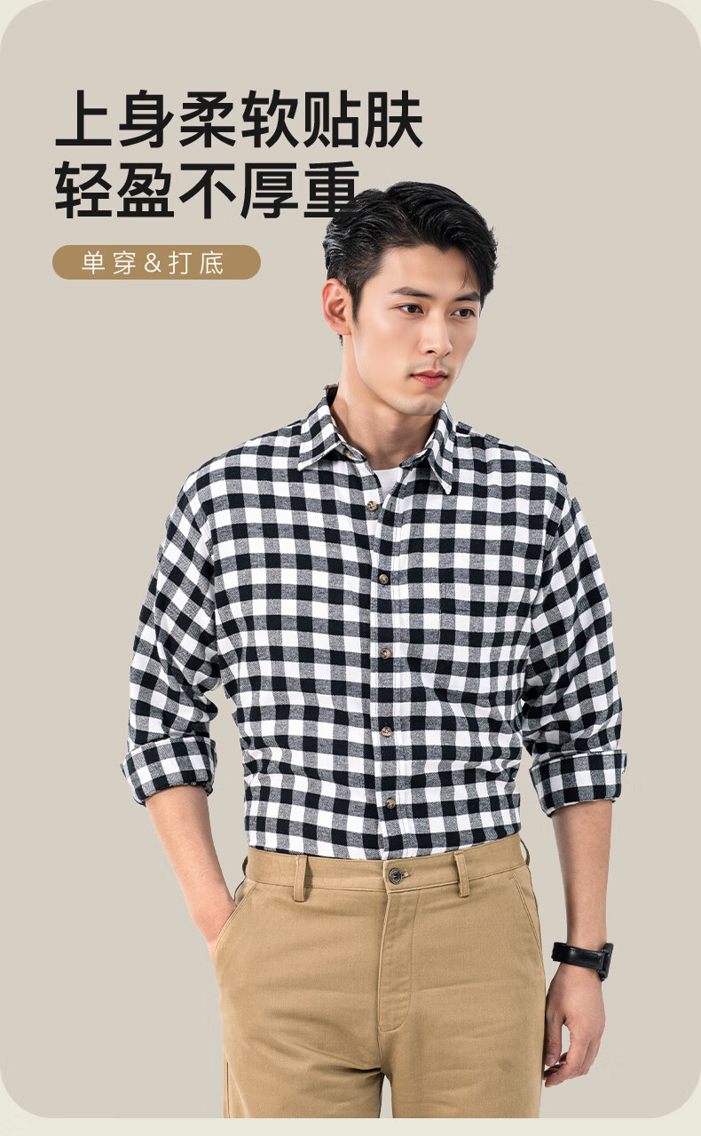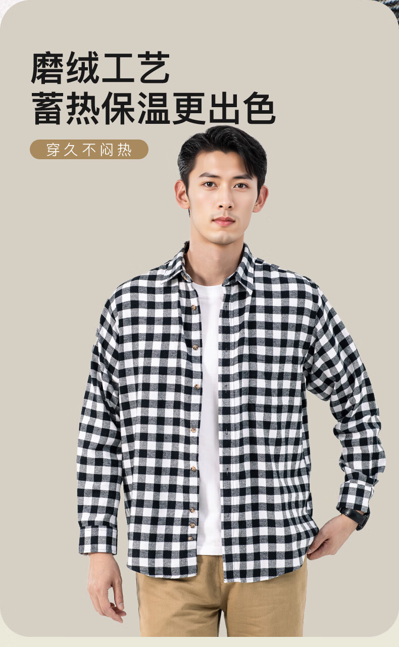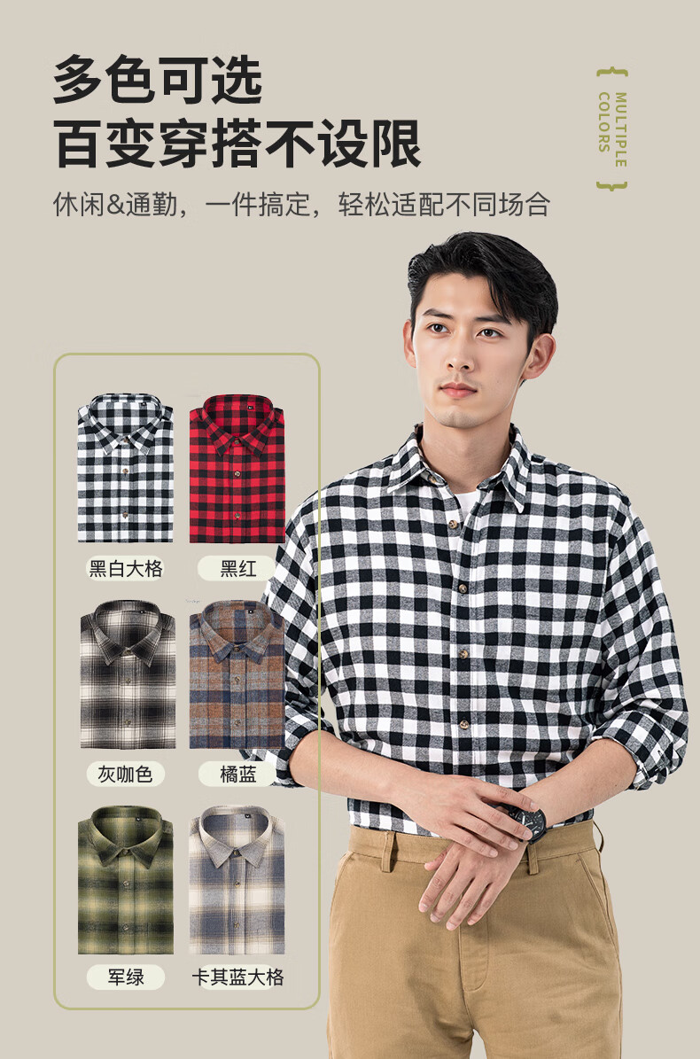 jameskingdom经典法兰绒磨毛男长袖衬衫格纹长袖衬衫男休闲衬衣外套 橘蓝BA185A274AH L