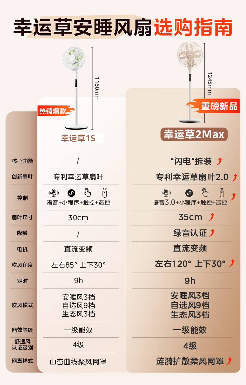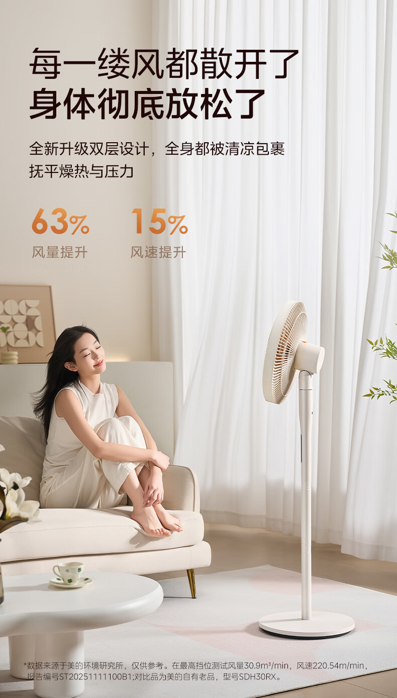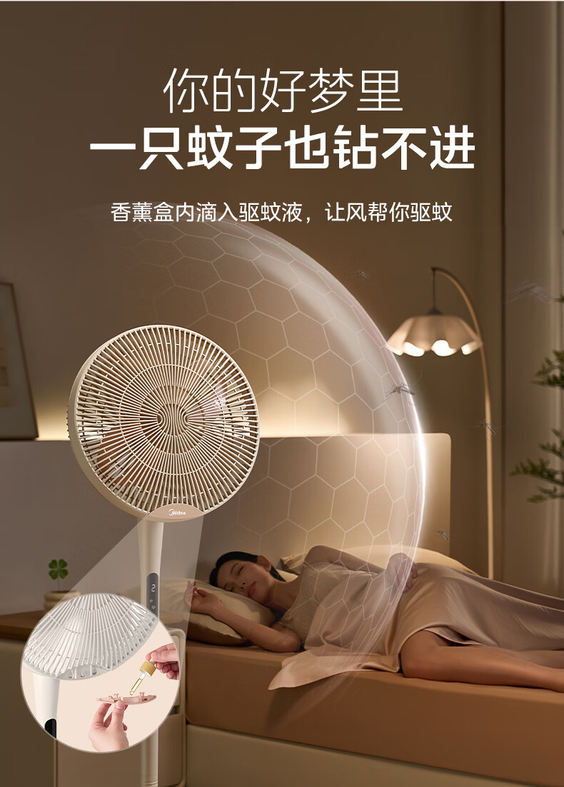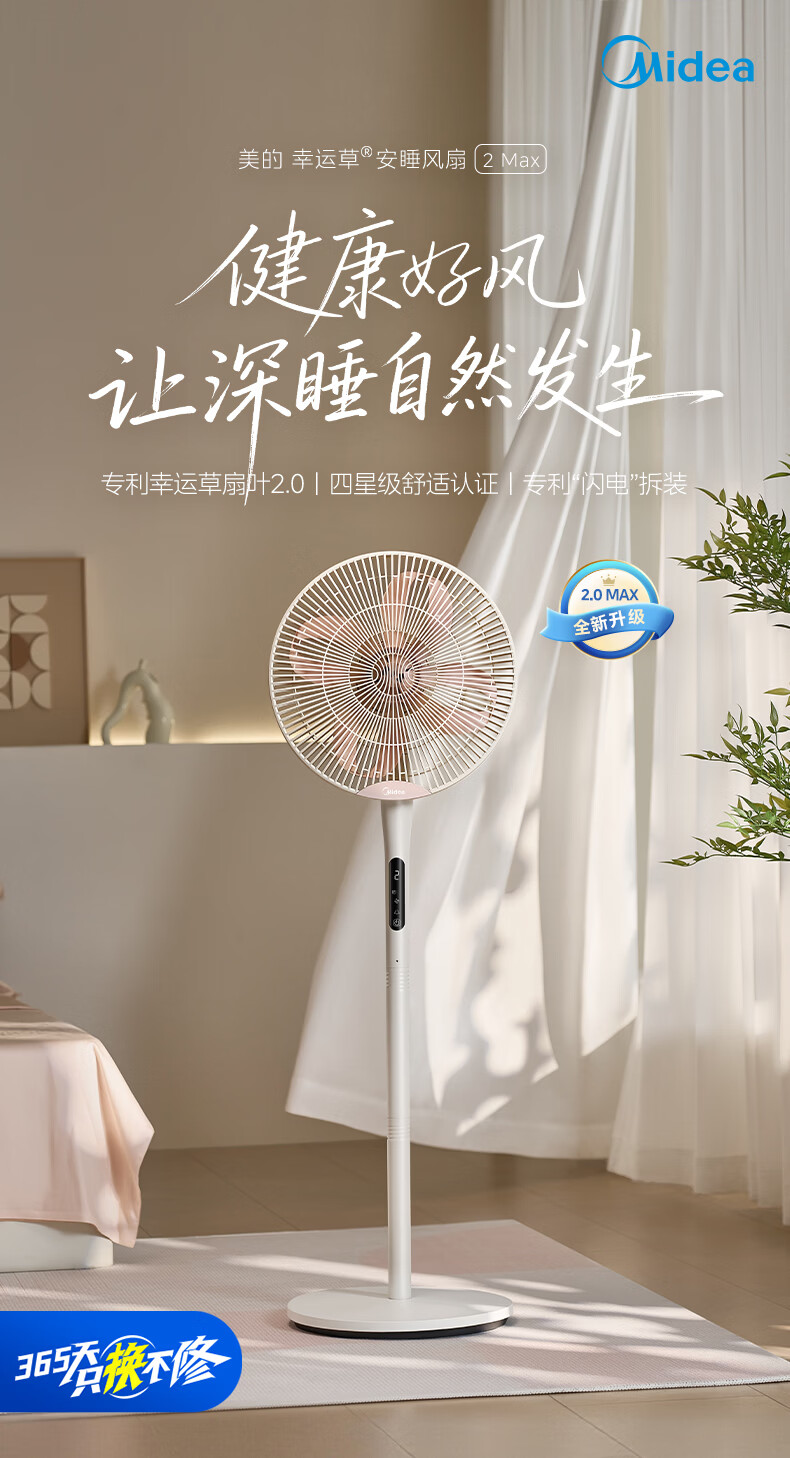 美的(Midea)【幸运草安睡2.0 MAX】一键闪装/直流变频家用轻音电风扇语音遥控落地扇 大风量一级能效卧室电扇