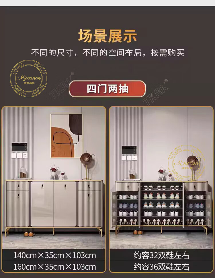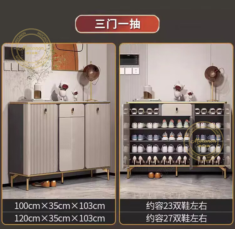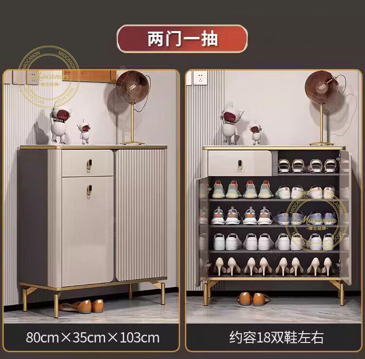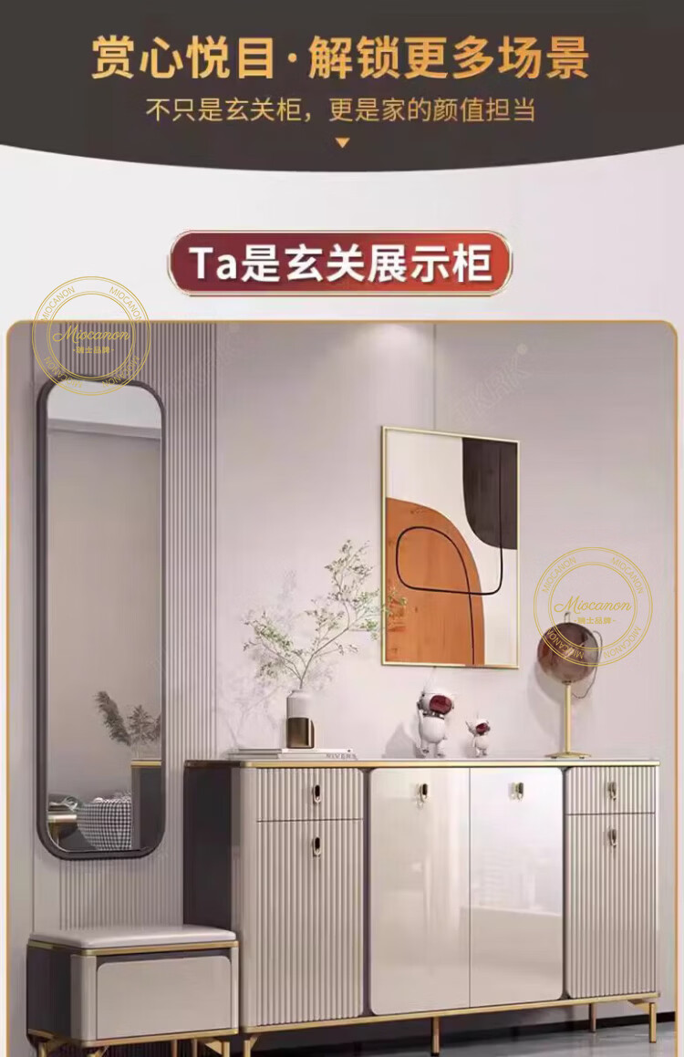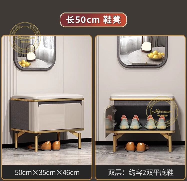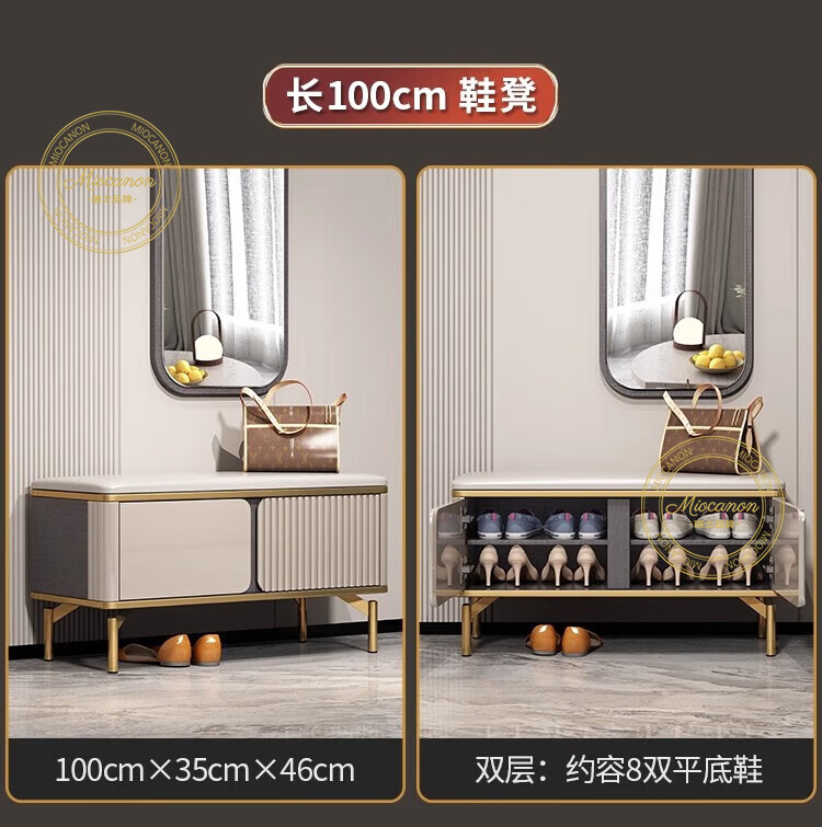 MIOCANON瑞士品牌轻奢鞋柜门口入户柜环保鞋架换鞋凳收纳柜靠墙家用玄关柜 【奢华香槟】80长+鞋凳50长