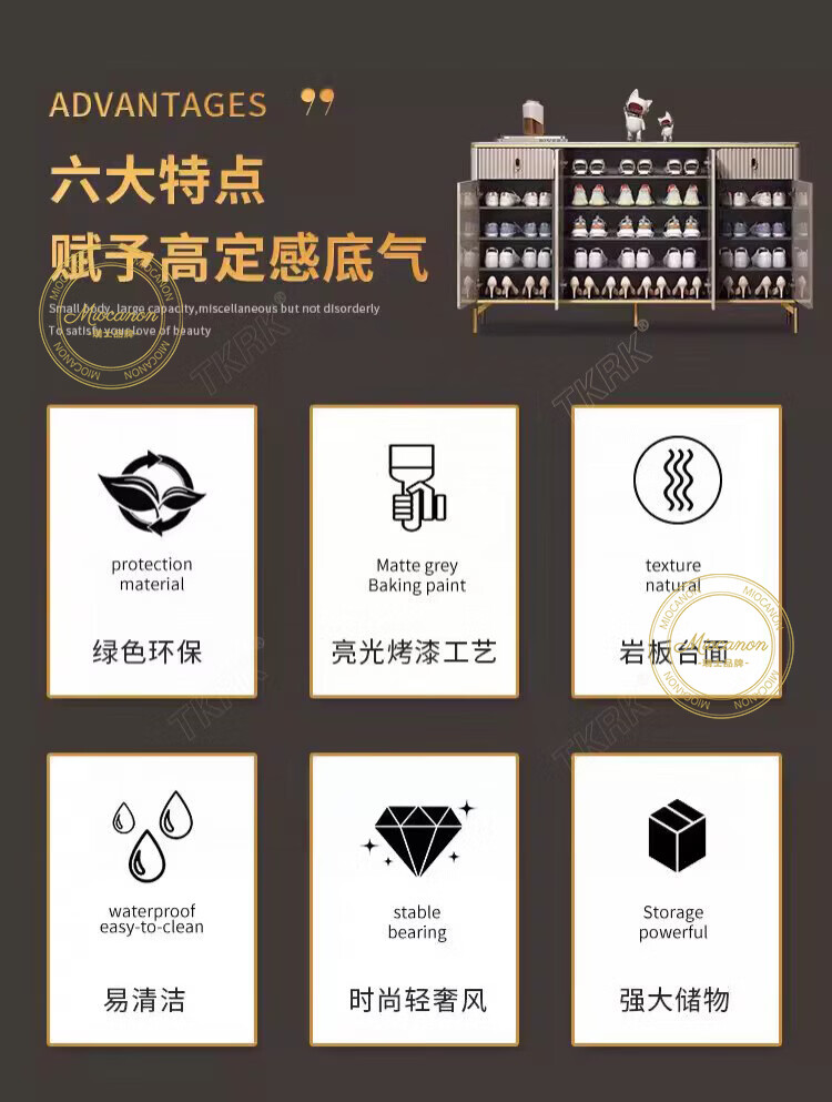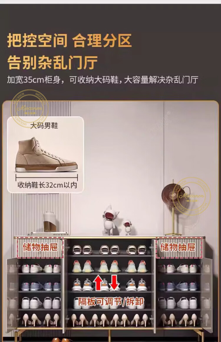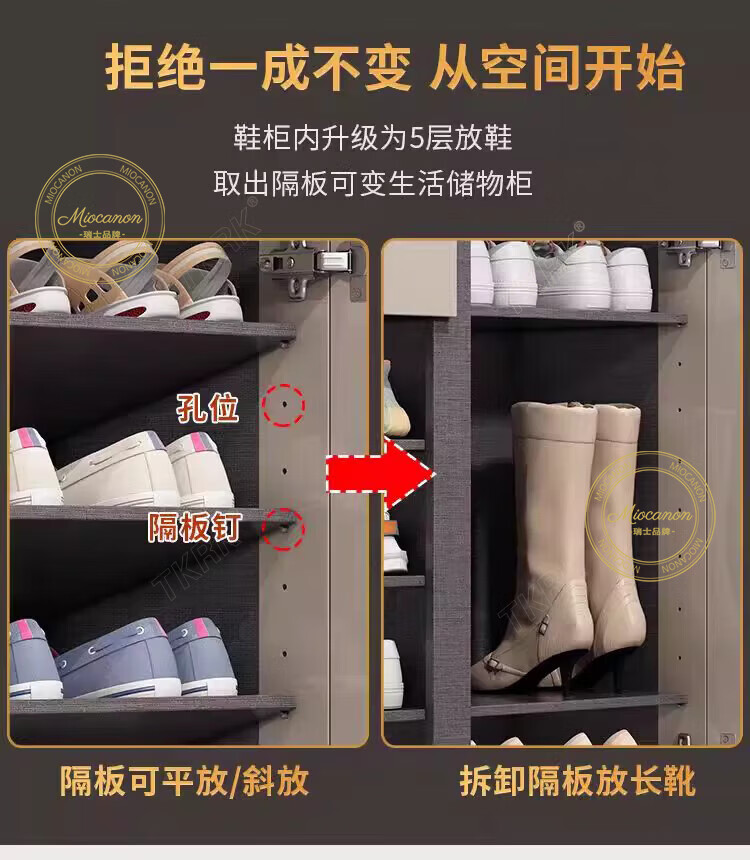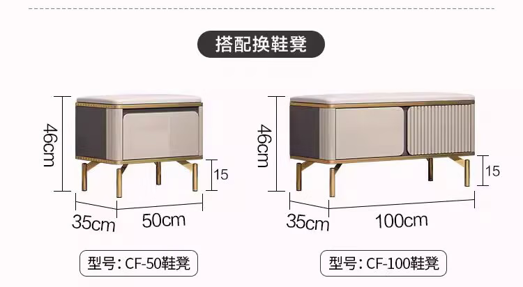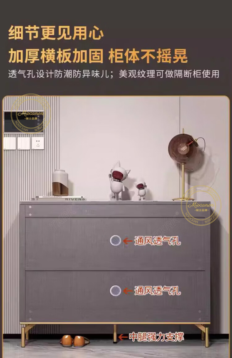 MIOCANON瑞士品牌轻奢鞋柜门口入户柜环保鞋架换鞋凳收纳柜靠墙家用玄关柜 【奢华香槟】80长+鞋凳50长