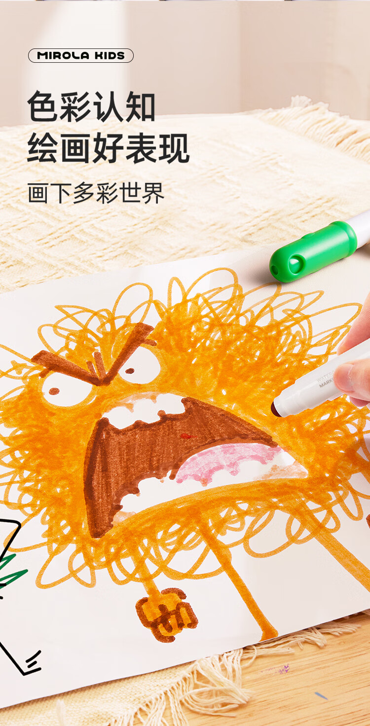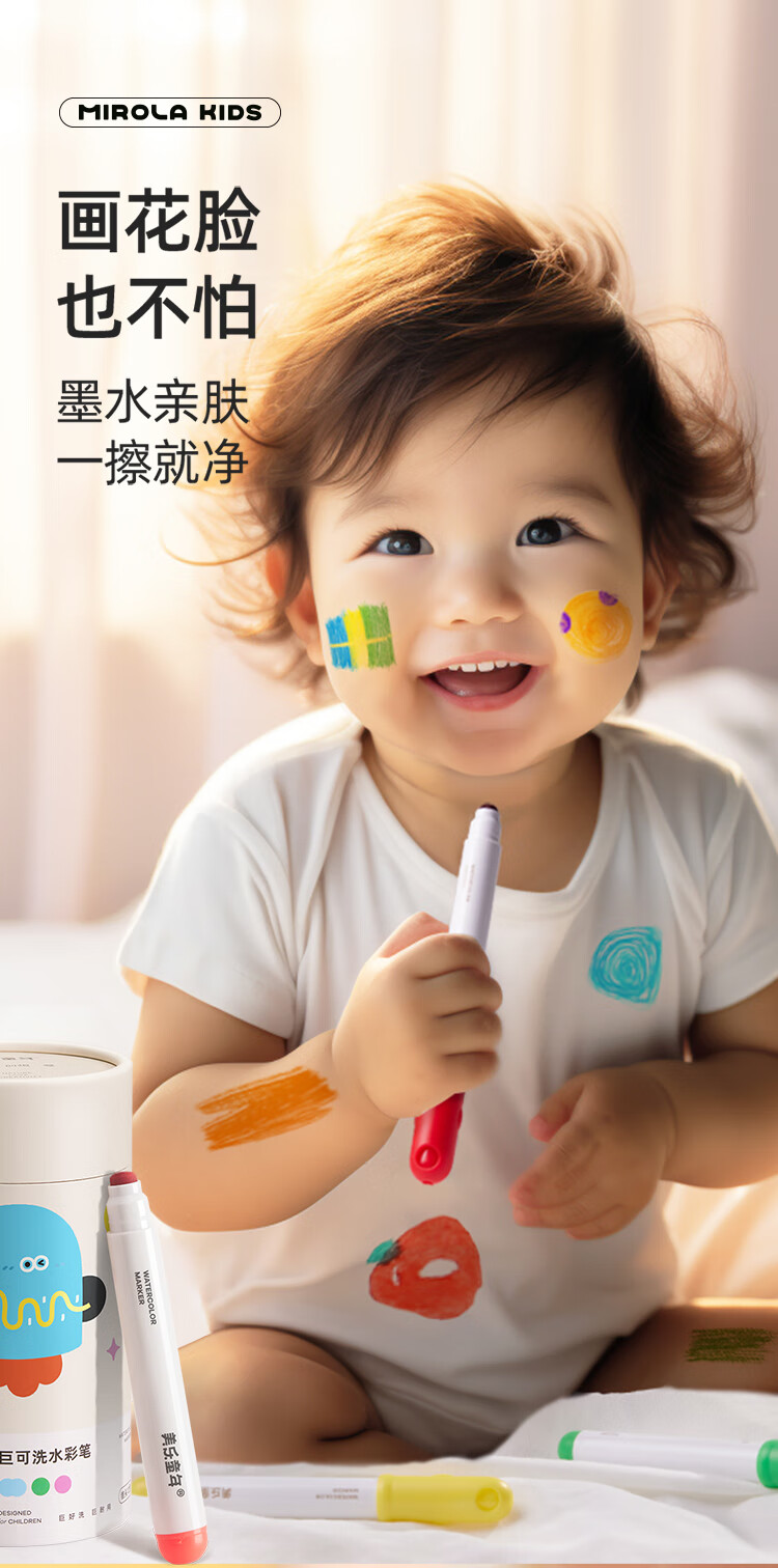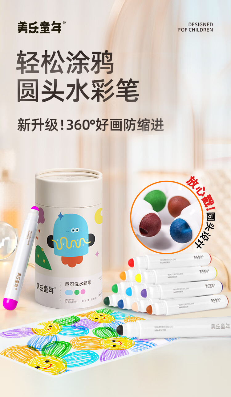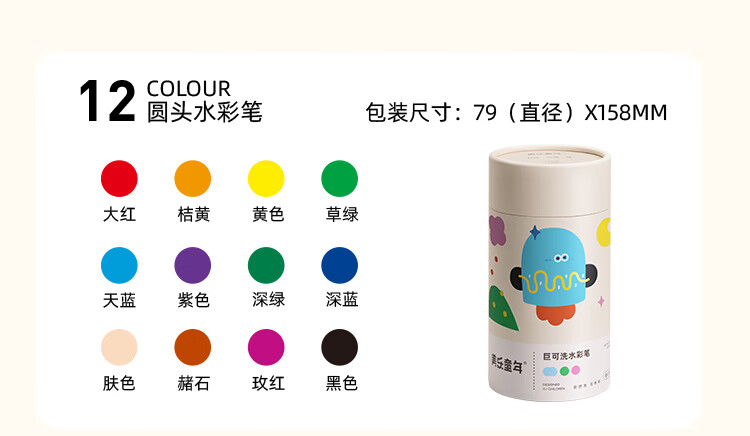美乐童年水彩笔12色画笔无毒可水洗婴儿圆头宝宝防戳彩笔1岁2岁3岁涂鸦笔