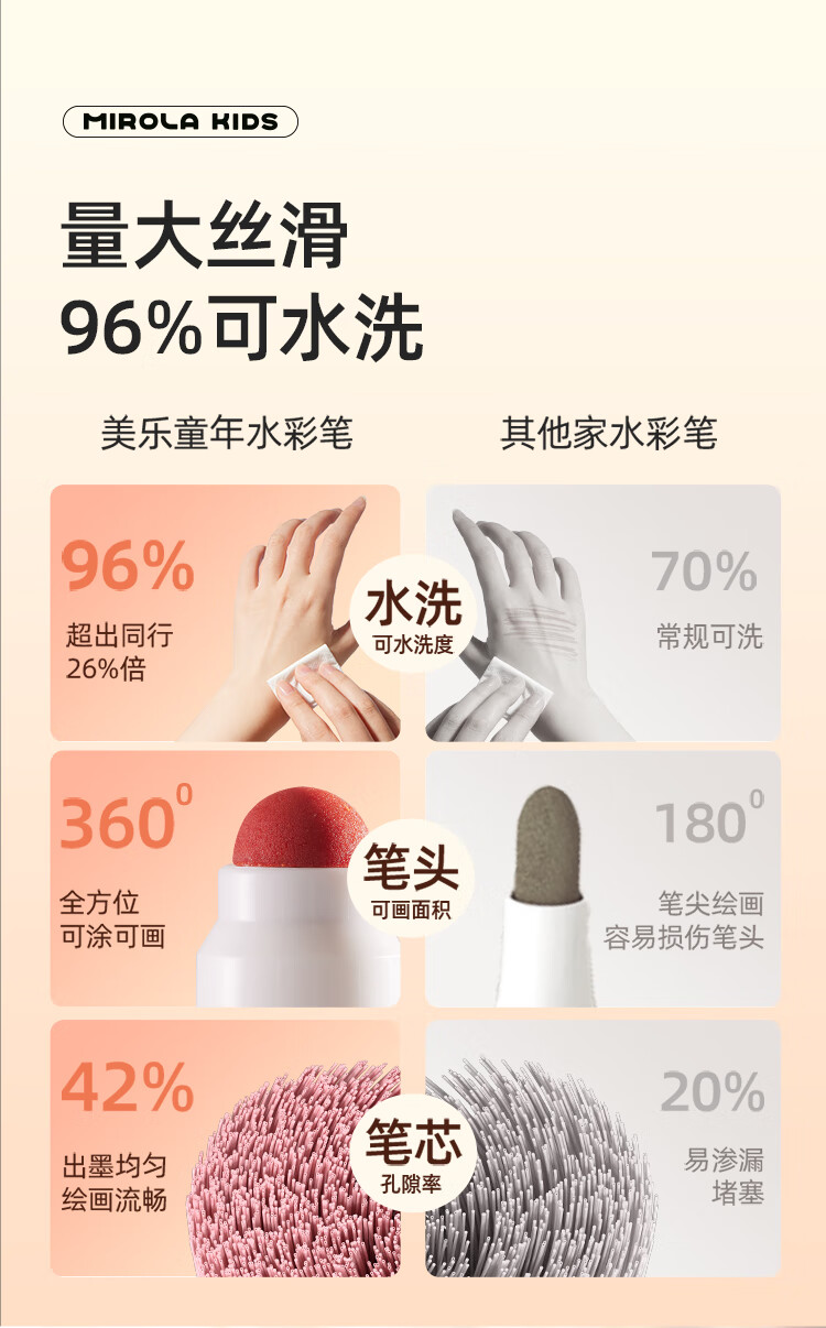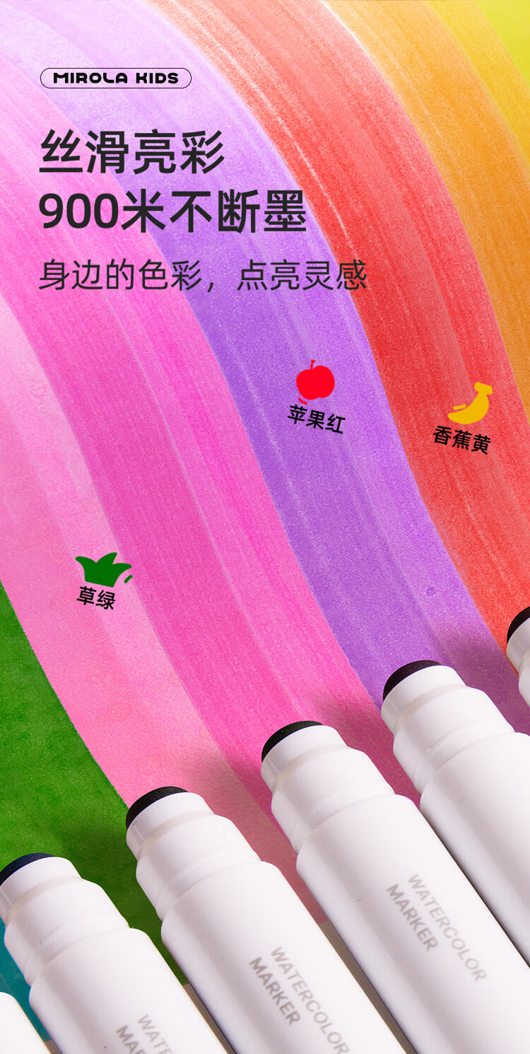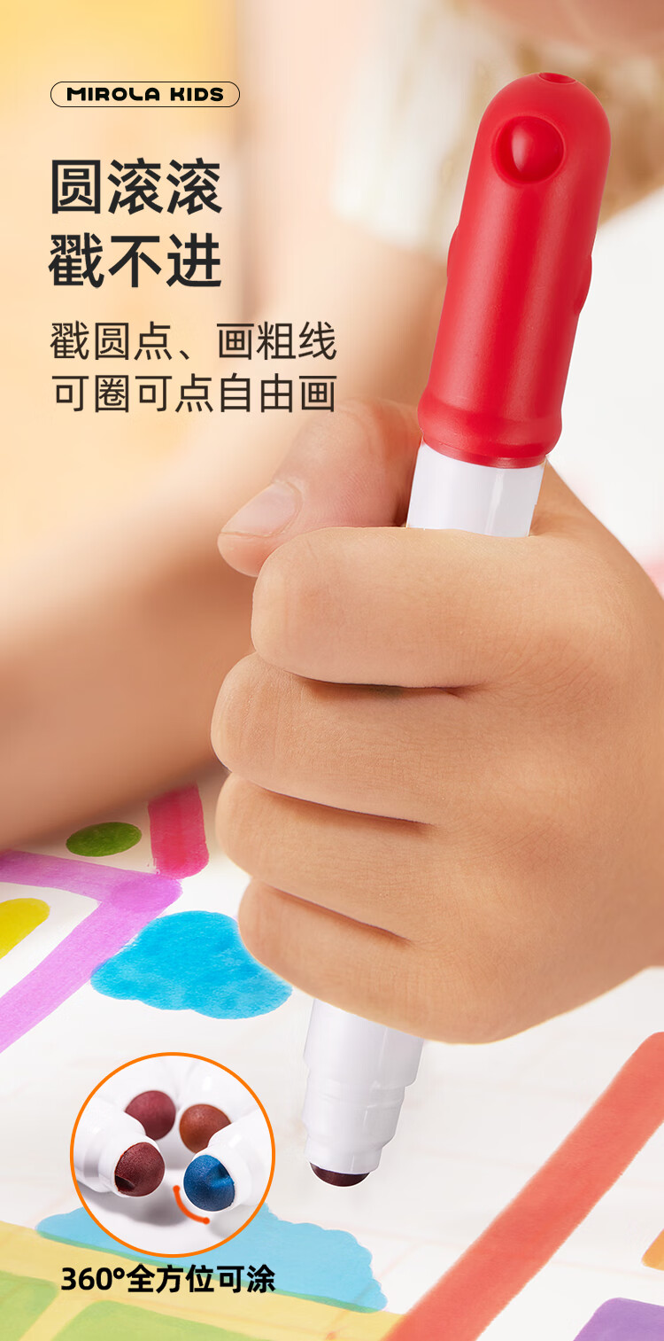 美乐童年水彩笔12色画笔无毒可水洗婴儿圆头宝宝防戳彩笔1岁2岁3岁涂鸦笔
