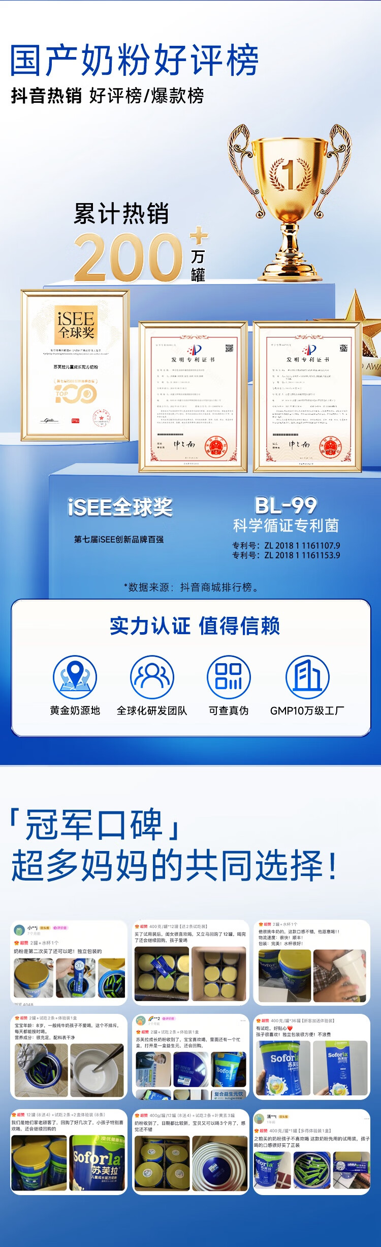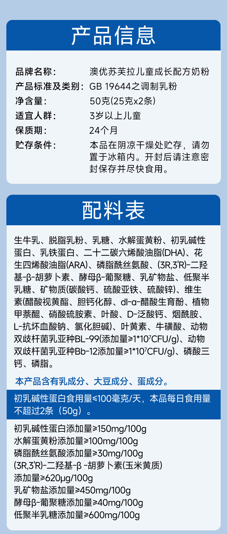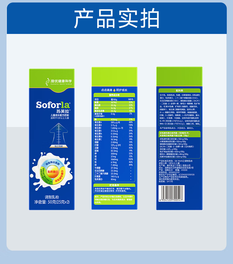 苏芙拉澳优儿童成长奶粉3-15岁50g/盒 CBP+高钙骨骼发育自护吸收