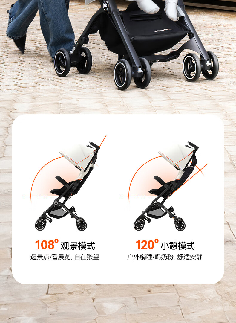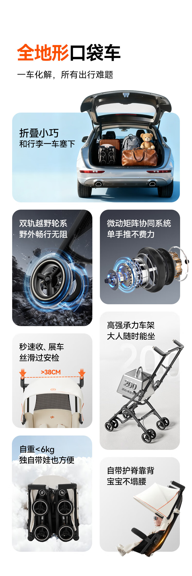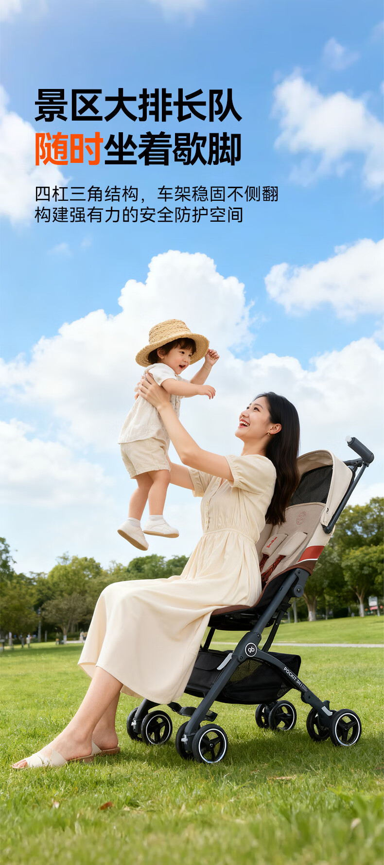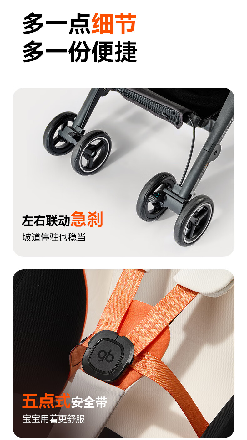 好孩子(gb)口袋车®婴儿推车可登机遛娃轻便折叠带减震旅行车6个月-4岁 黑橙
