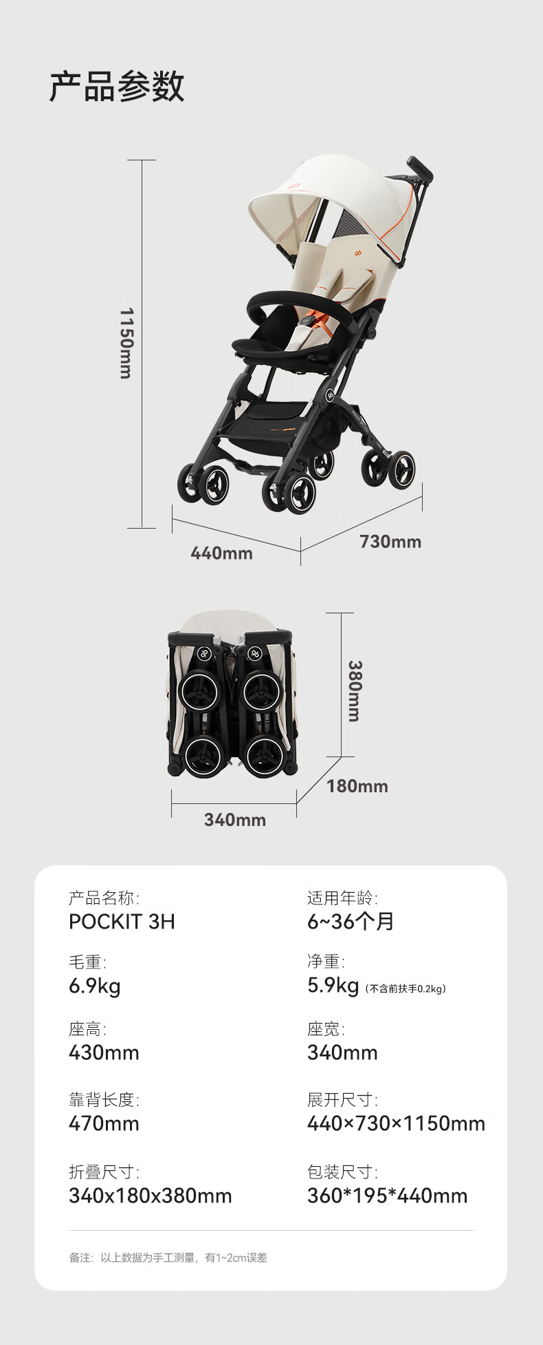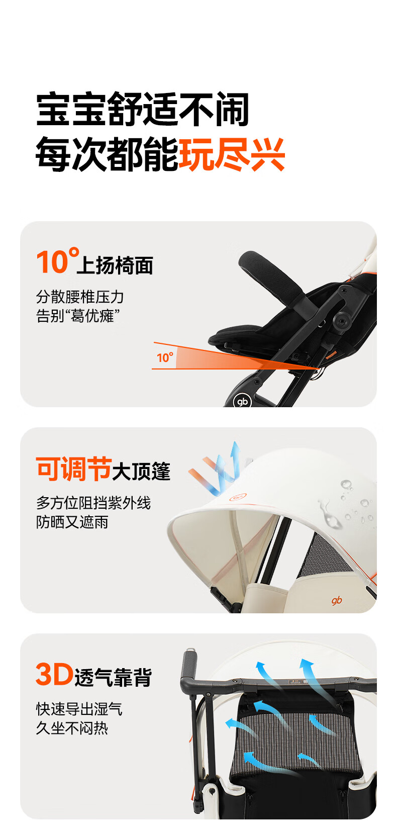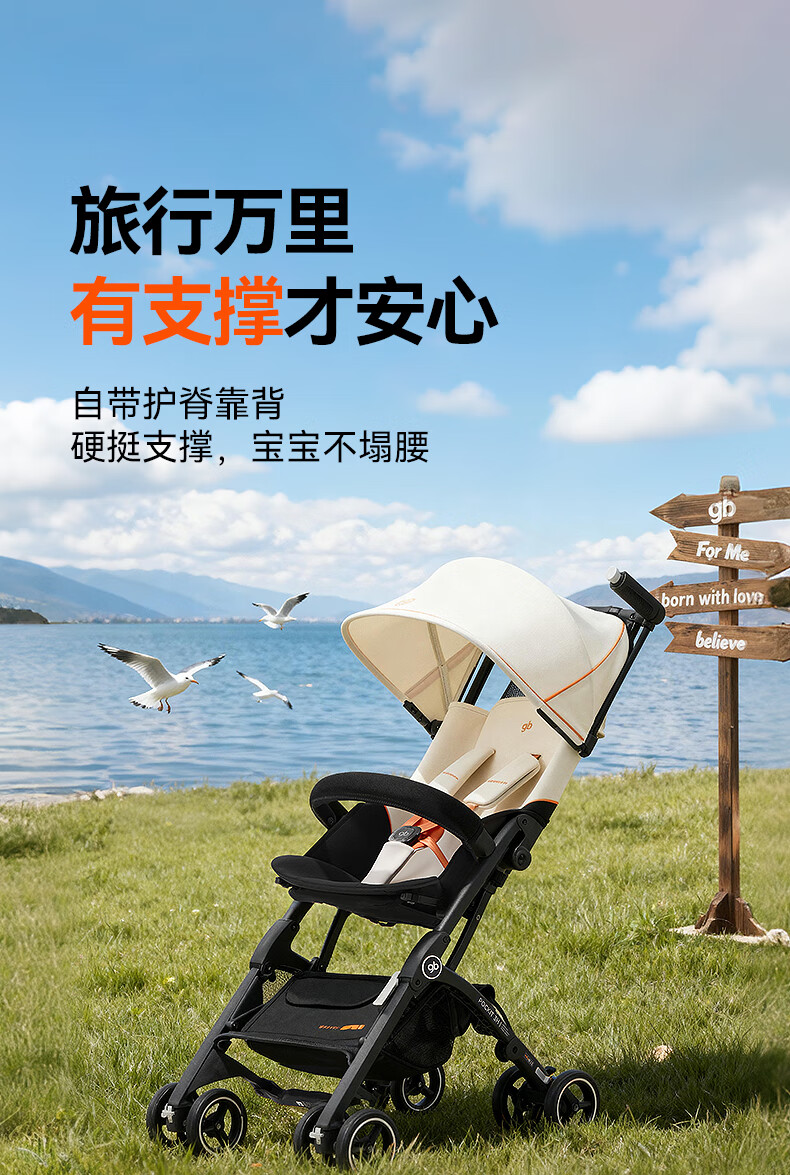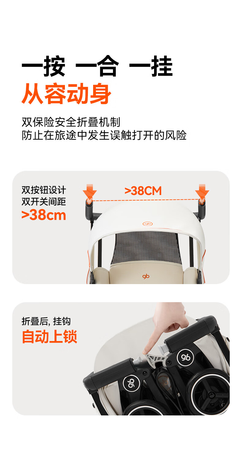 好孩子(gb)口袋车®婴儿推车可登机遛娃轻便折叠带减震旅行车6个月-4岁 黑橙