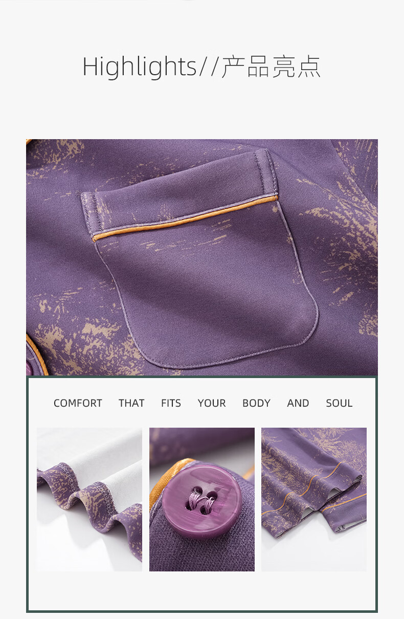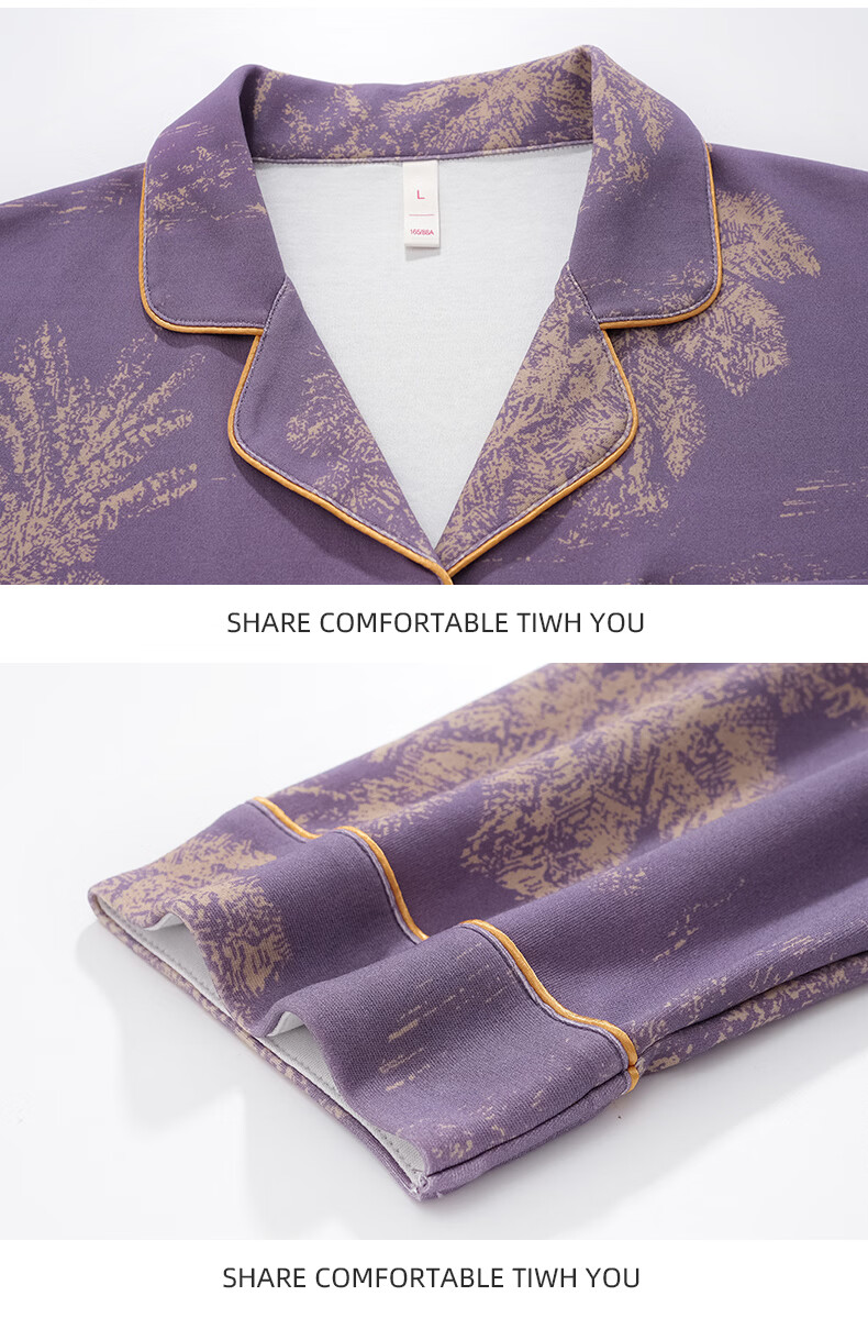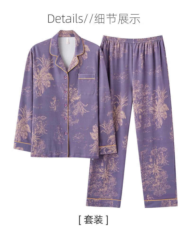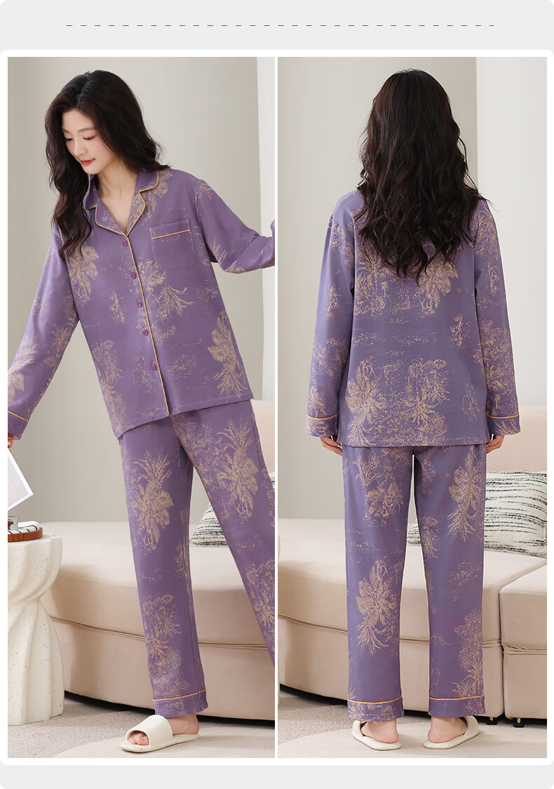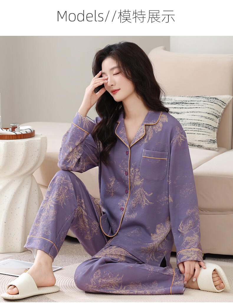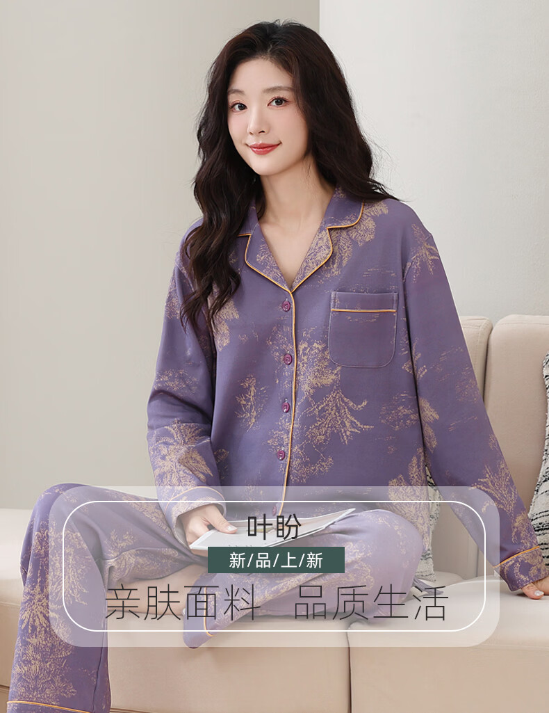 叶盼(yepan)【柔软】莱卡纯棉睡衣女士春秋季开衫长袖宽松大码女款家居服套装 7613-紫色 M (160) :建议80-100斤穿着