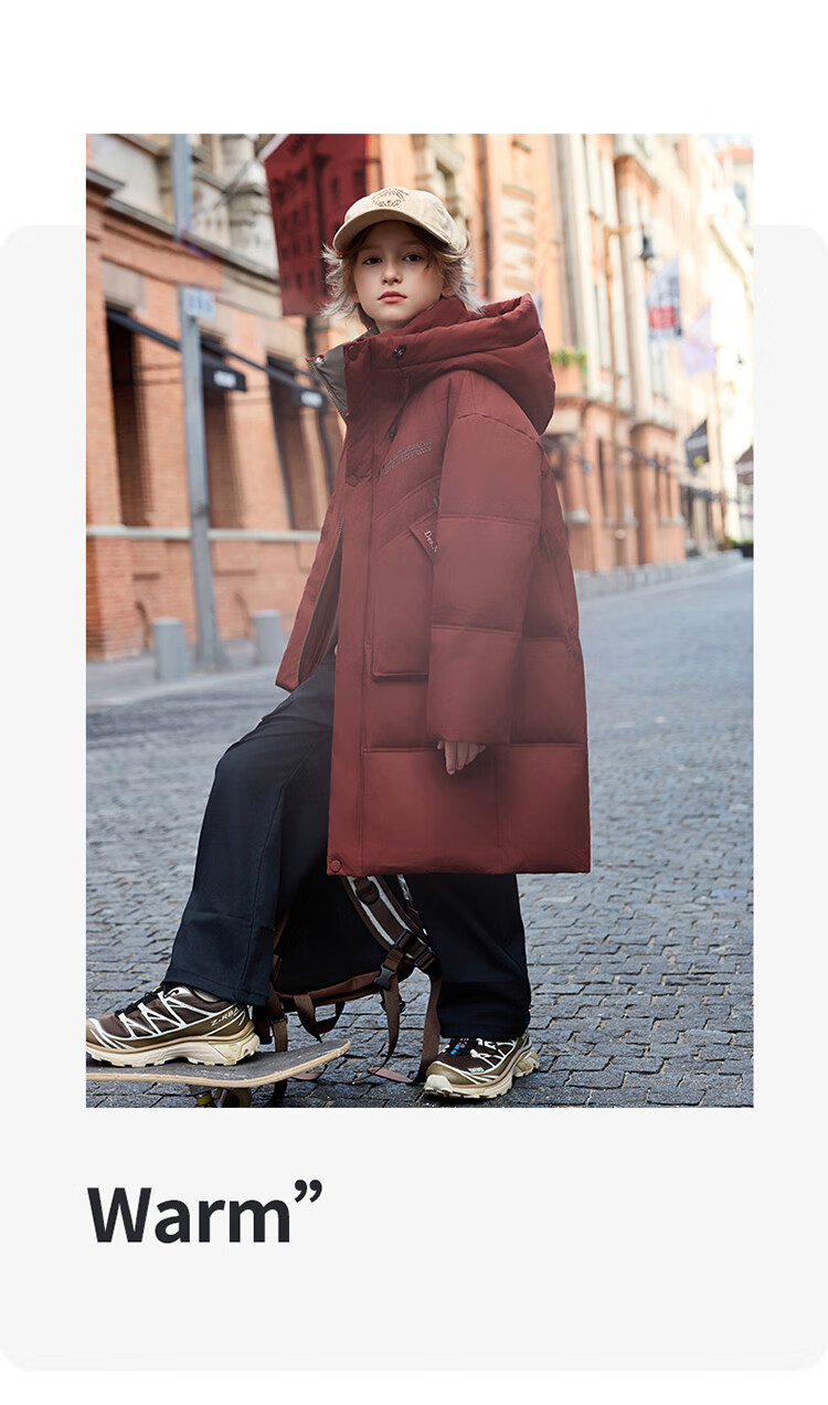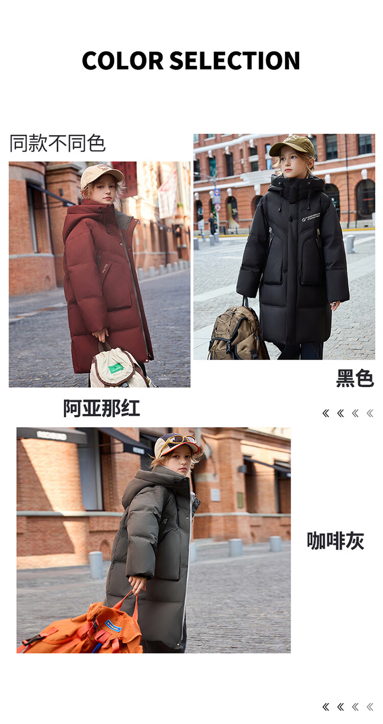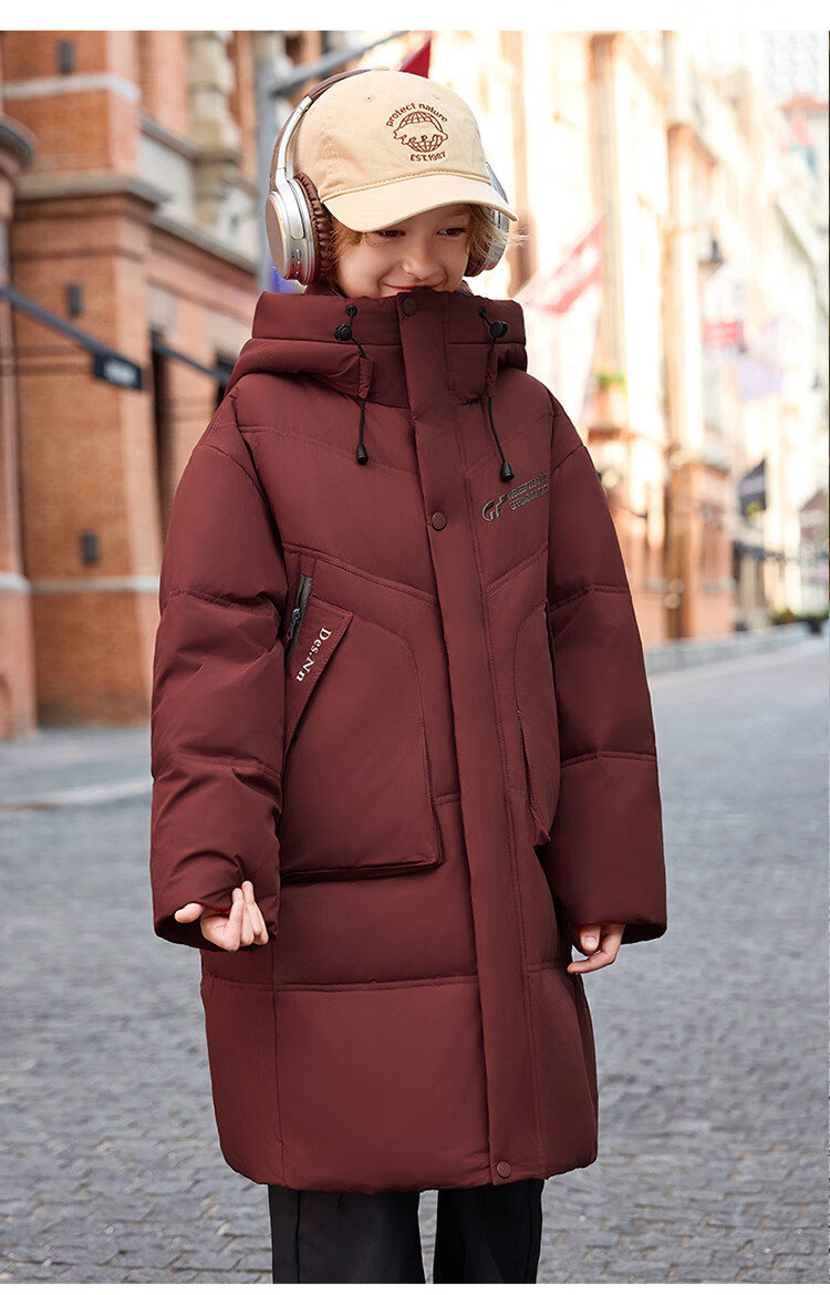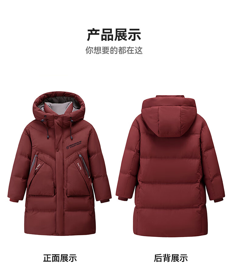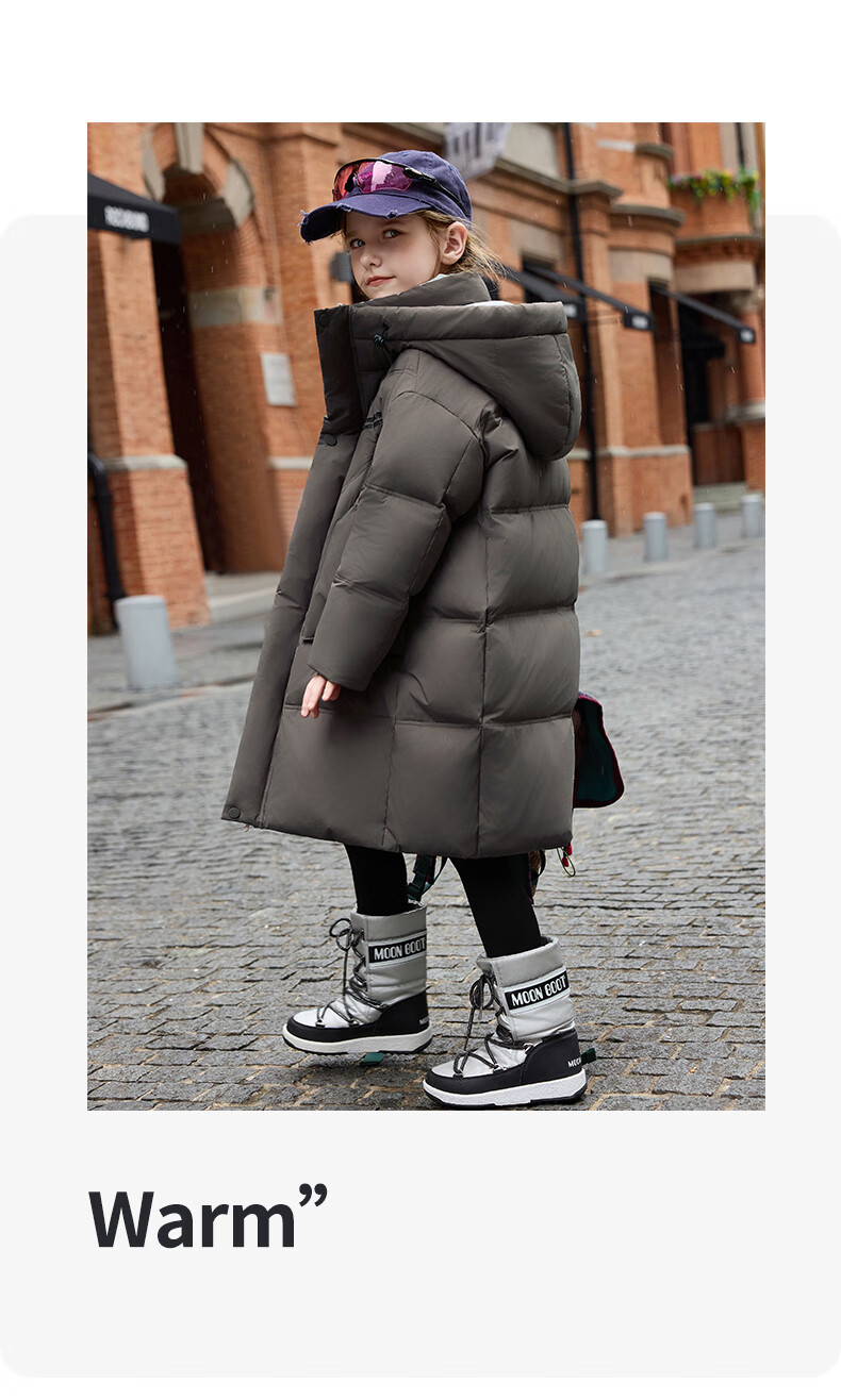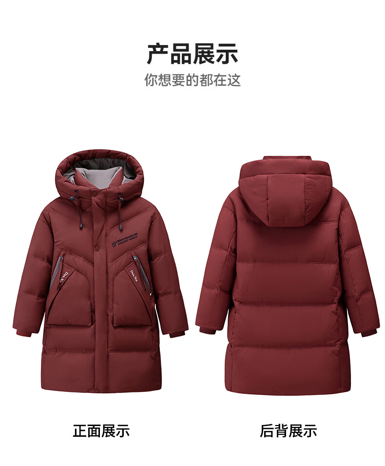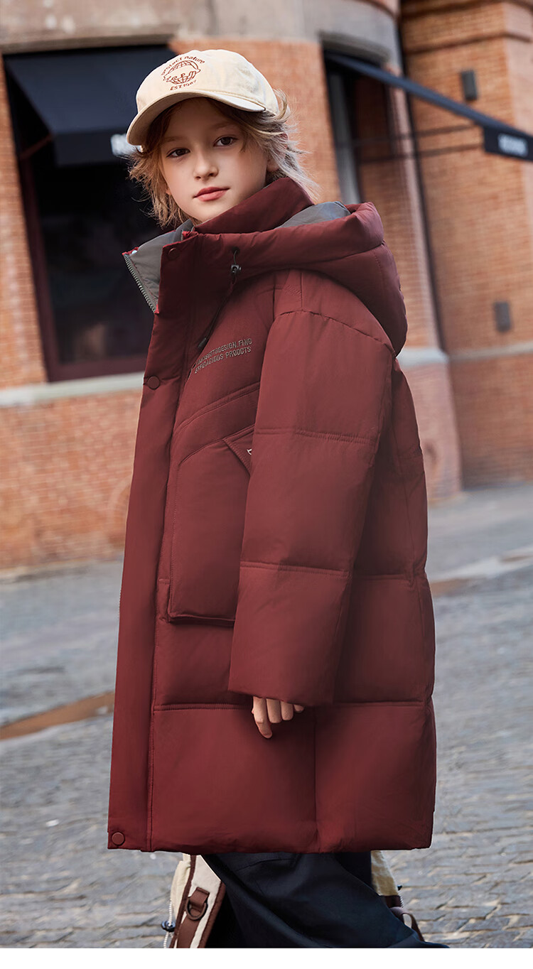 ABC KAIA儿童羽绒服女童长款过膝盖2025新款冬季外套中大童男童加厚白鸭绒 红色(男童) 130