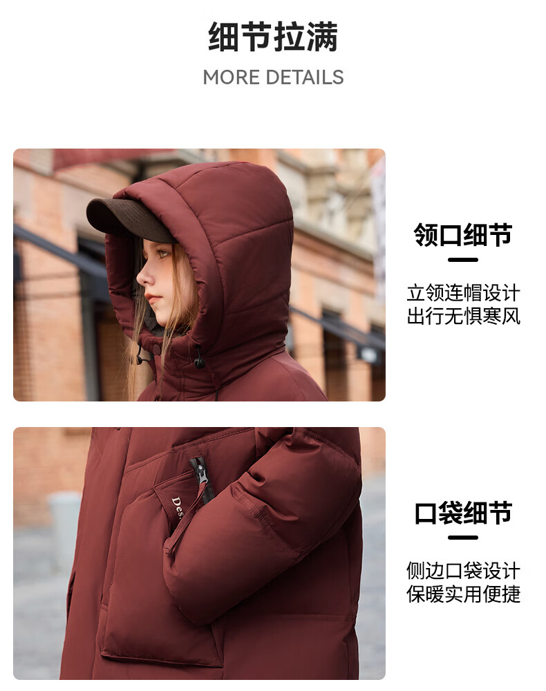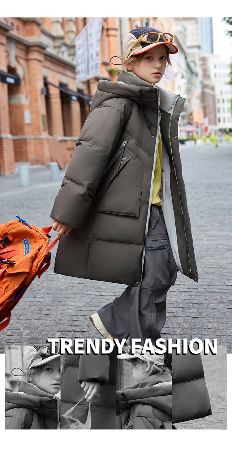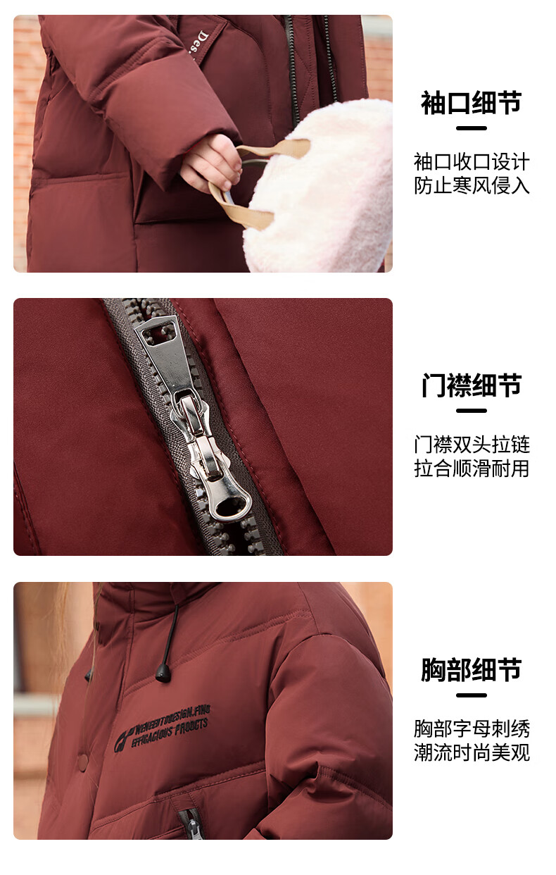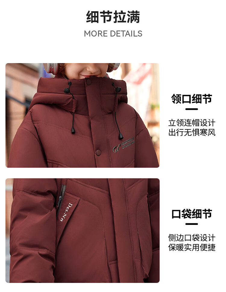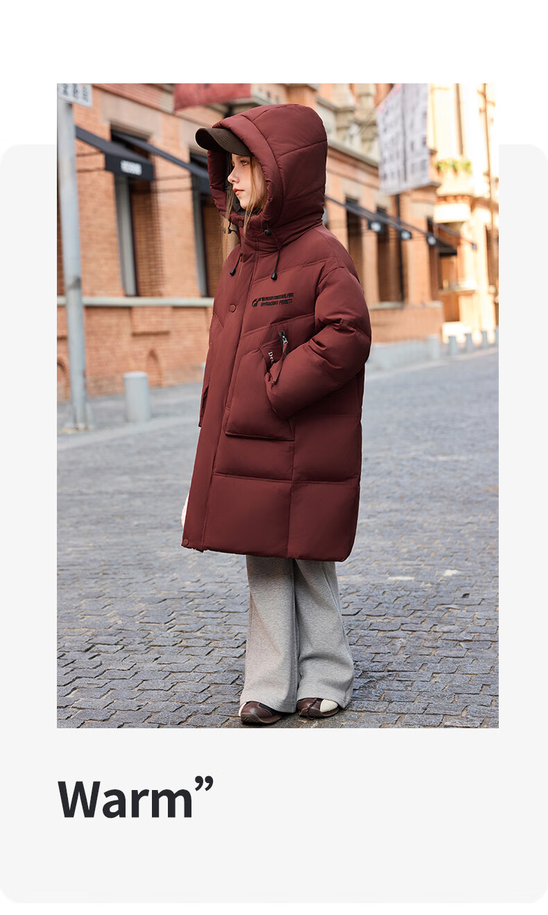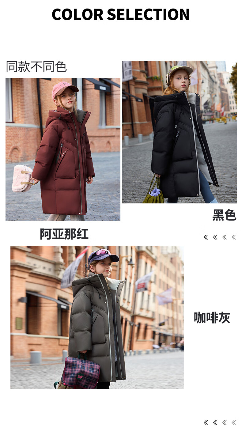 ABC KAIA儿童羽绒服女童长款过膝盖2025新款冬季外套中大童男童加厚白鸭绒 红色(男童) 130