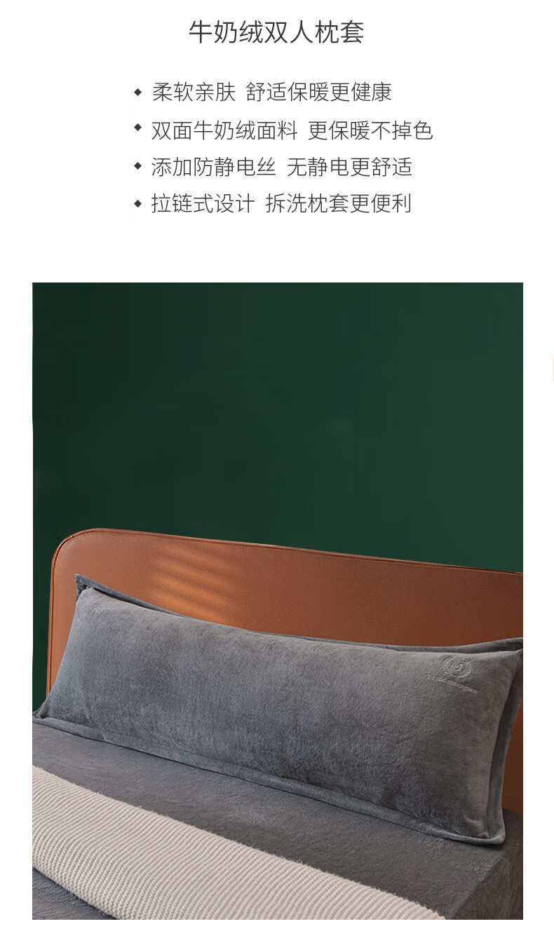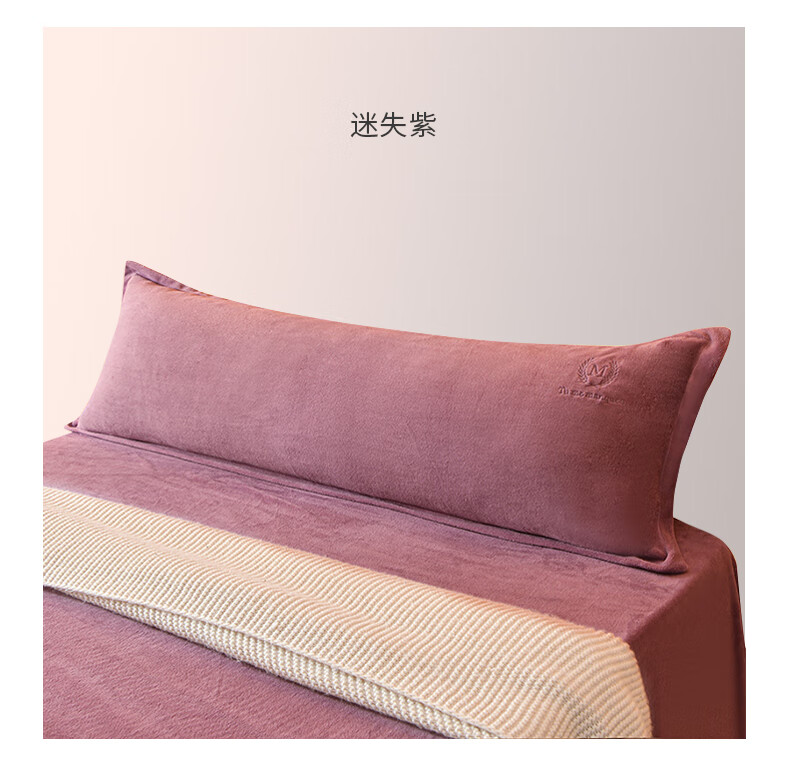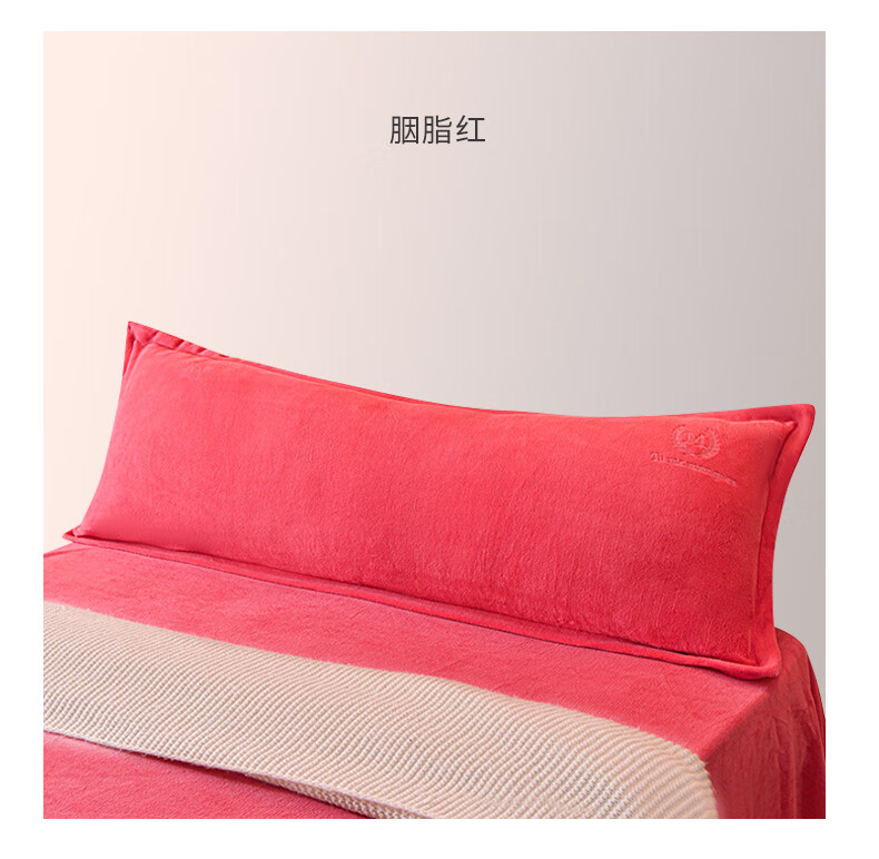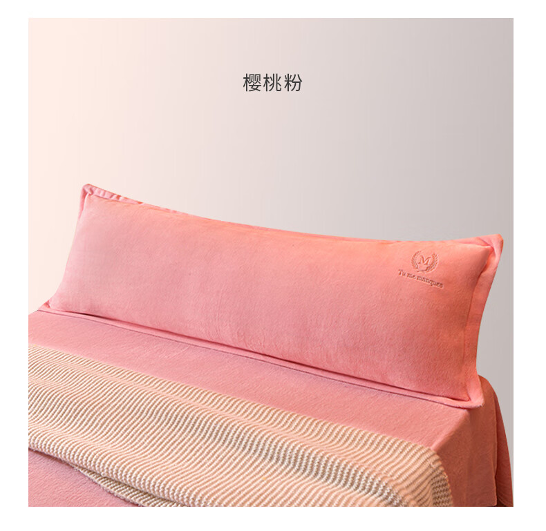 DEATKN德国加绒双人长枕套1.5米成人牛奶绒长枕头套1.2米1.8长款加绒枕 牛奶绒升级刺绣-樱桃粉 43cmx100cm
