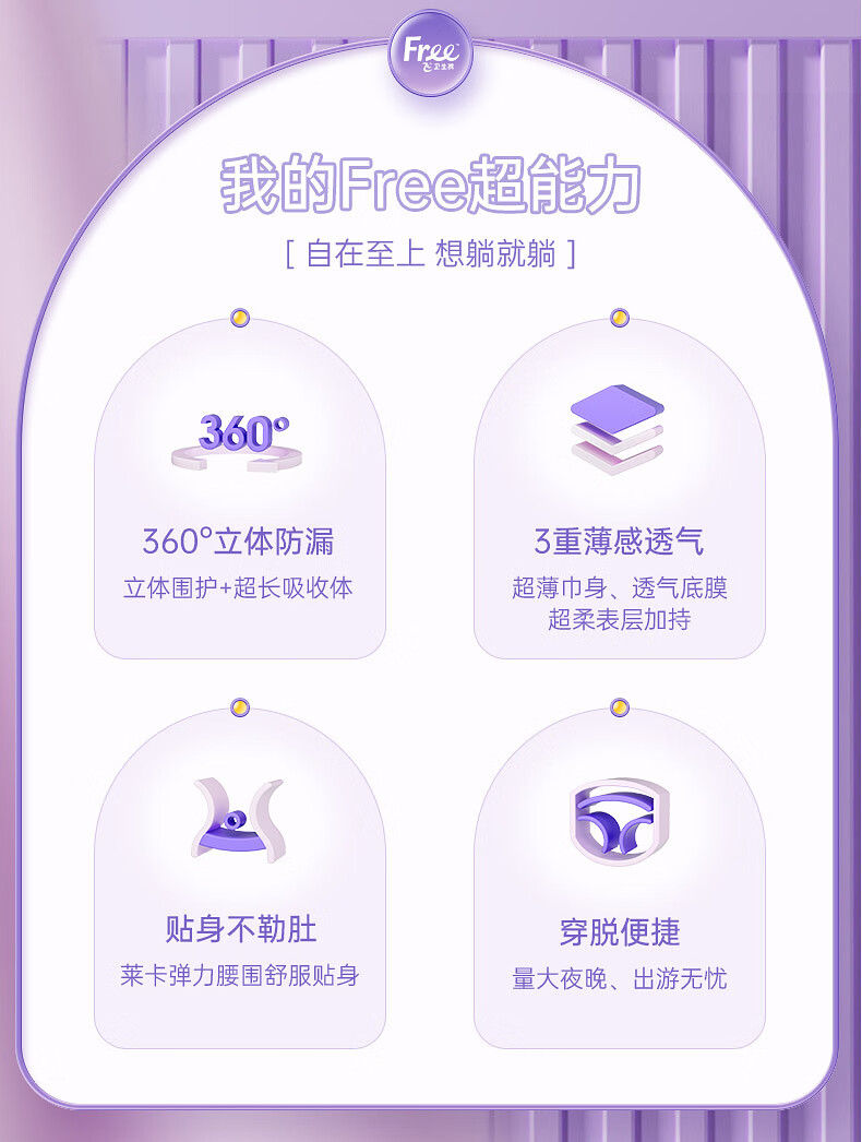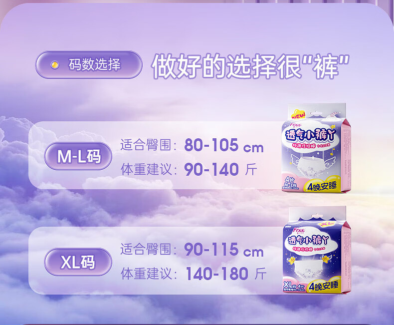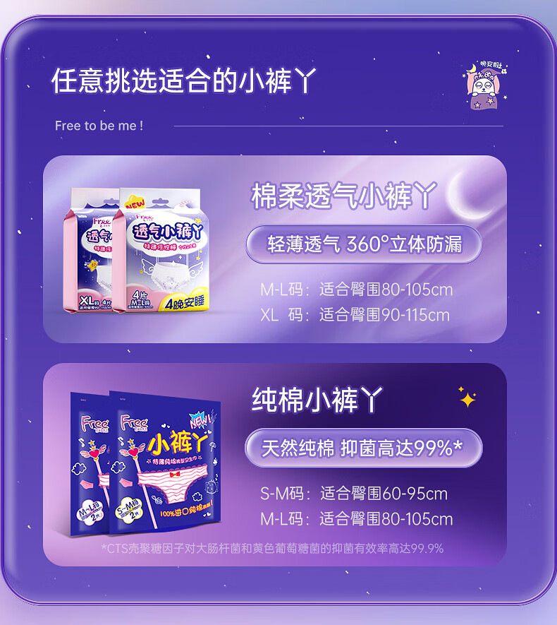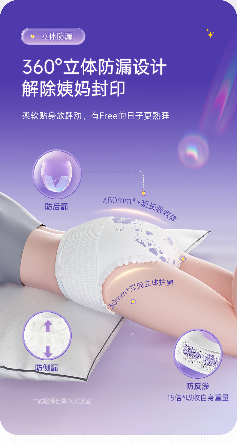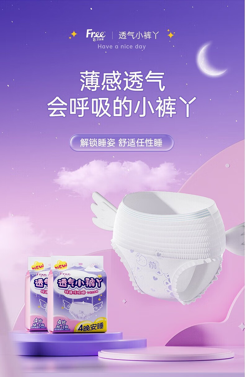 FREE裤型卫生巾量大夜用安心裤女经期夜用少女学生小裤丫姨妈巾安睡裤 M-L码 30片 100-140斤