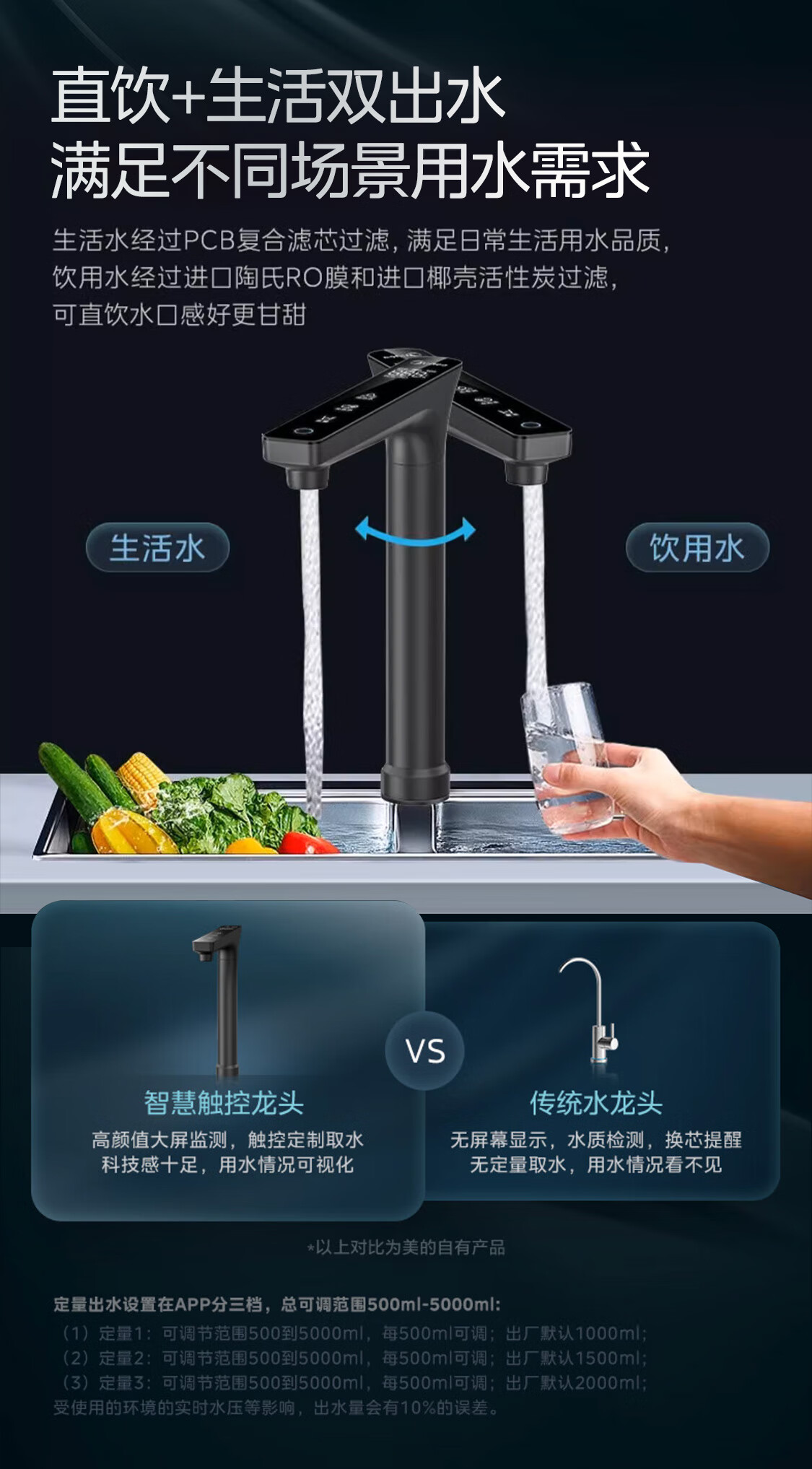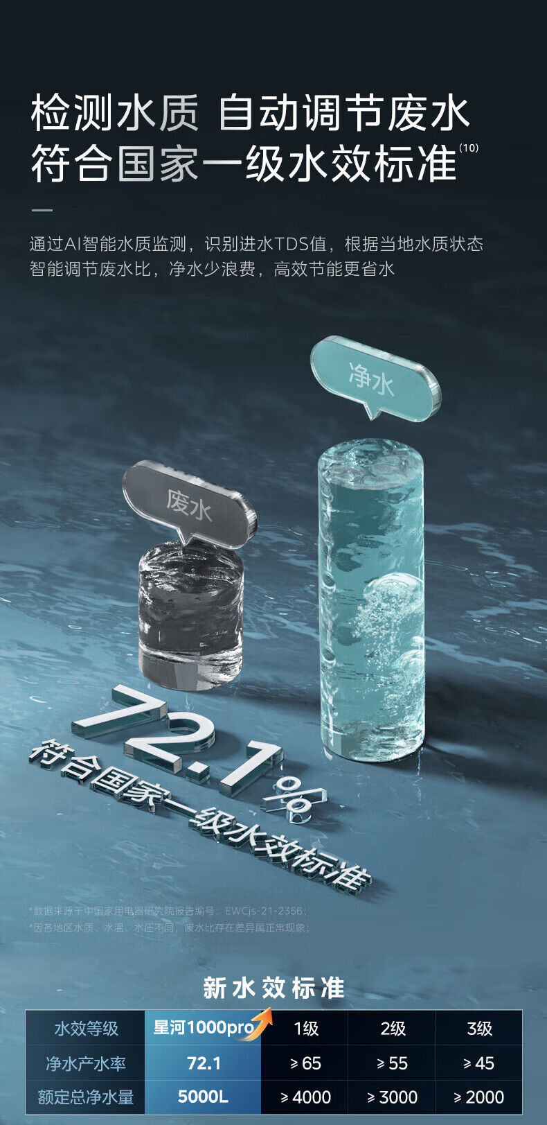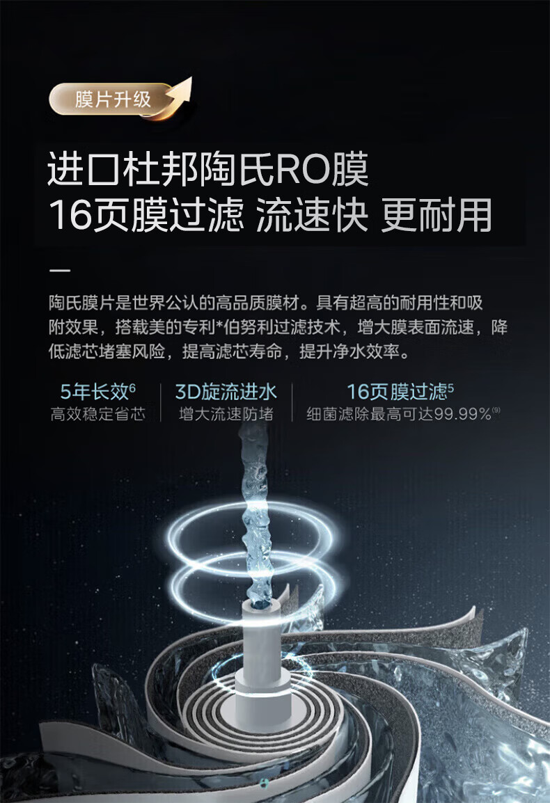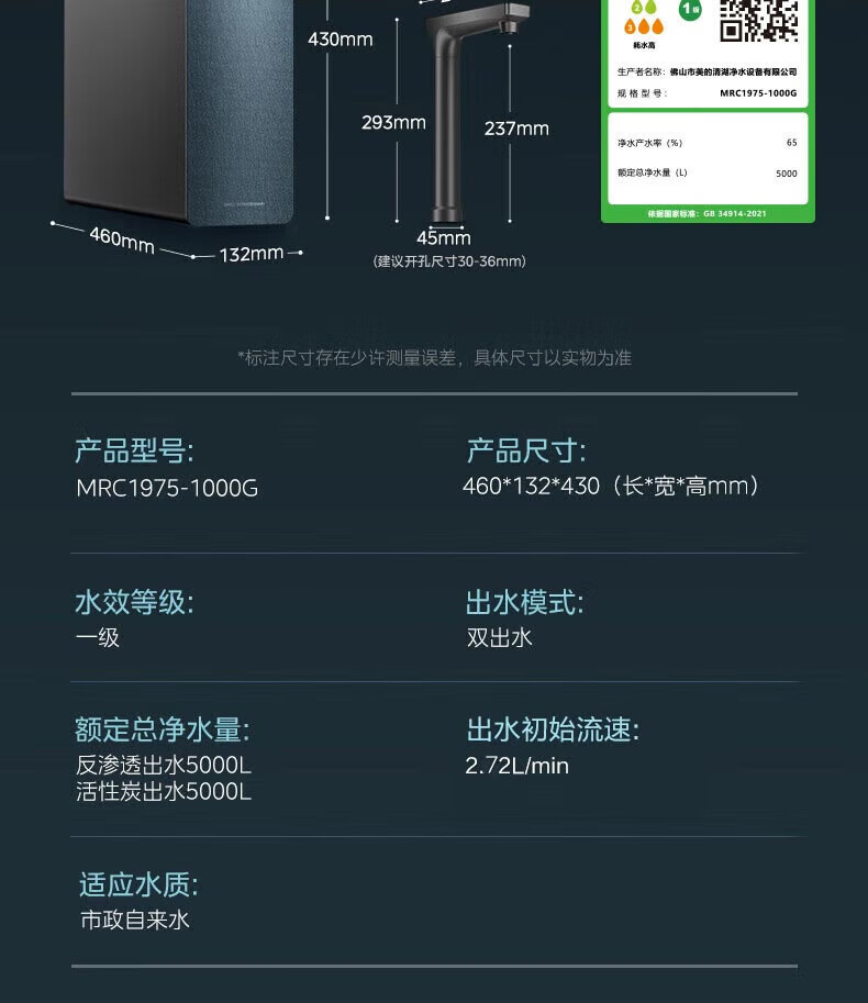 美的(Midea)净水器家用星河1000G PRO 5年长效陶氏RO反渗透0阻垢剂直饮机厨下式净饮机国家补贴 鲜活零陈水