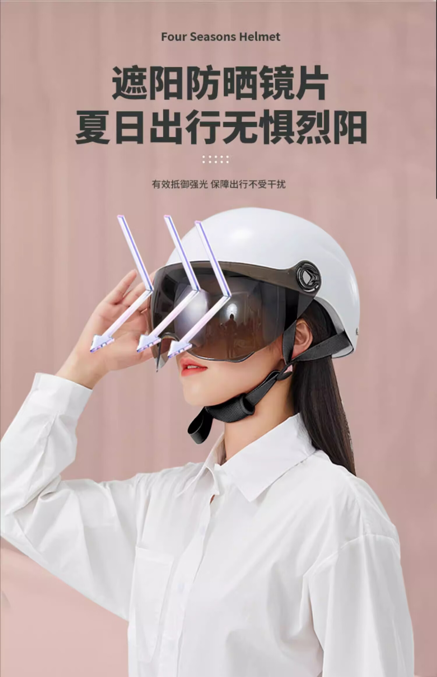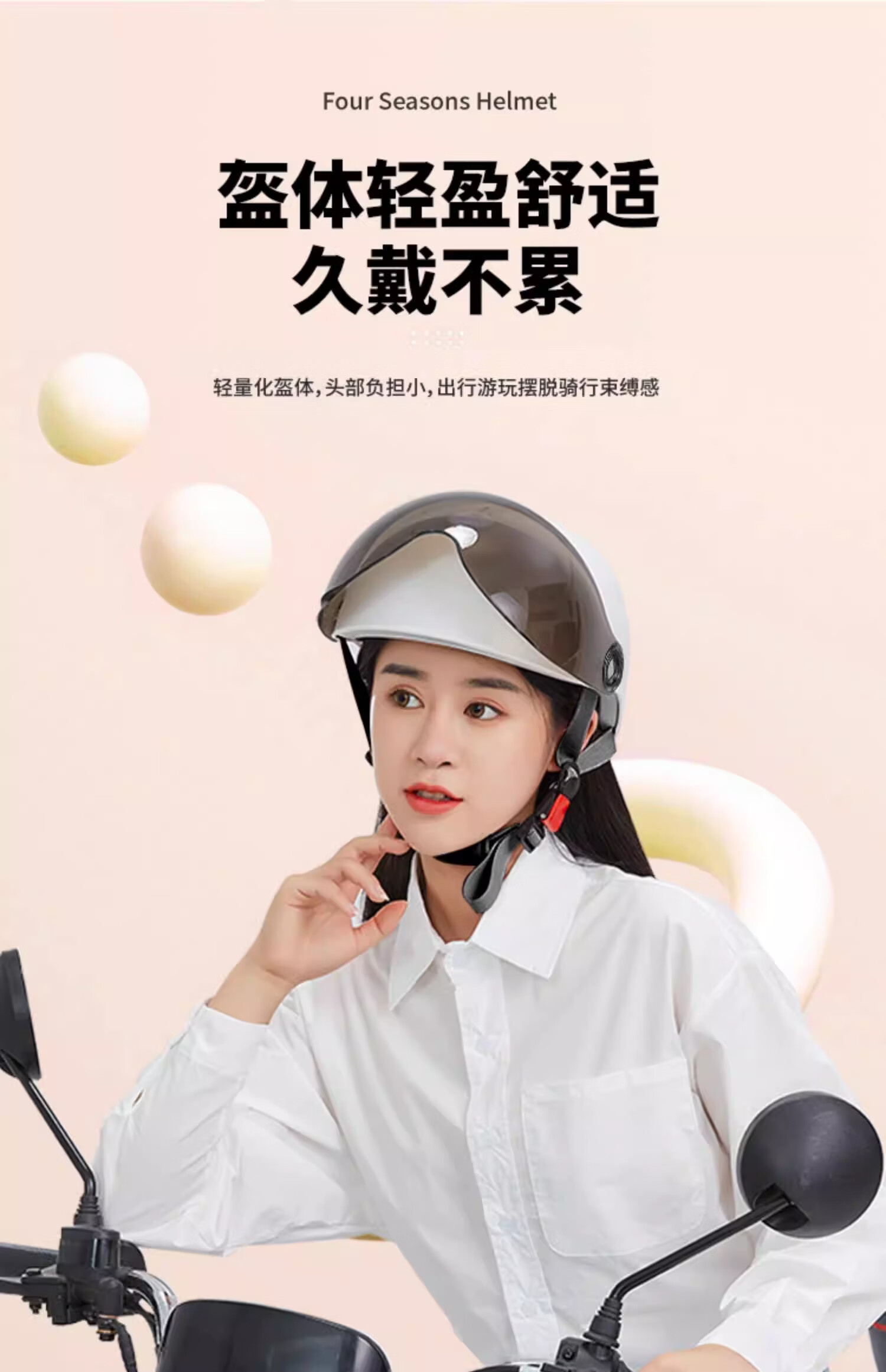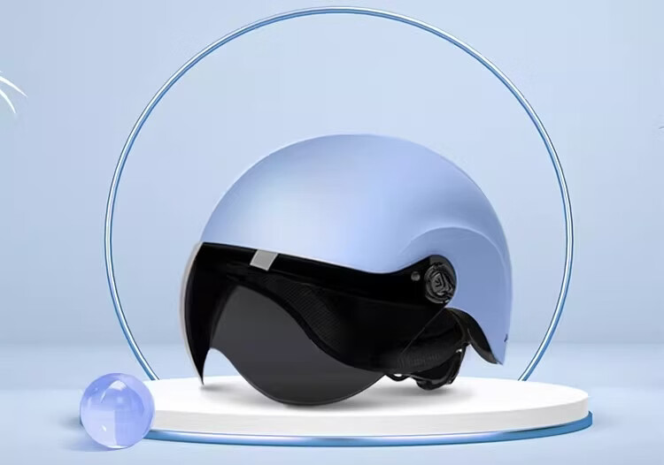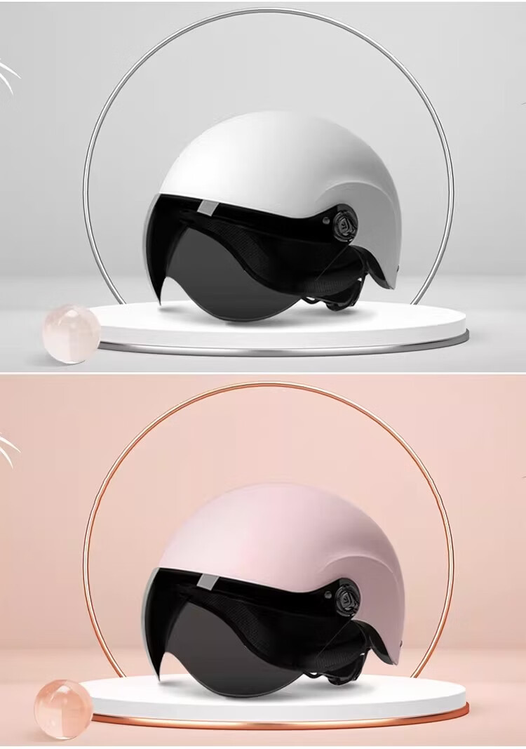 绿源(Luyuan)电动车头盔电瓶车3c认证摩托车头盔女男通用四季盔半盔防晒安全帽 卡其色-大眼精灵-透明短镜 【不带护耳】