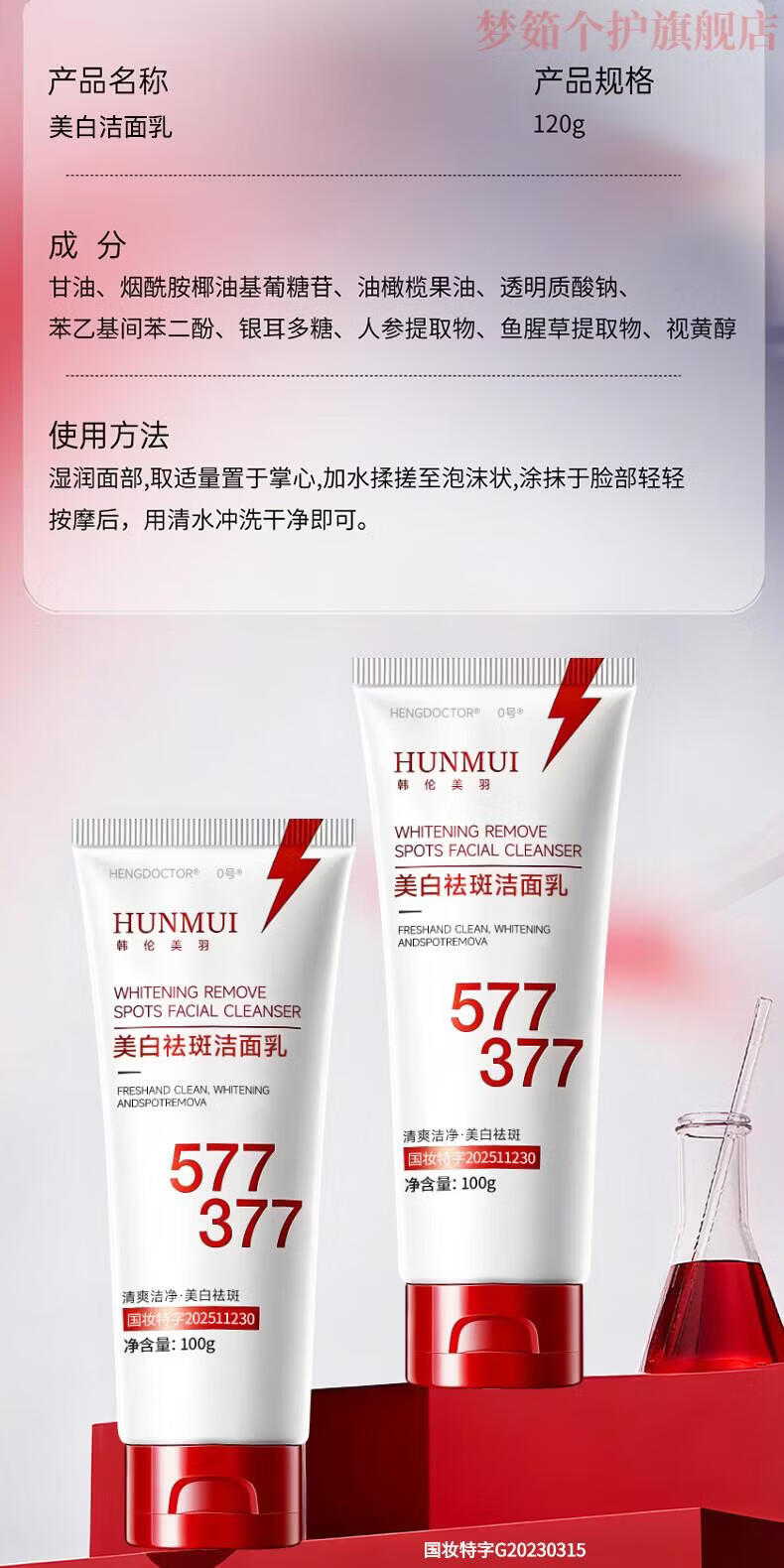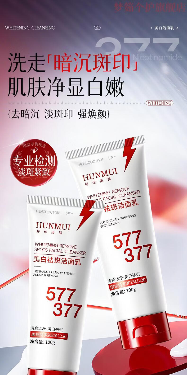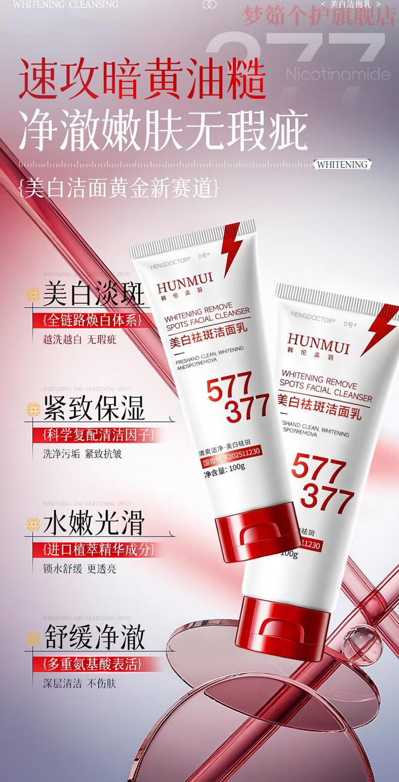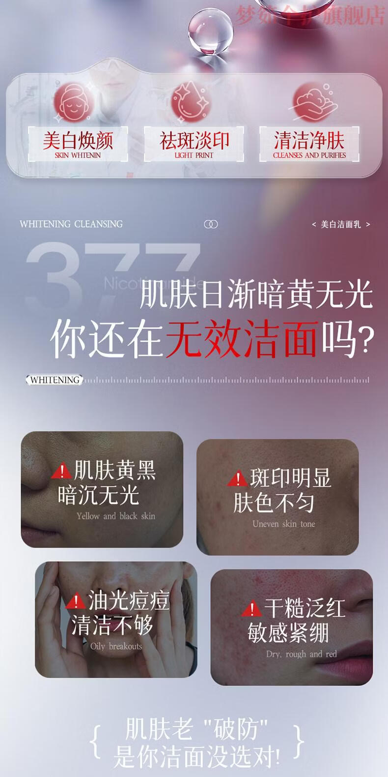 思亚希潘泊草氨基酸377美白洗面奶深层清洁毛孔淡斑紧致提亮肤色改善暗 1盒装 见效装 官方直售
