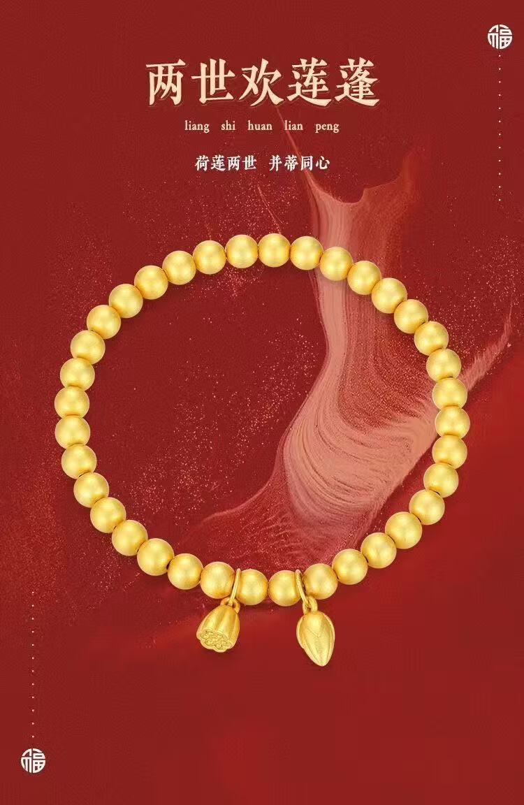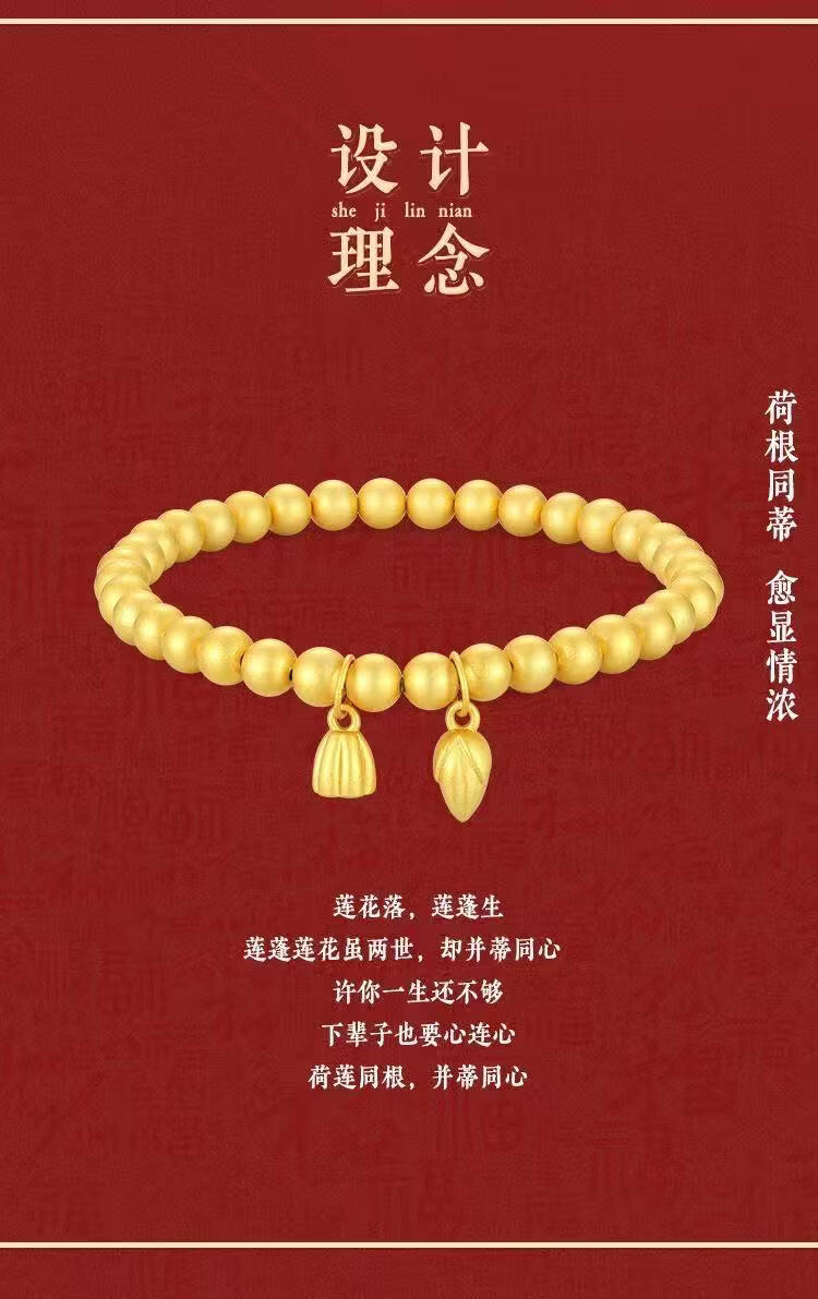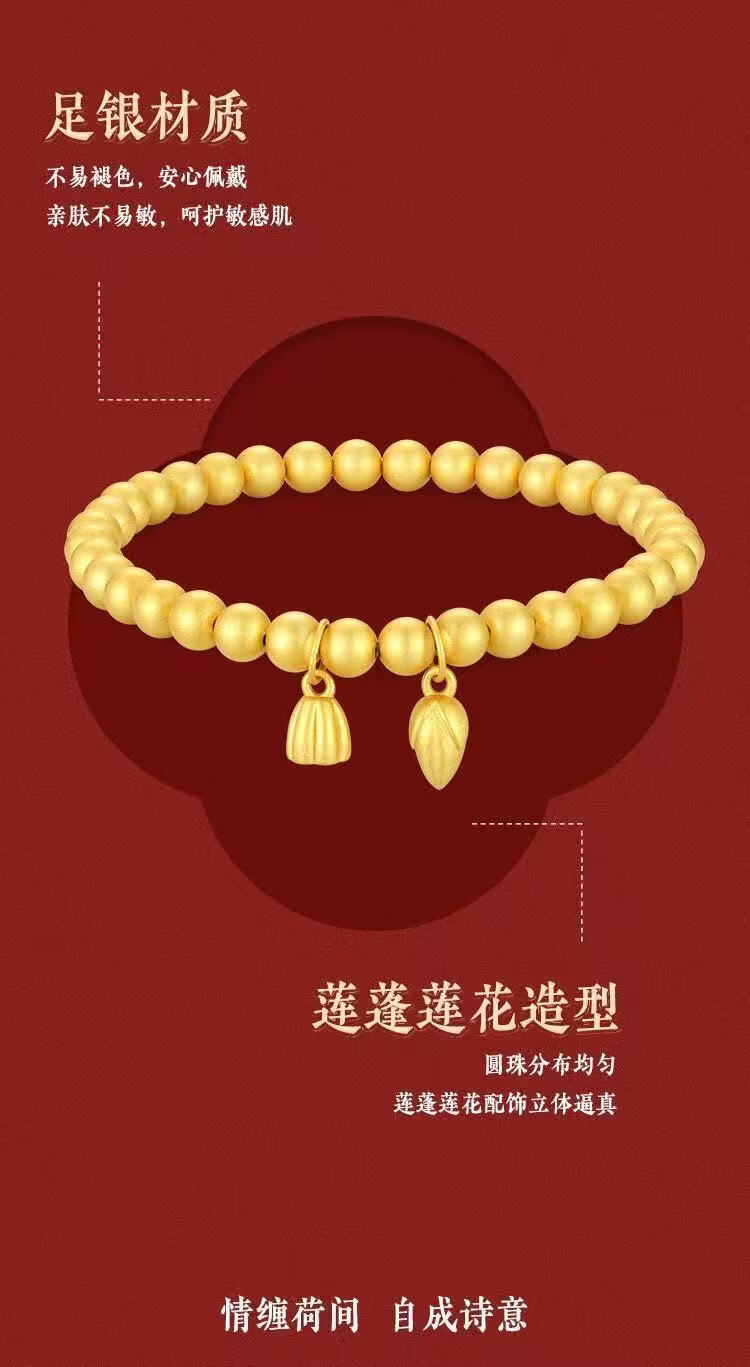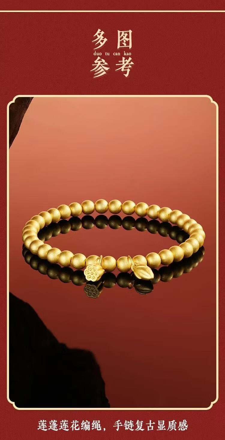 宅女之城古法编绳莲蓬莲花电金手链母亲节礼物送老婆礼盒 古法编绳莲蓬莲花S029