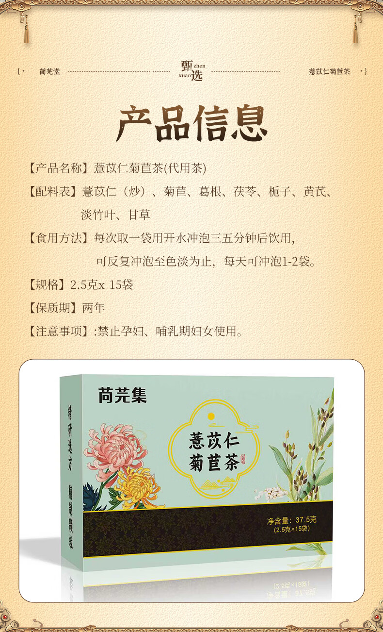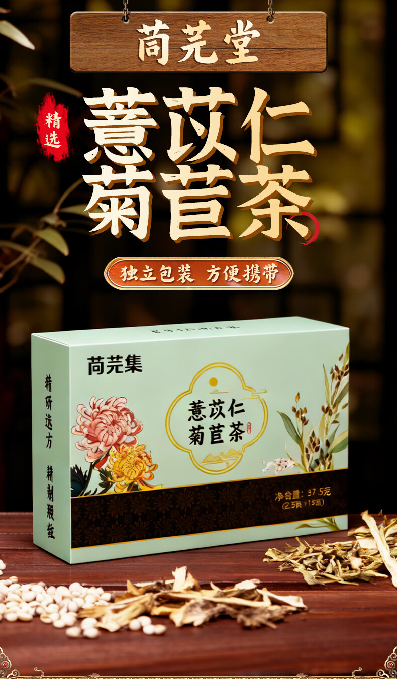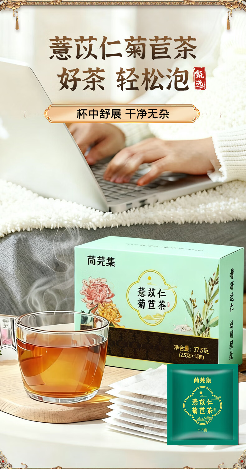 茼芫集薏苡仁菊苣茶 药食同源草本茶 清热利湿 独立茶包 适合尿酸高人群 薏苡仁菊苣茶 37.5g*1盒