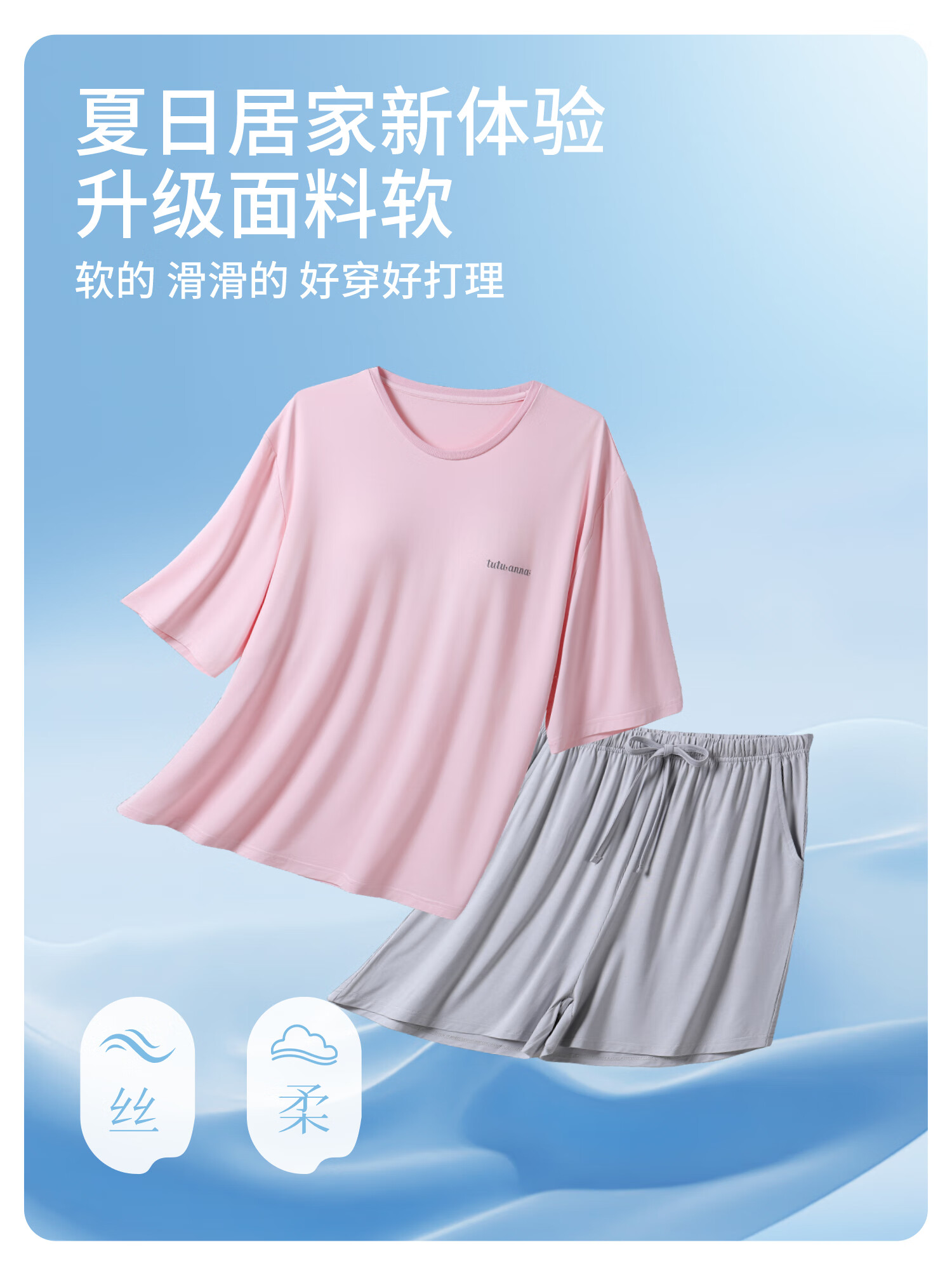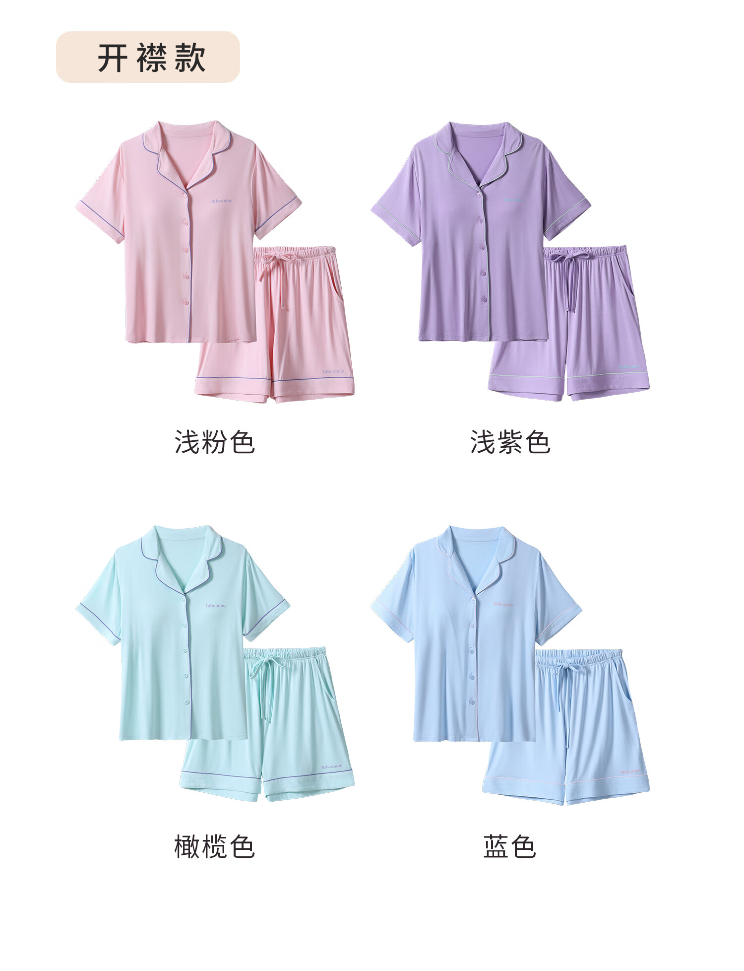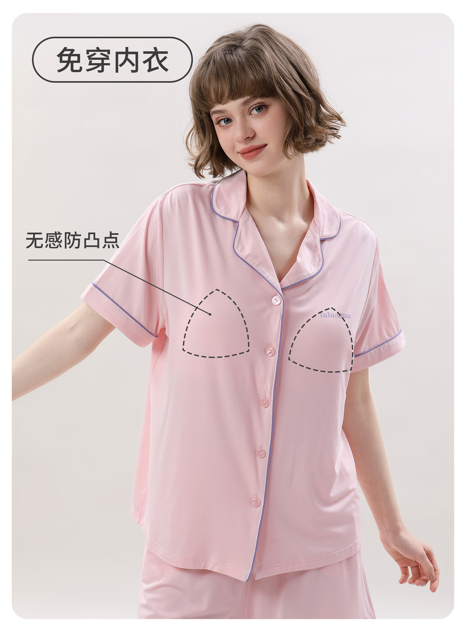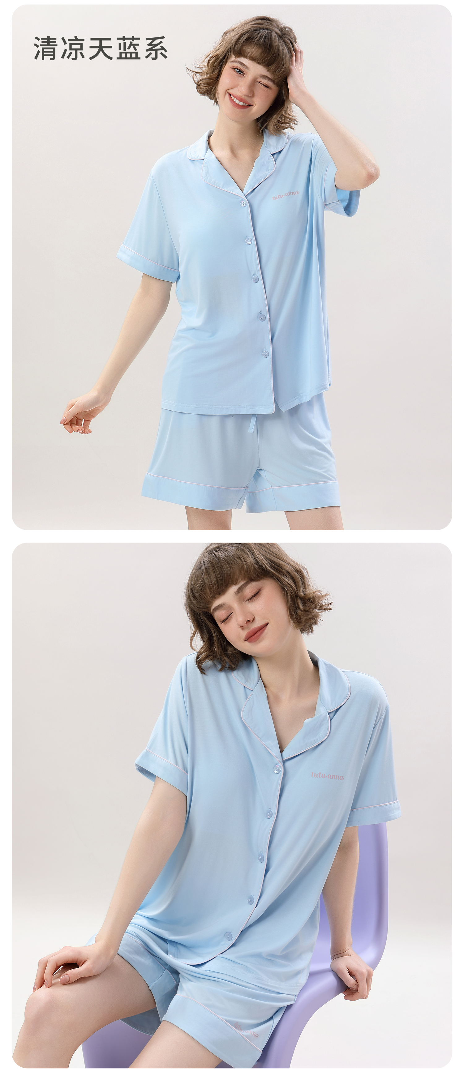 tutuanna春夏睡衣女 带胸垫一体杯纯色短袖短裤透气家居服套装女 【开衫款】蓝色 M (适合身高160-165cm)