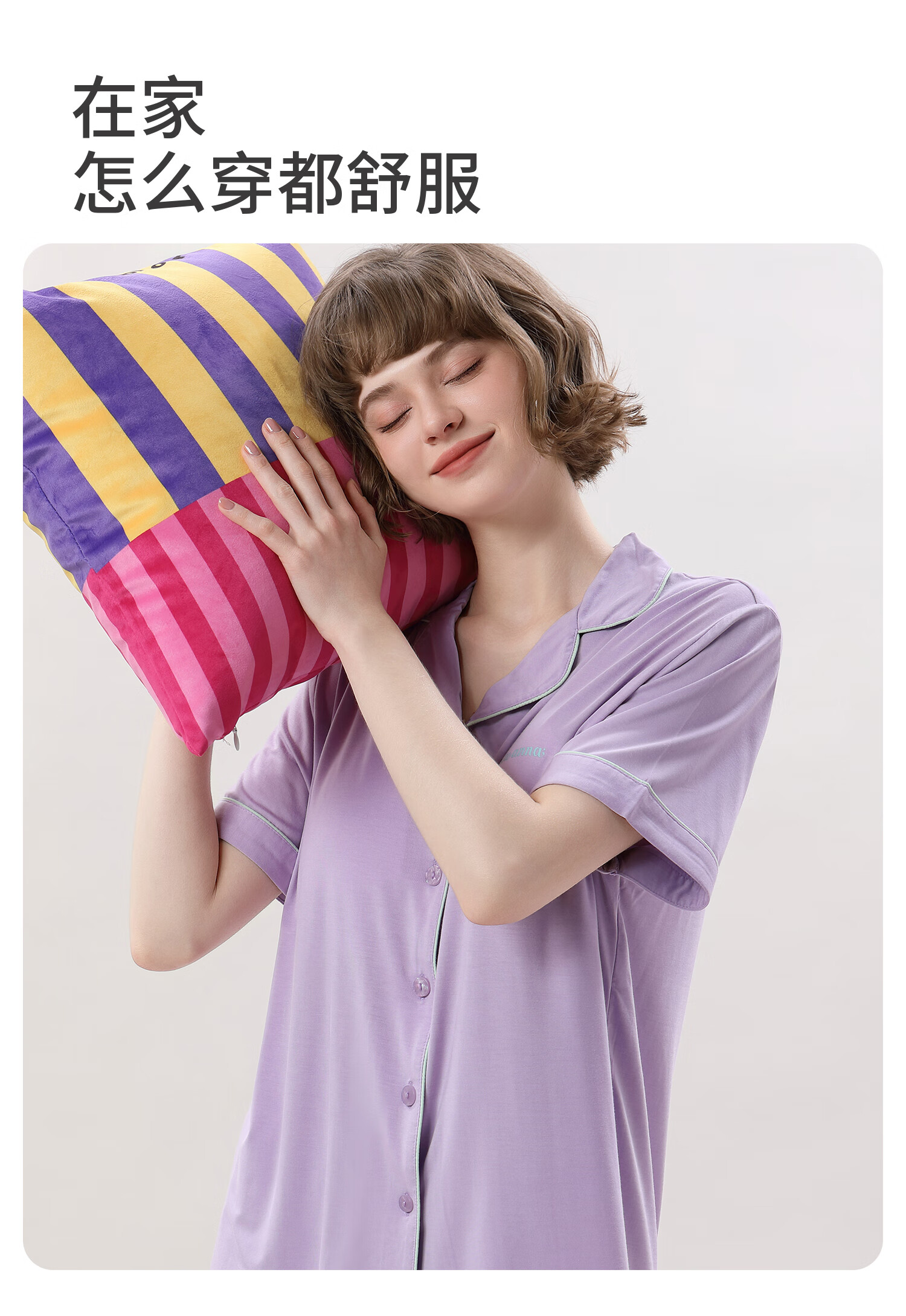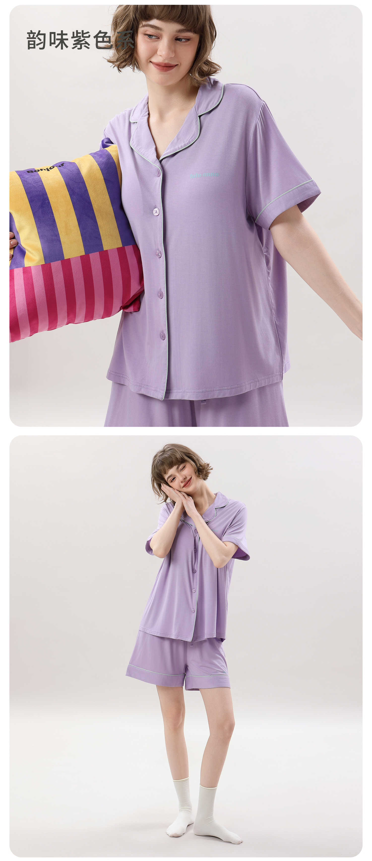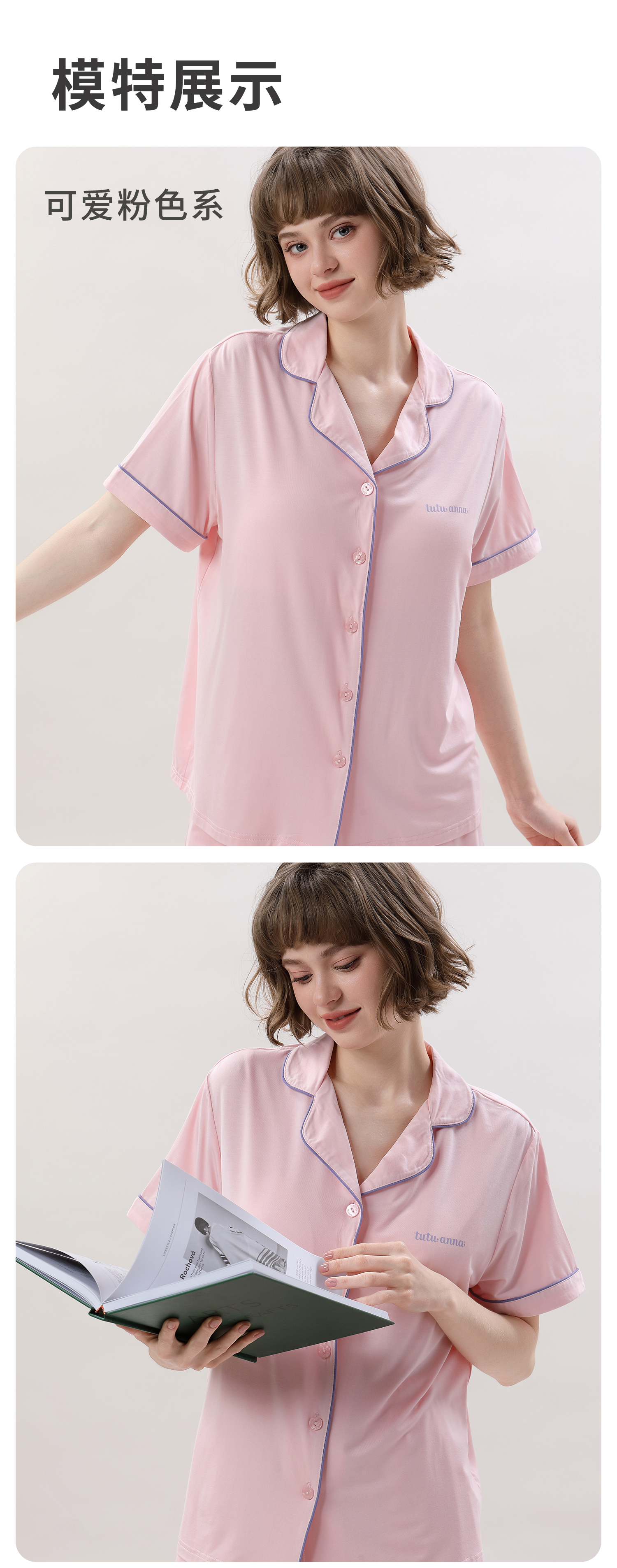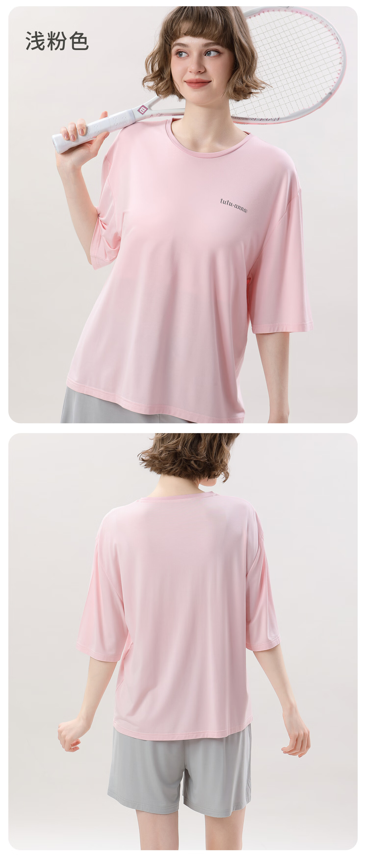 tutuanna春夏睡衣女 带胸垫一体杯纯色短袖短裤透气家居服套装女 【开衫款】蓝色 M (适合身高160-165cm)