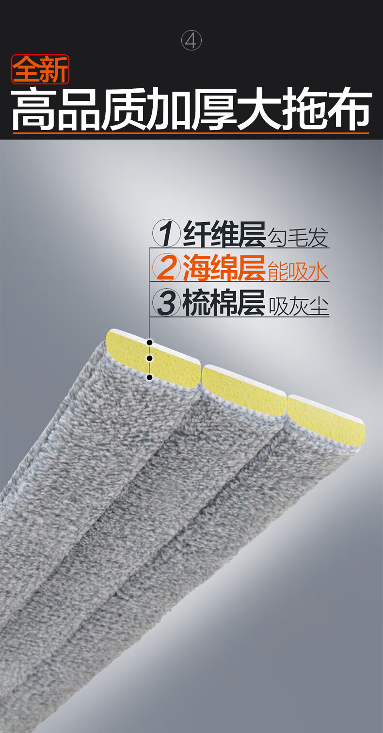 大卫平板拖把大号家用巨无霸平板拖把80cm替换拖布懒人干湿两用P15