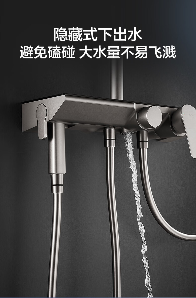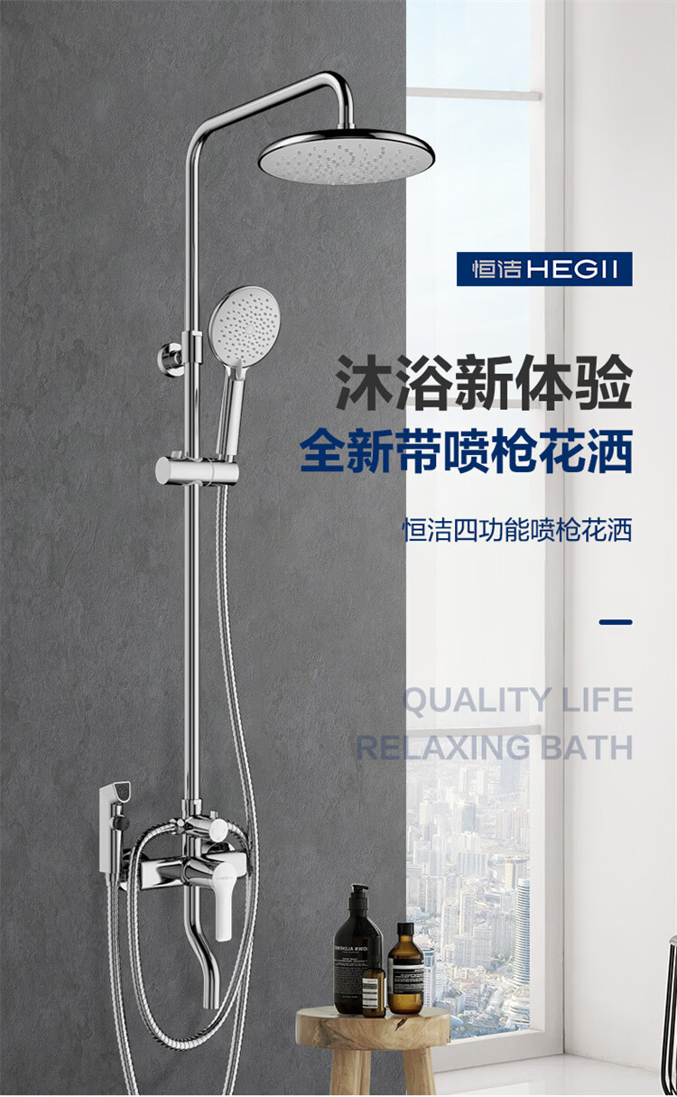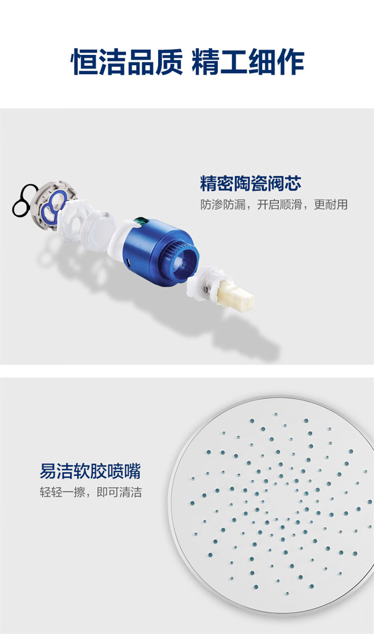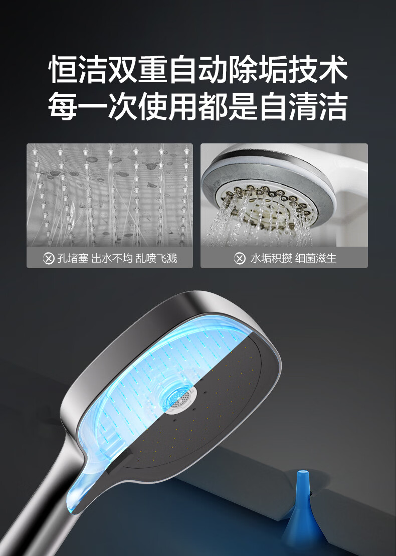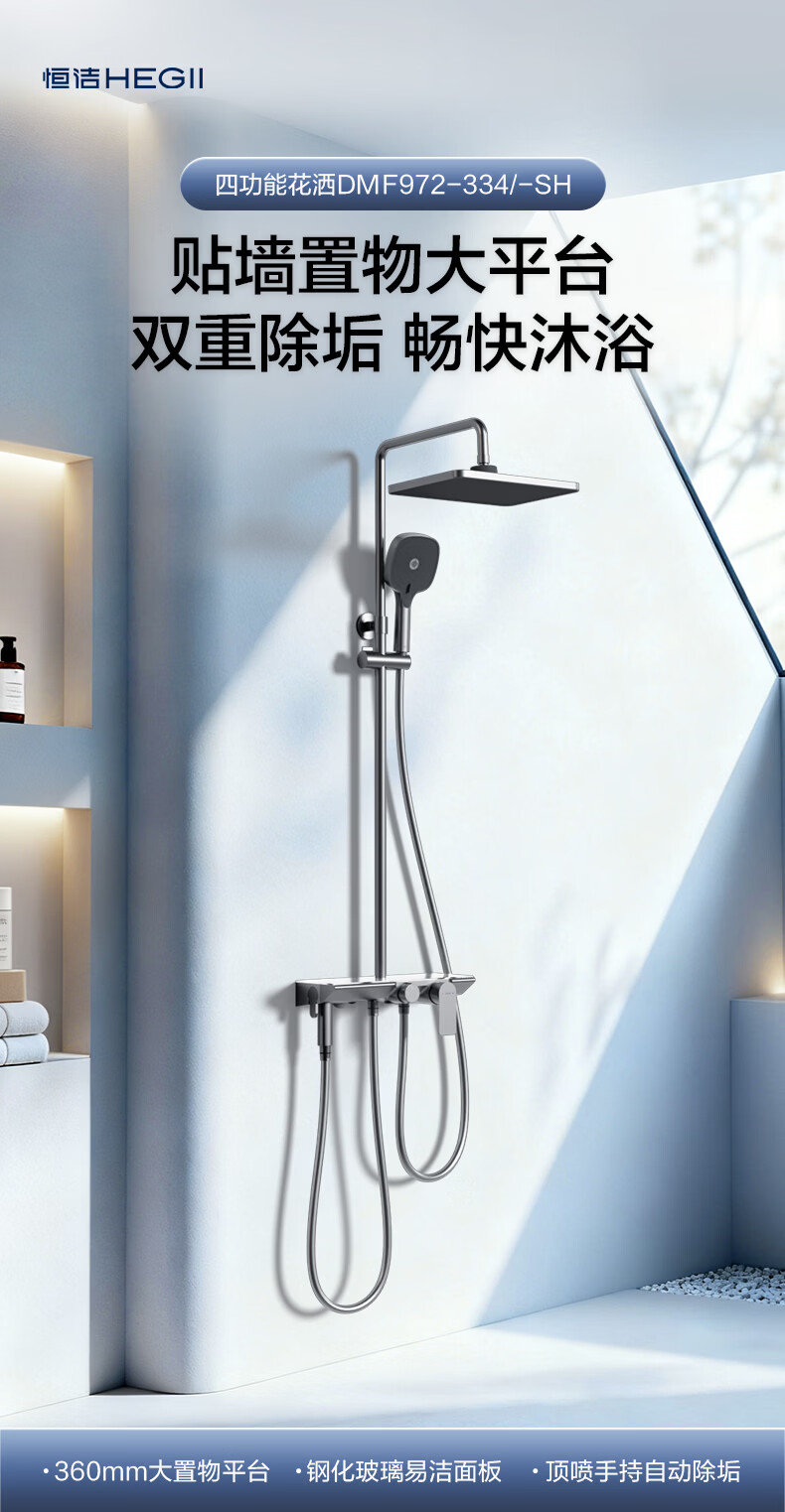 恒洁淋浴花洒套装 自动除垢大顶喷置物平台多功能可升降花洒全套972 【自动除垢+隐藏式下水+贴墙】972