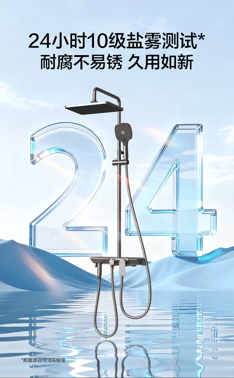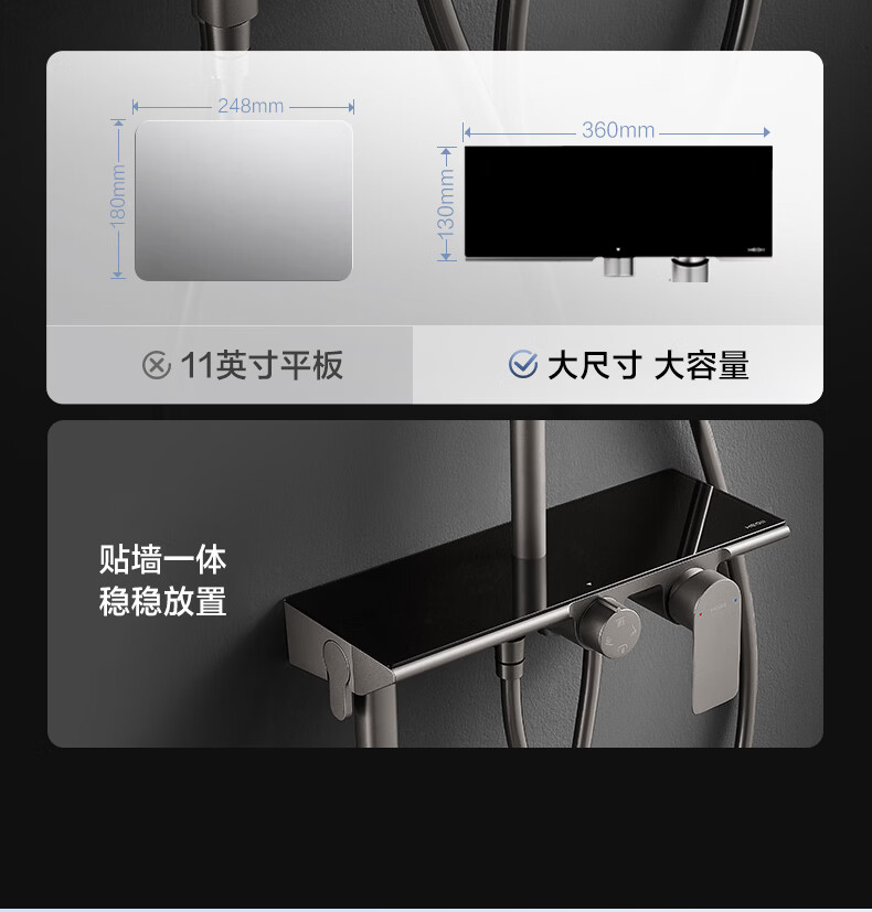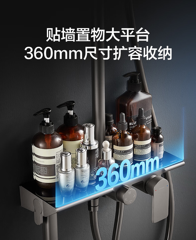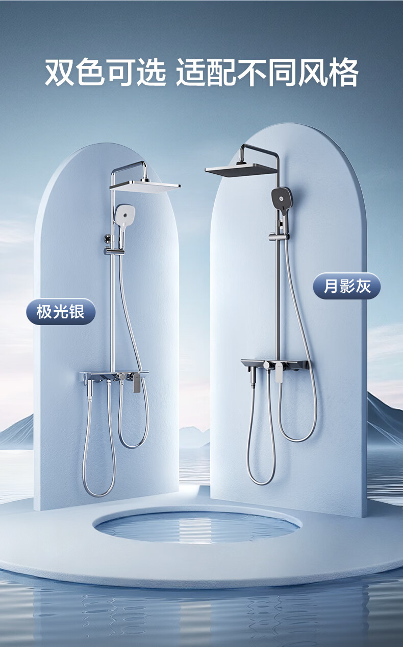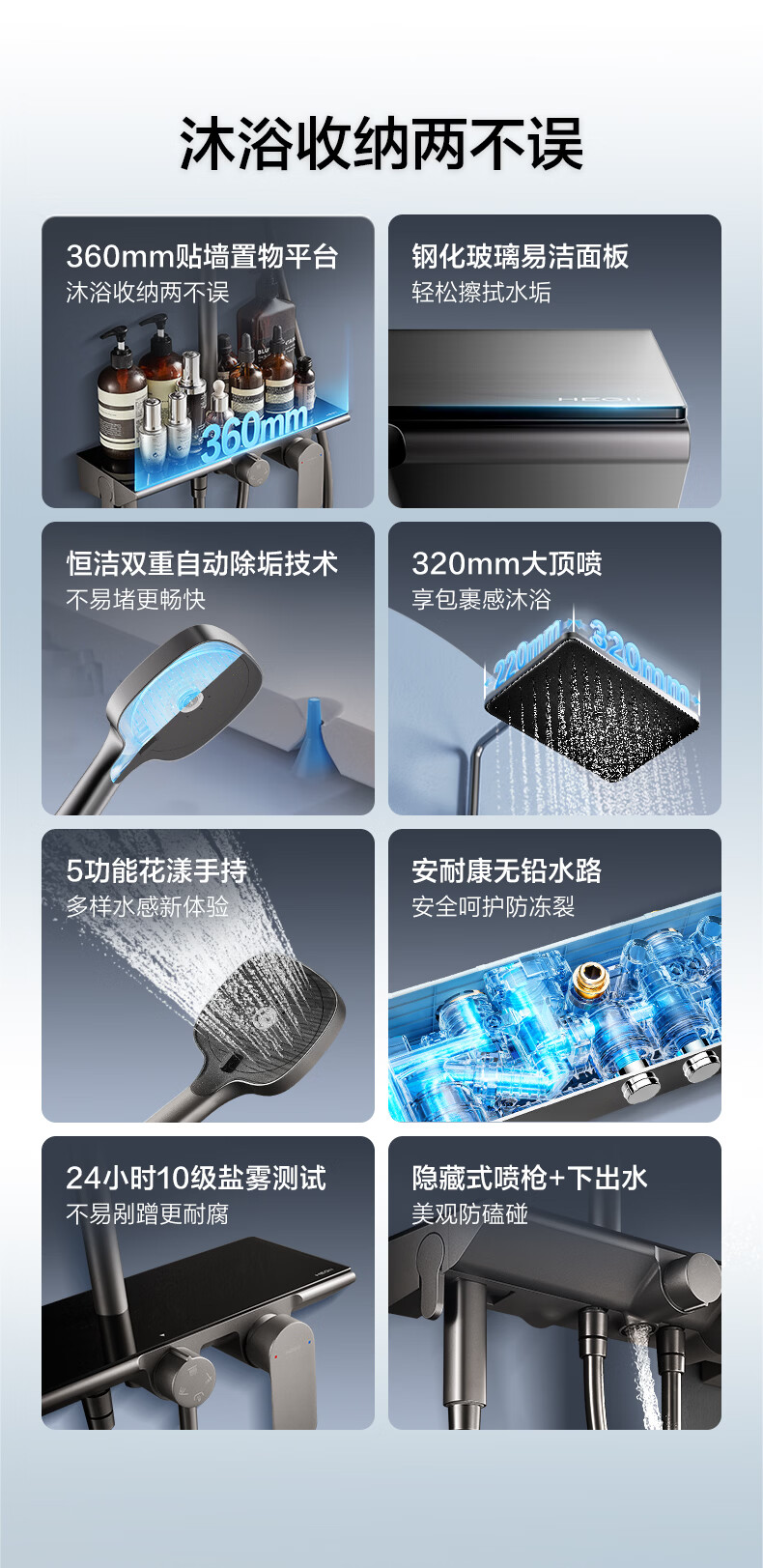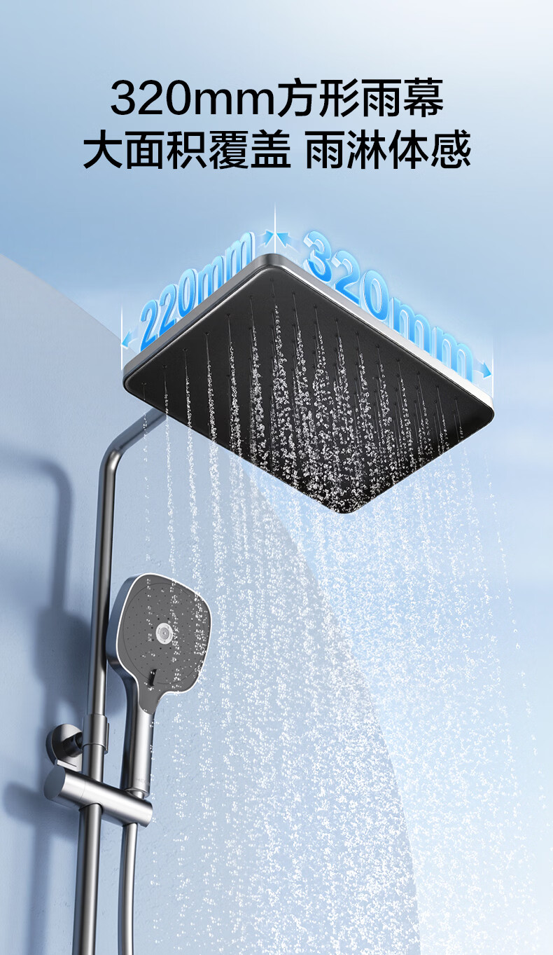 恒洁淋浴花洒套装 自动除垢大顶喷置物平台多功能可升降花洒全套972 【自动除垢+隐藏式下水+贴墙】972