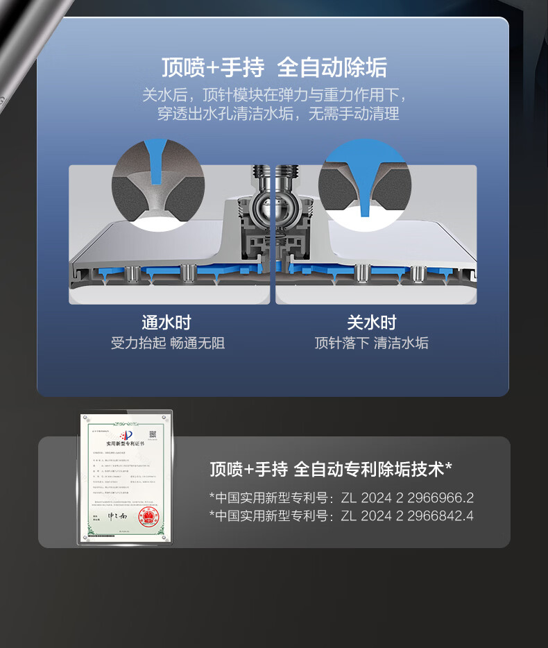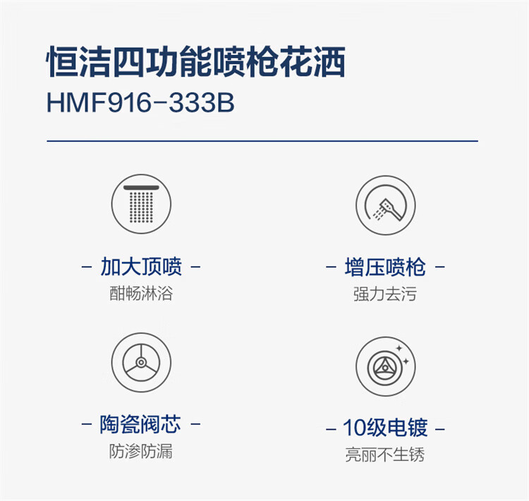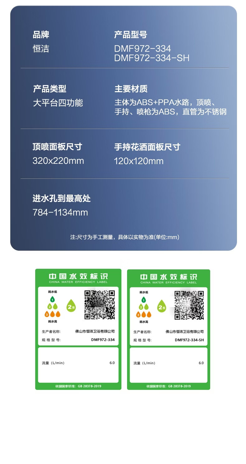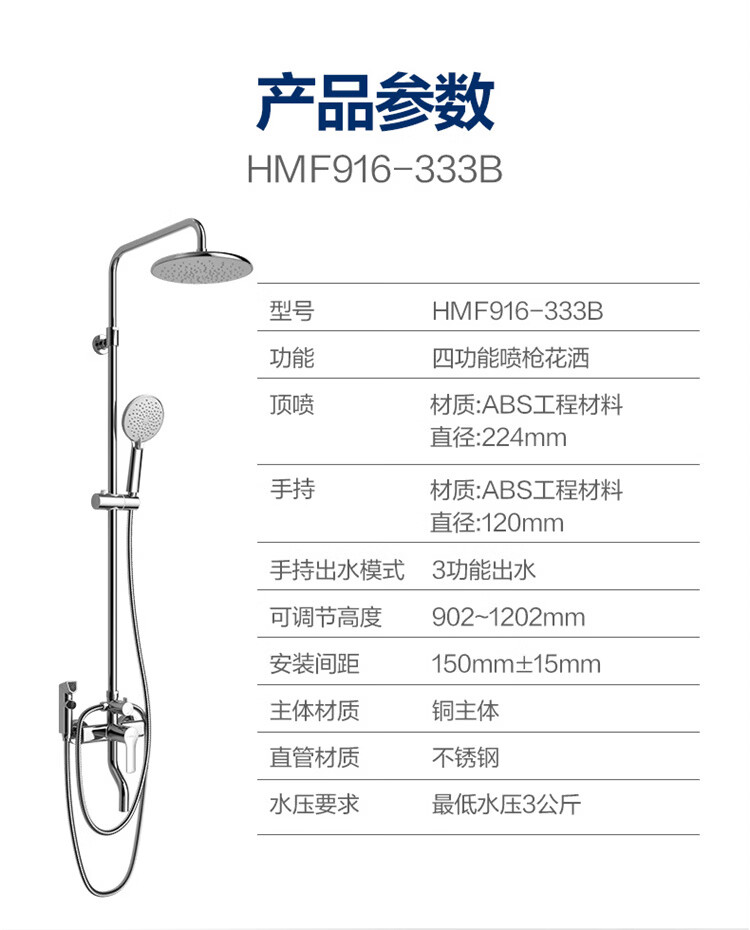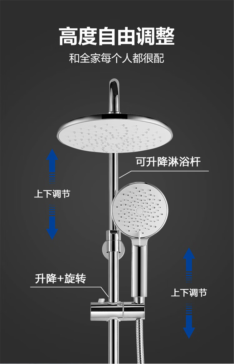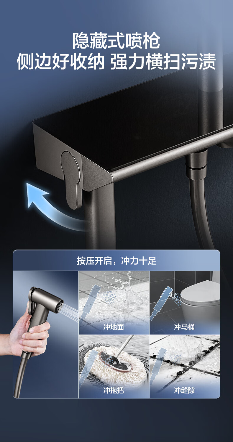 恒洁淋浴花洒套装 自动除垢大顶喷置物平台多功能可升降花洒全套972 【自动除垢+隐藏式下水+贴墙】972