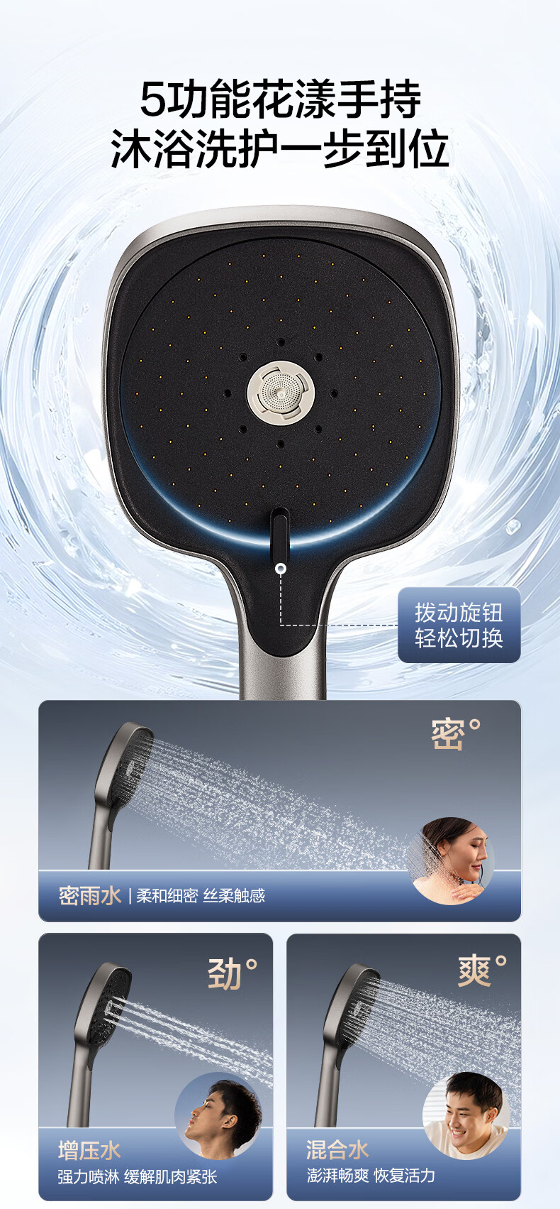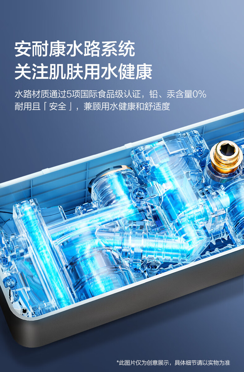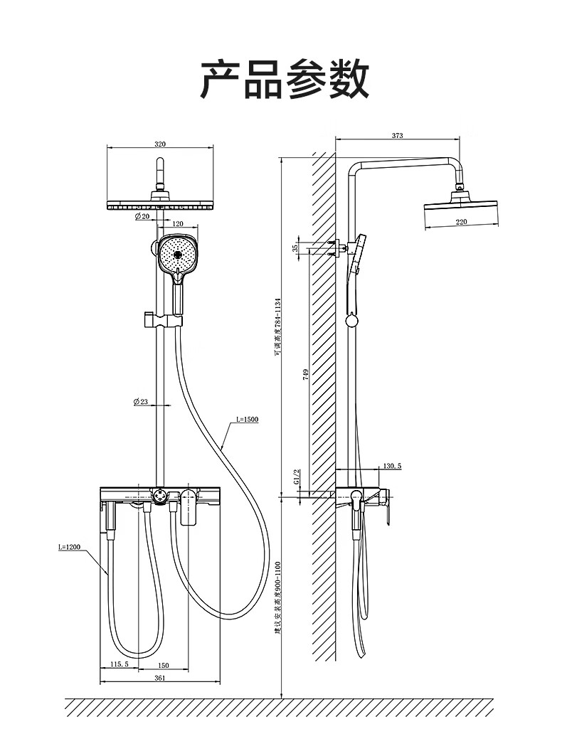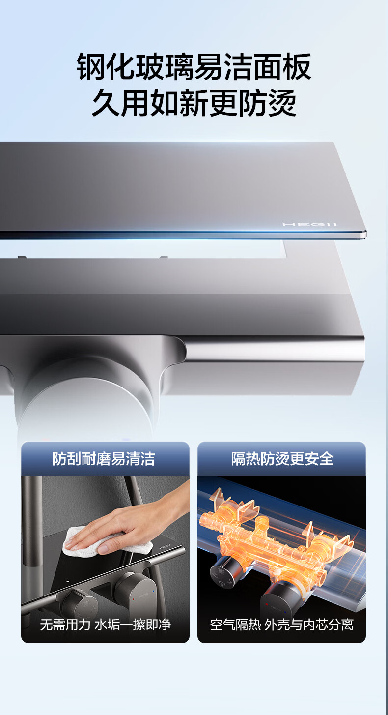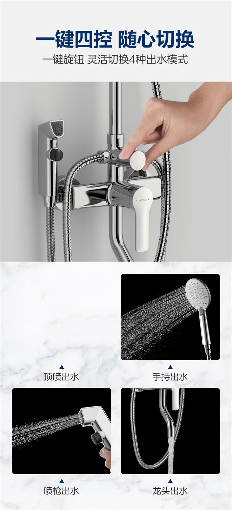 恒洁淋浴花洒套装 自动除垢大顶喷置物平台多功能可升降花洒全套972 【自动除垢+隐藏式下水+贴墙】972