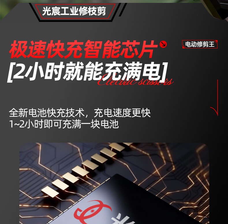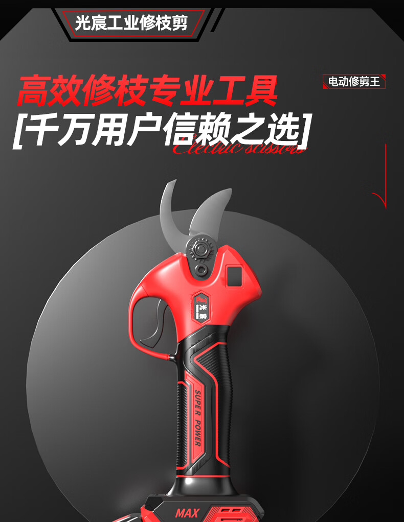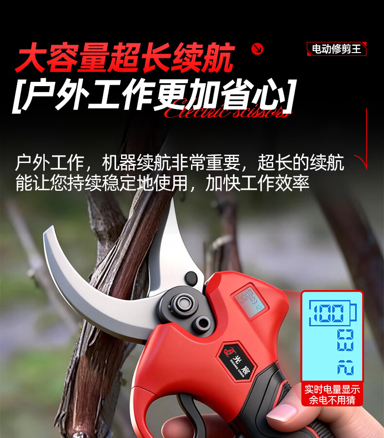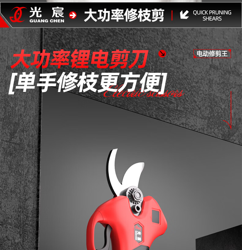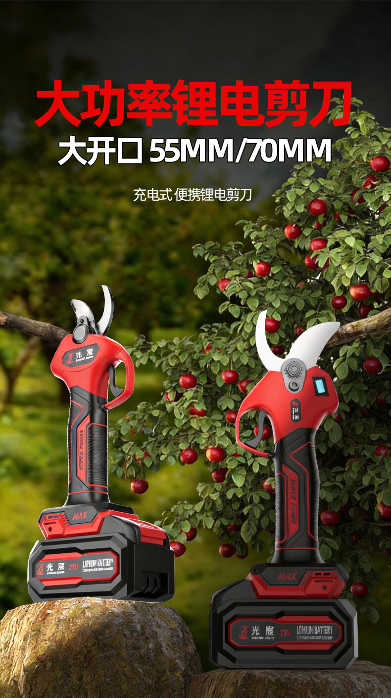 光宸电动剪刀剪树枝充电果树园林修枝剪刀修枝剪子剪枝机园艺剪 旗舰无刷款(开口5.5CM)10节两电一充