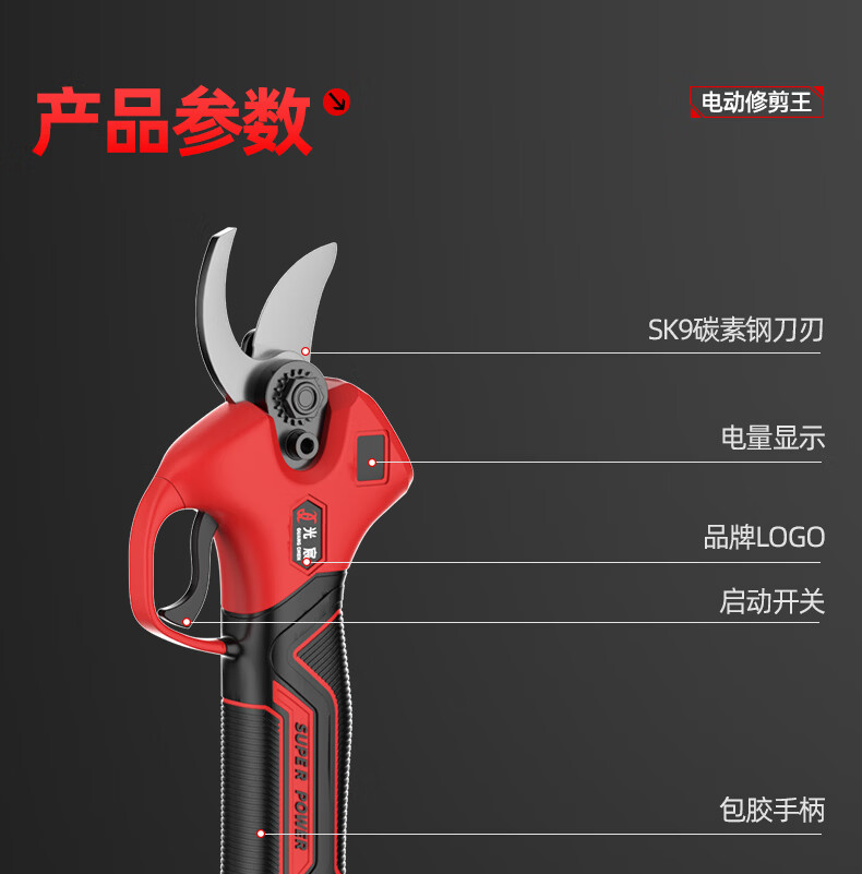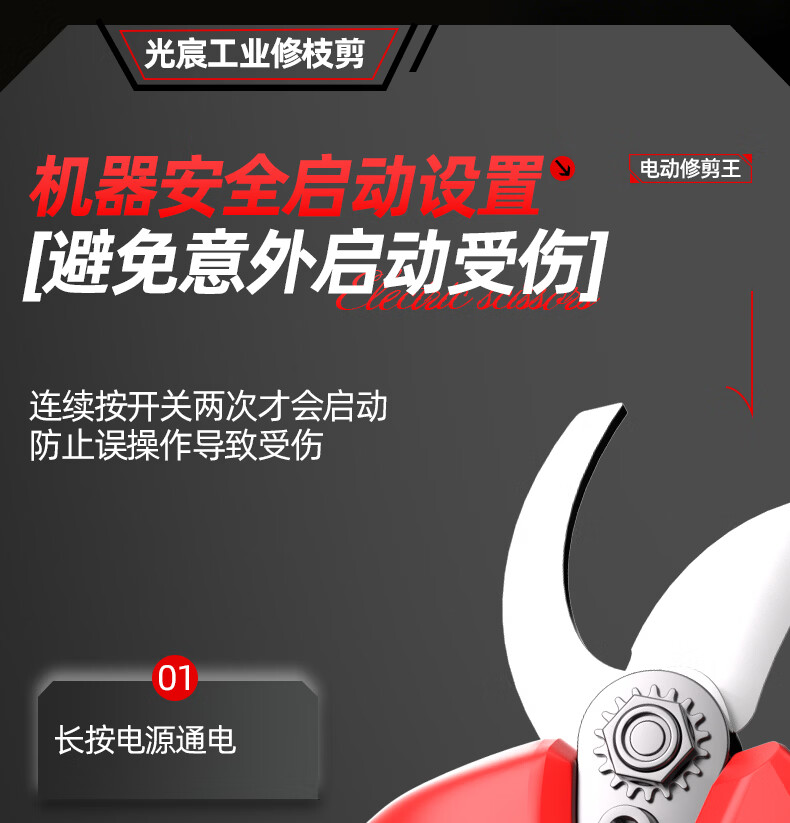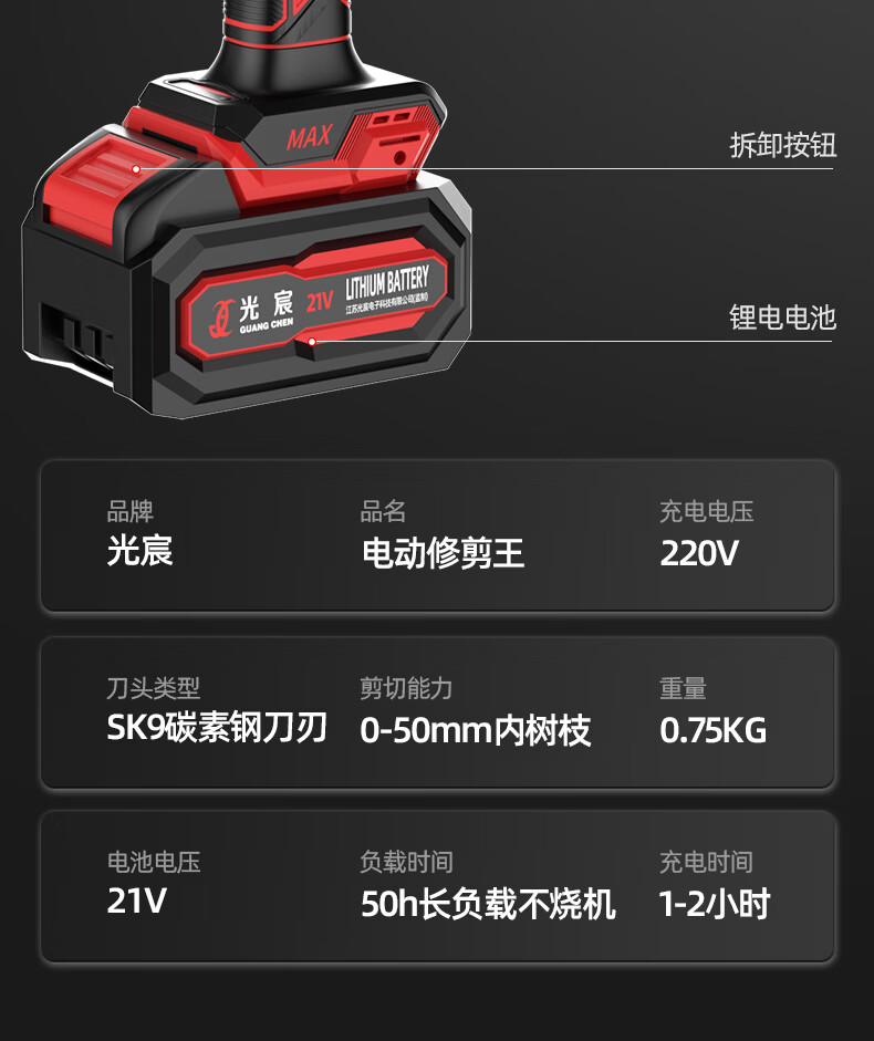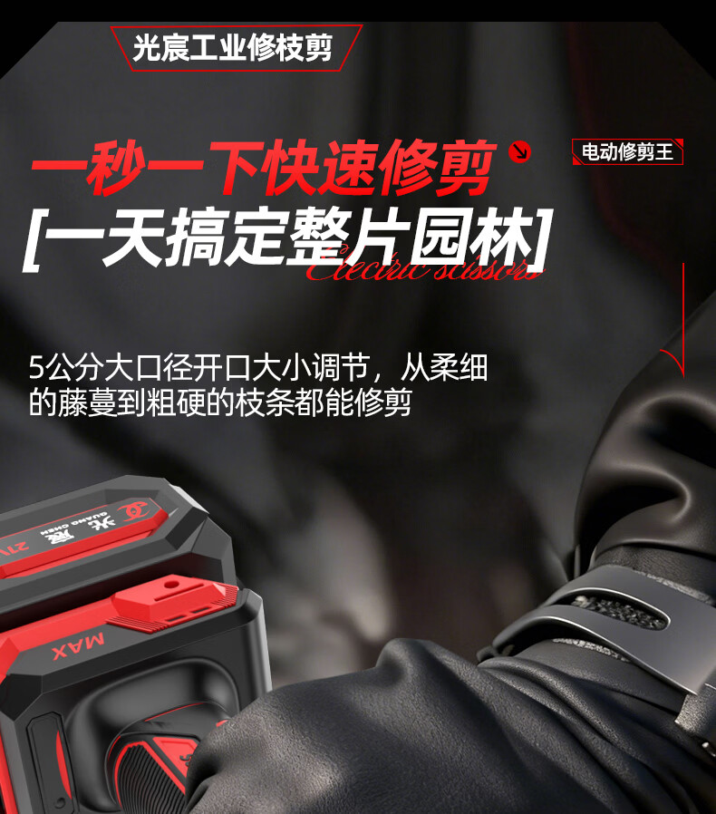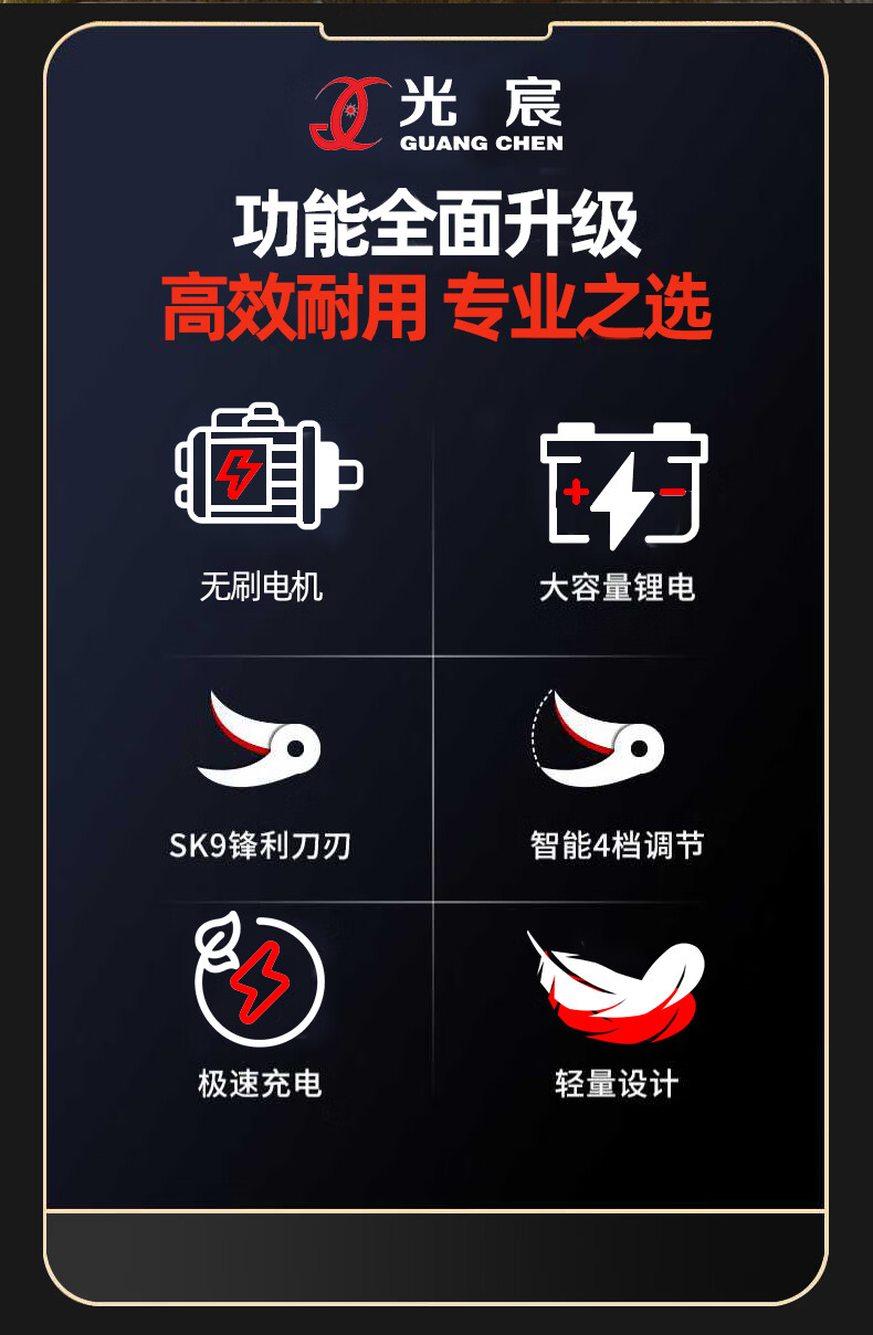 光宸电动剪刀剪树枝充电果树园林修枝剪刀修枝剪子剪枝机园艺剪 旗舰无刷款(开口5.5CM)10节两电一充