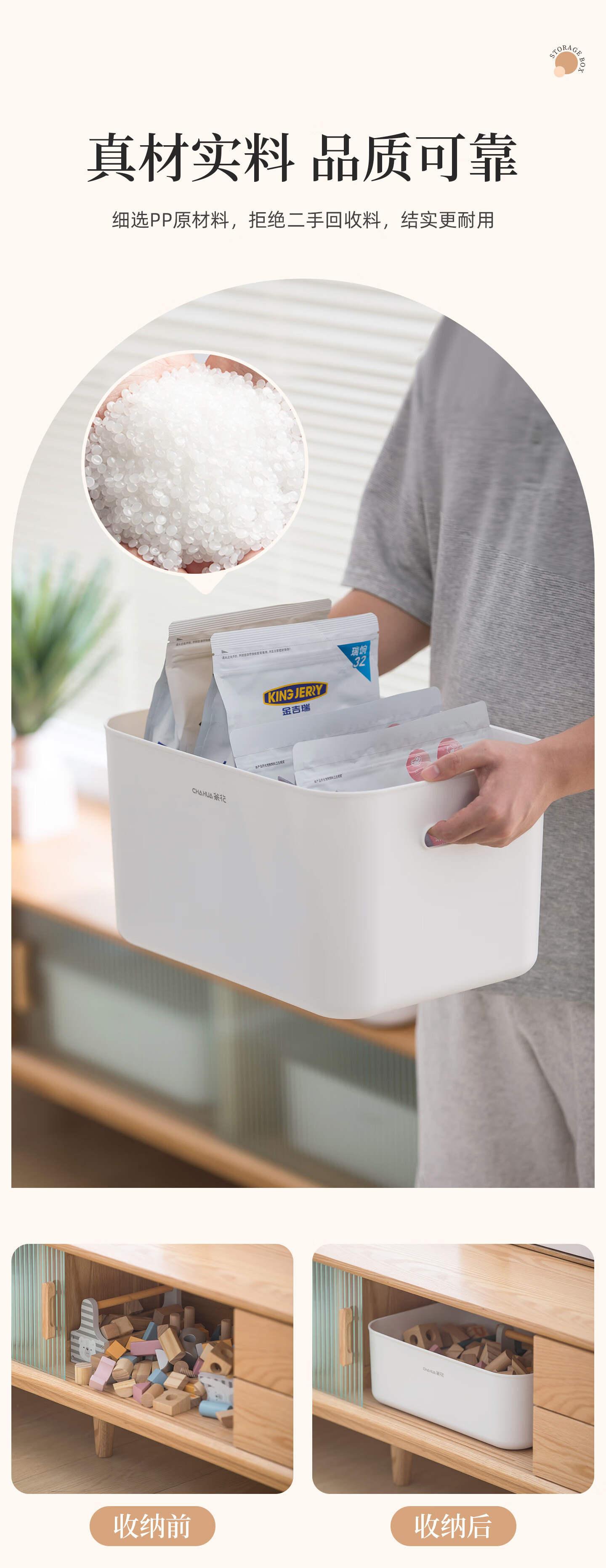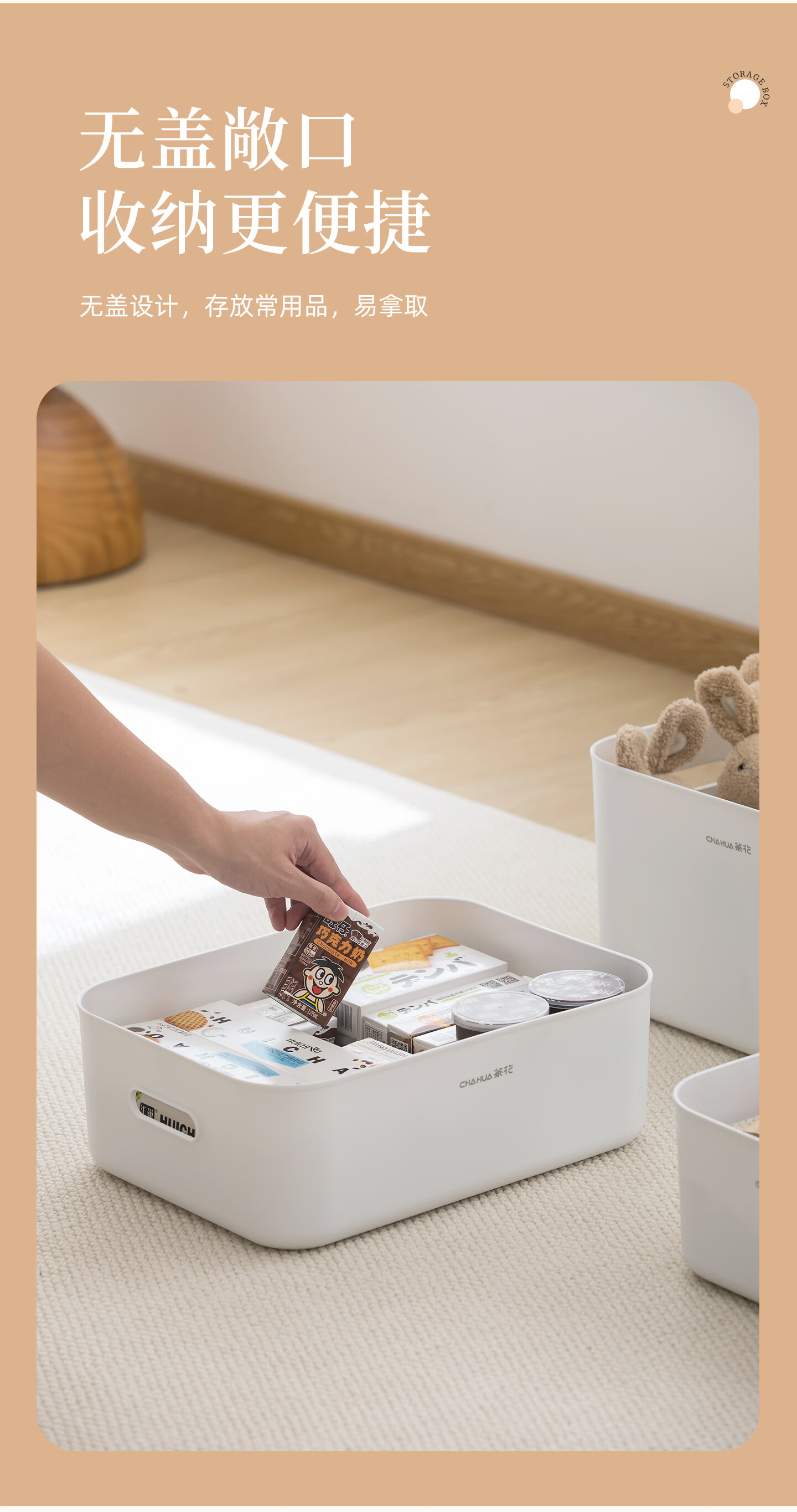 茶花收纳盒桌面小盒子收纳格置物防尘储物盒家用 1个装【6L】衣柜/桌面收纳盒