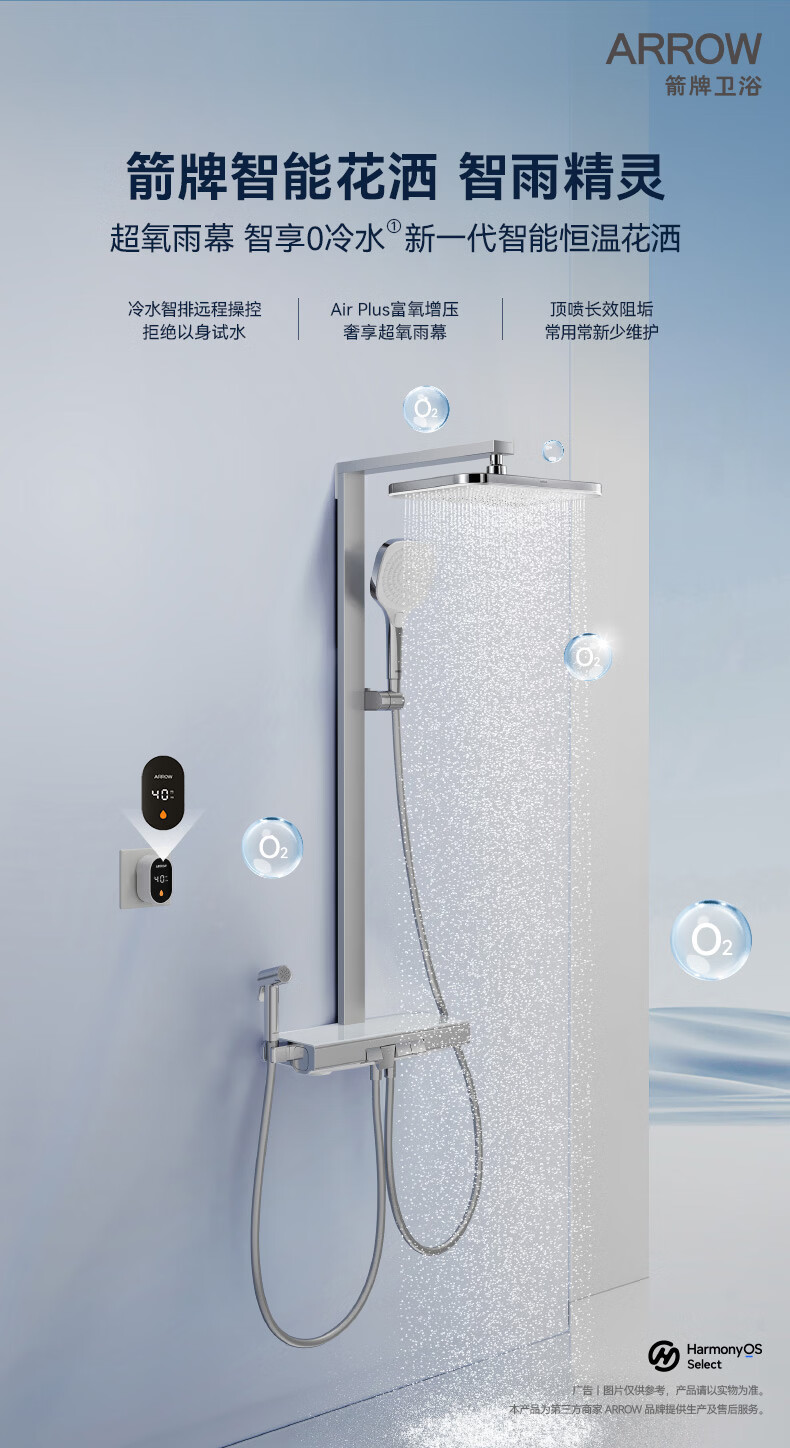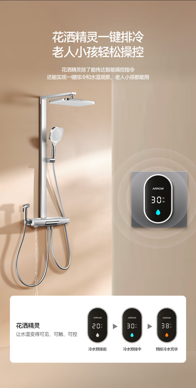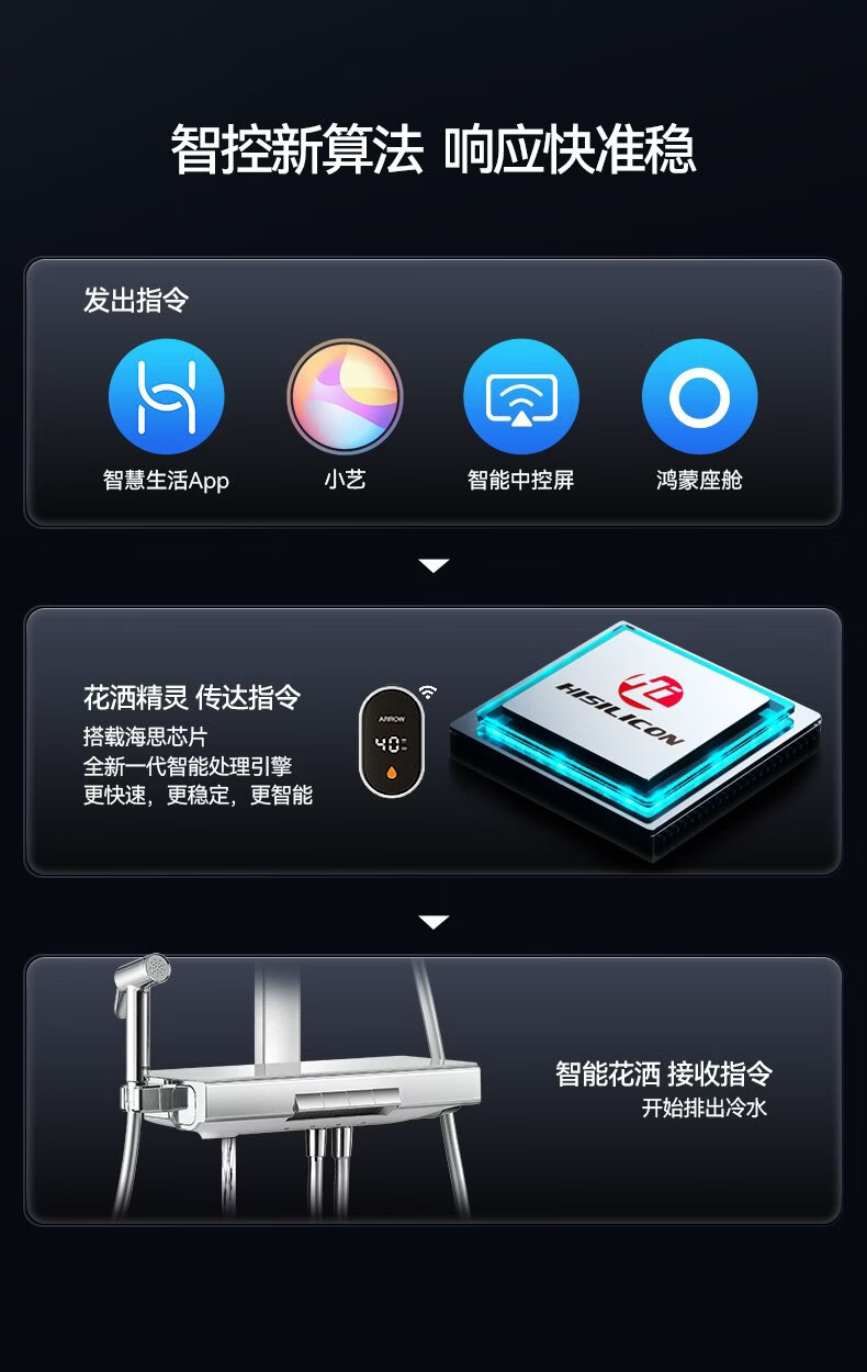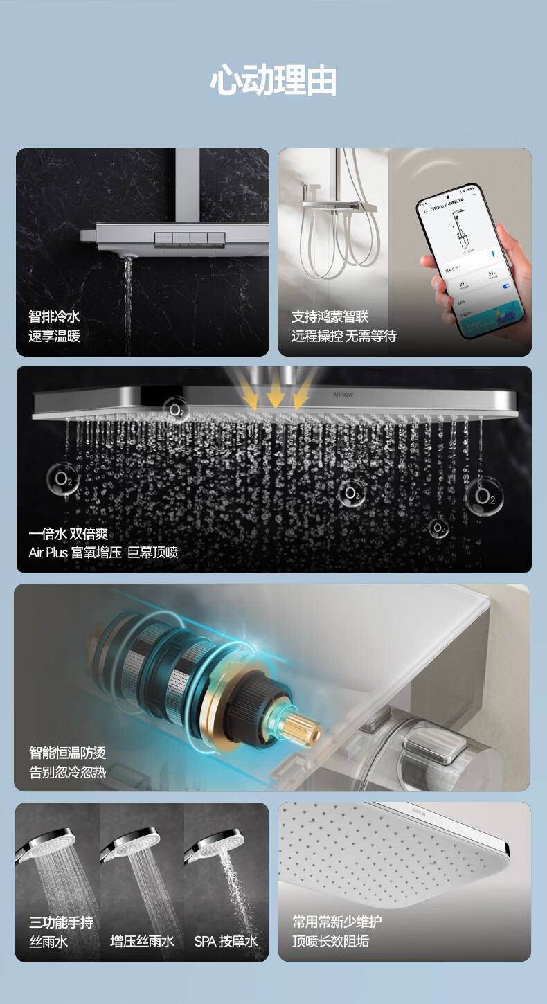 箭牌(ARROW)鸿蒙智选【智雨精灵】淋浴花洒套装0冷水恒温琴键增压花洒 鸿蒙智选花洒Pro-金属灰色