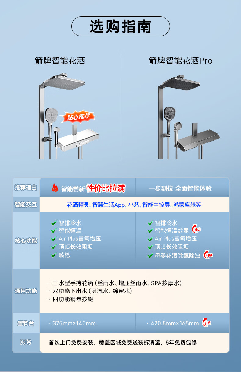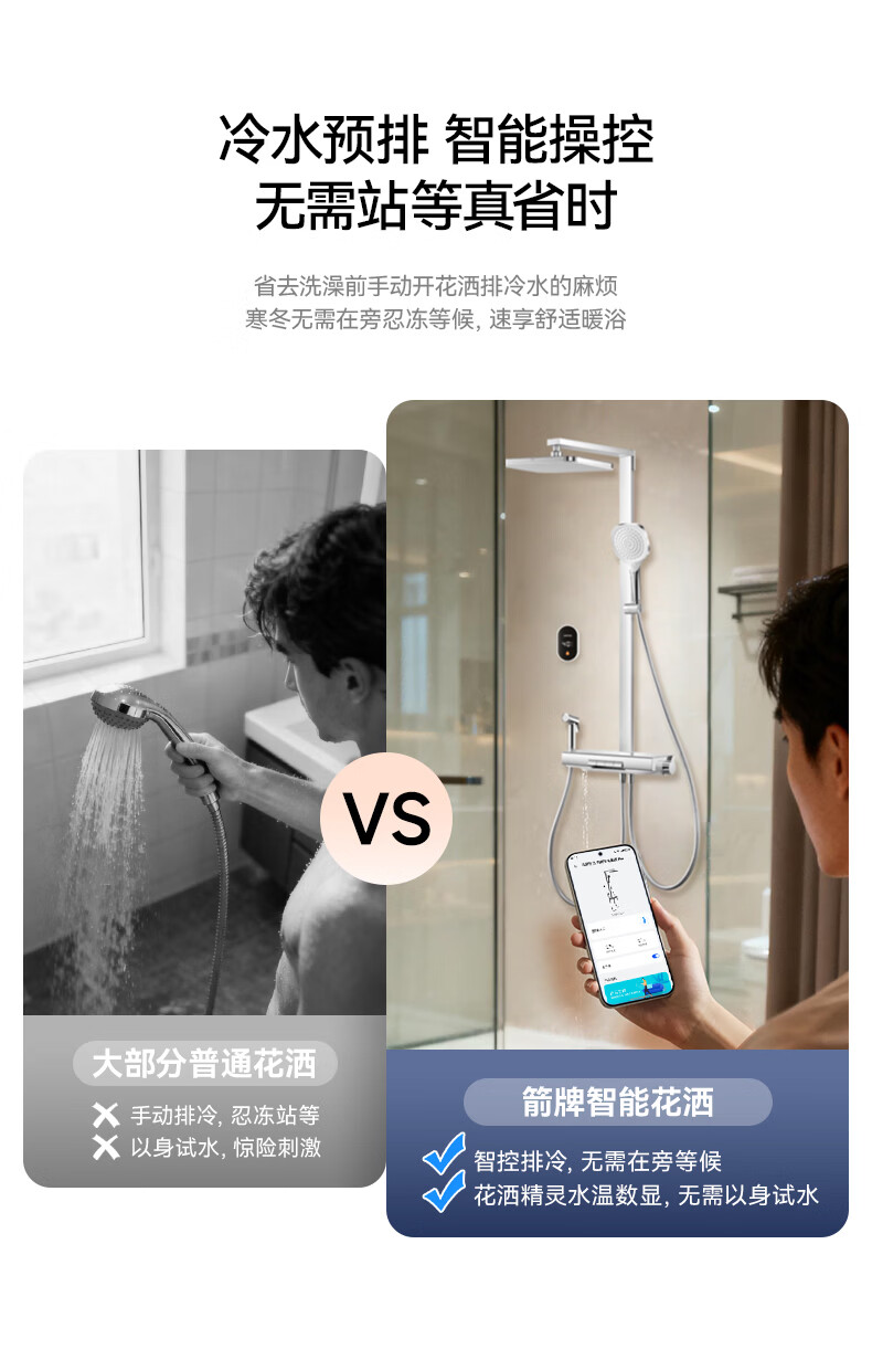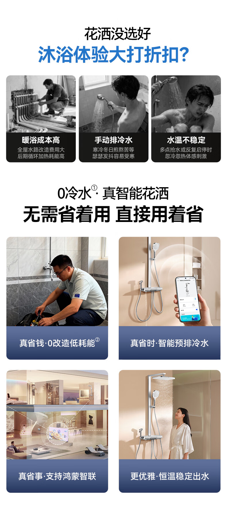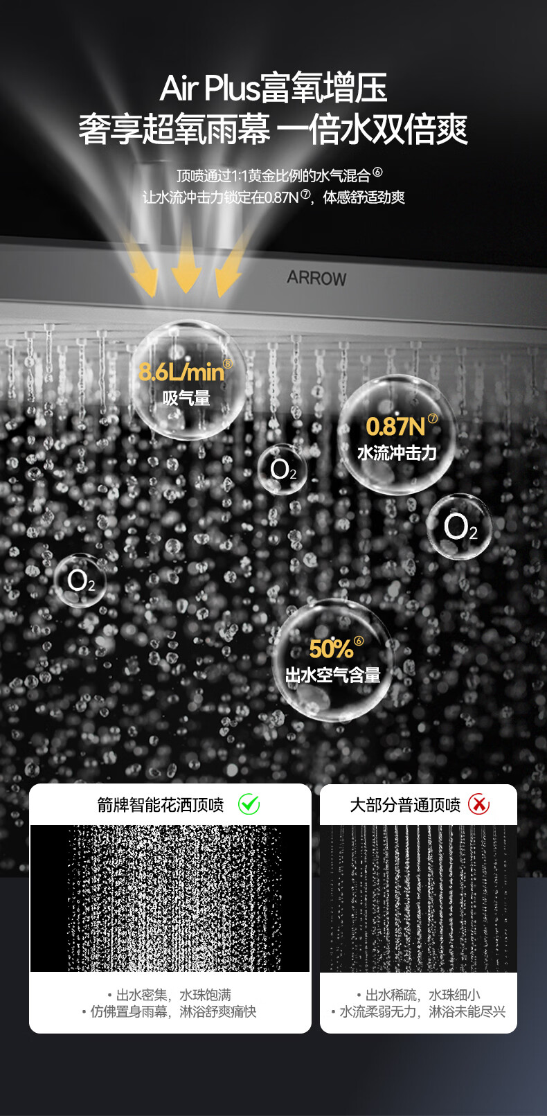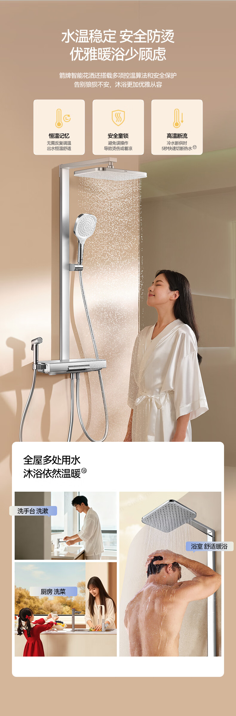 箭牌(ARROW)鸿蒙智选【智雨精灵】淋浴花洒套装0冷水恒温琴键增压花洒 鸿蒙智选花洒Pro-金属灰色