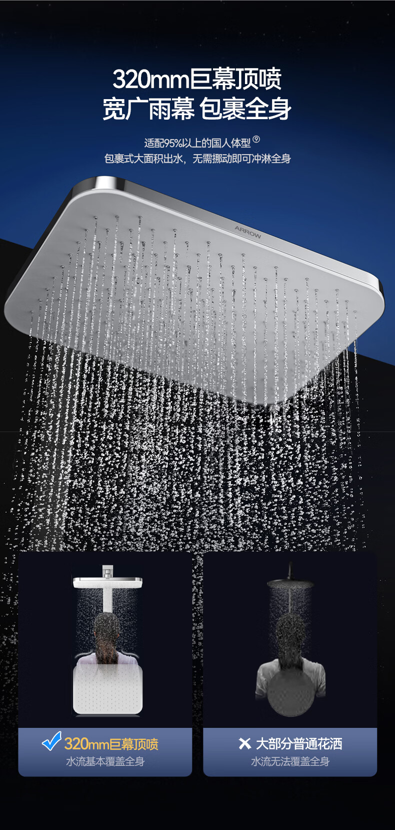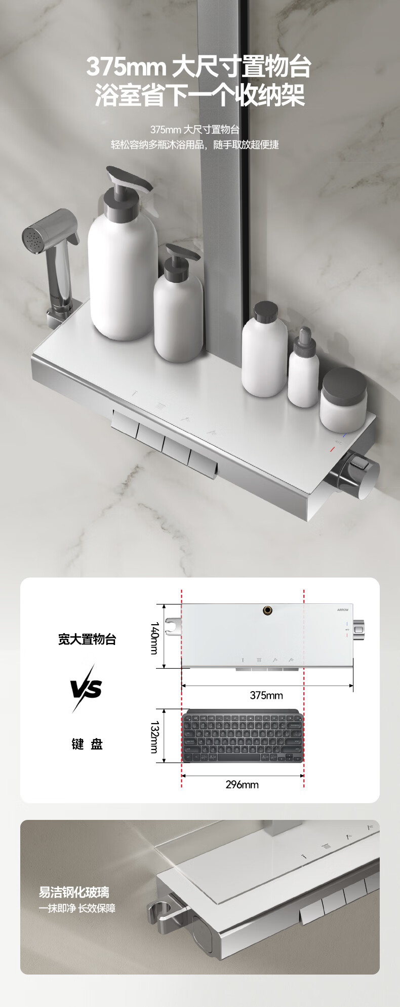箭牌(ARROW)大顶喷旋钮多功能置物平台淋浴花洒套装增压花洒K310浴室花洒全套 哑白-K310巨幕顶喷置物34211