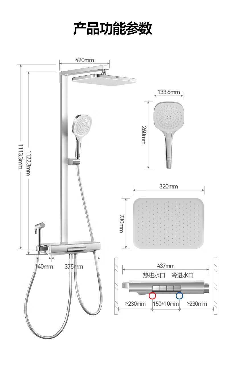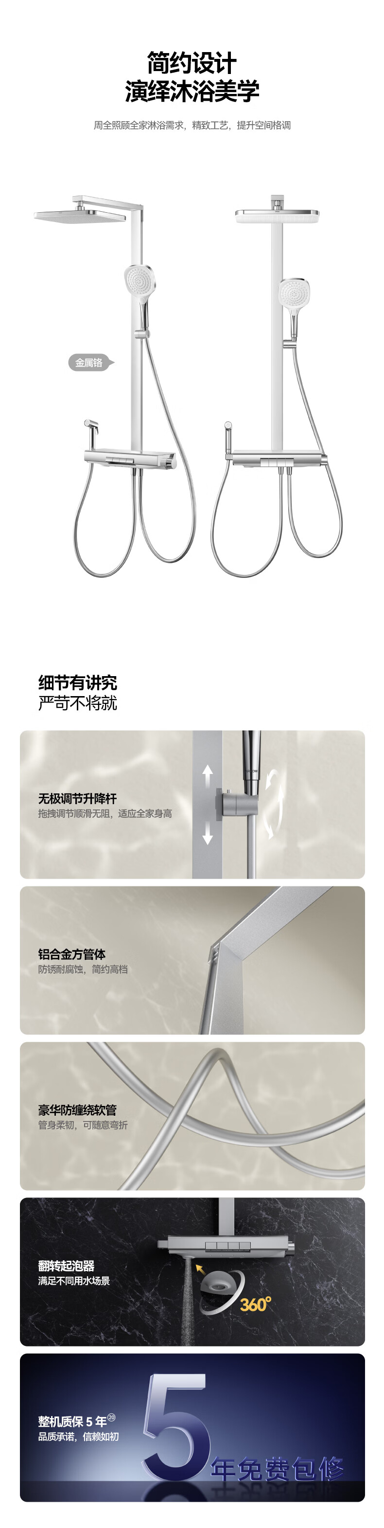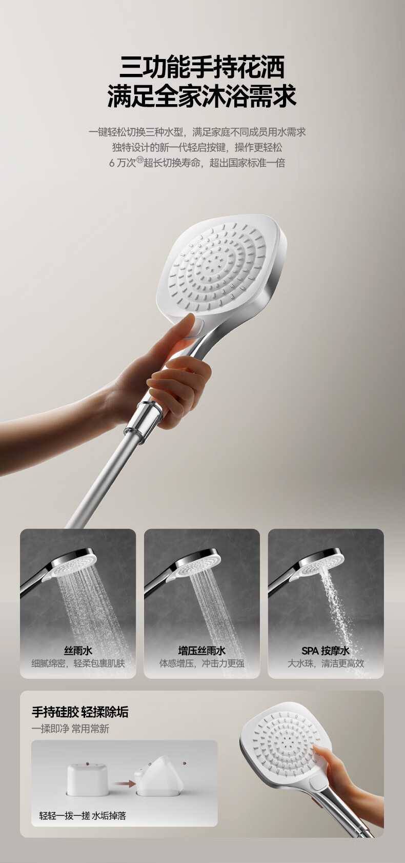 恒洁(HEGII) 淋浴花洒套装 智能除垢大顶喷置物平台多功能可升降花洒全套 【自动除垢-银色】936-333