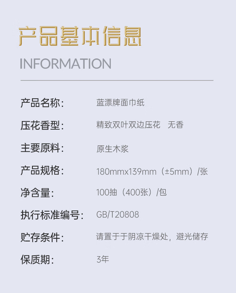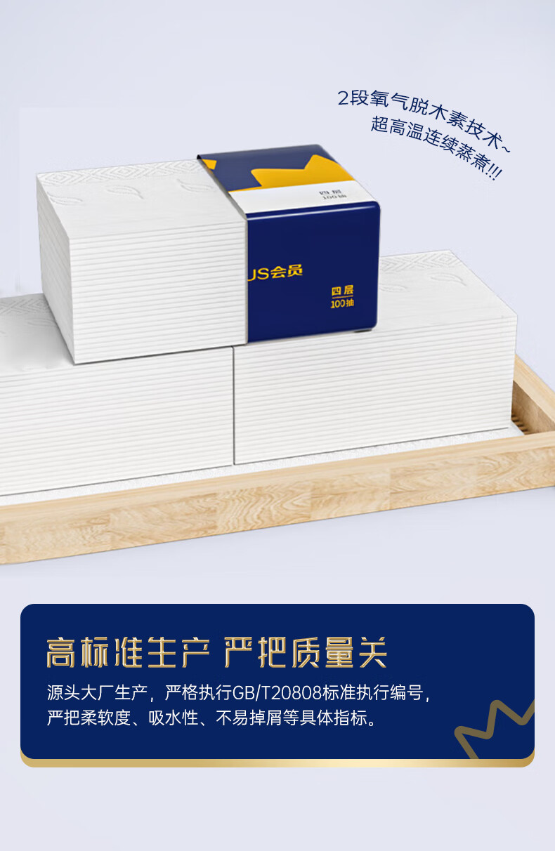 蓝漂XPLUS会员联名款 抽纸4层100抽*20包纸巾面巾纸餐巾纸抽整箱装