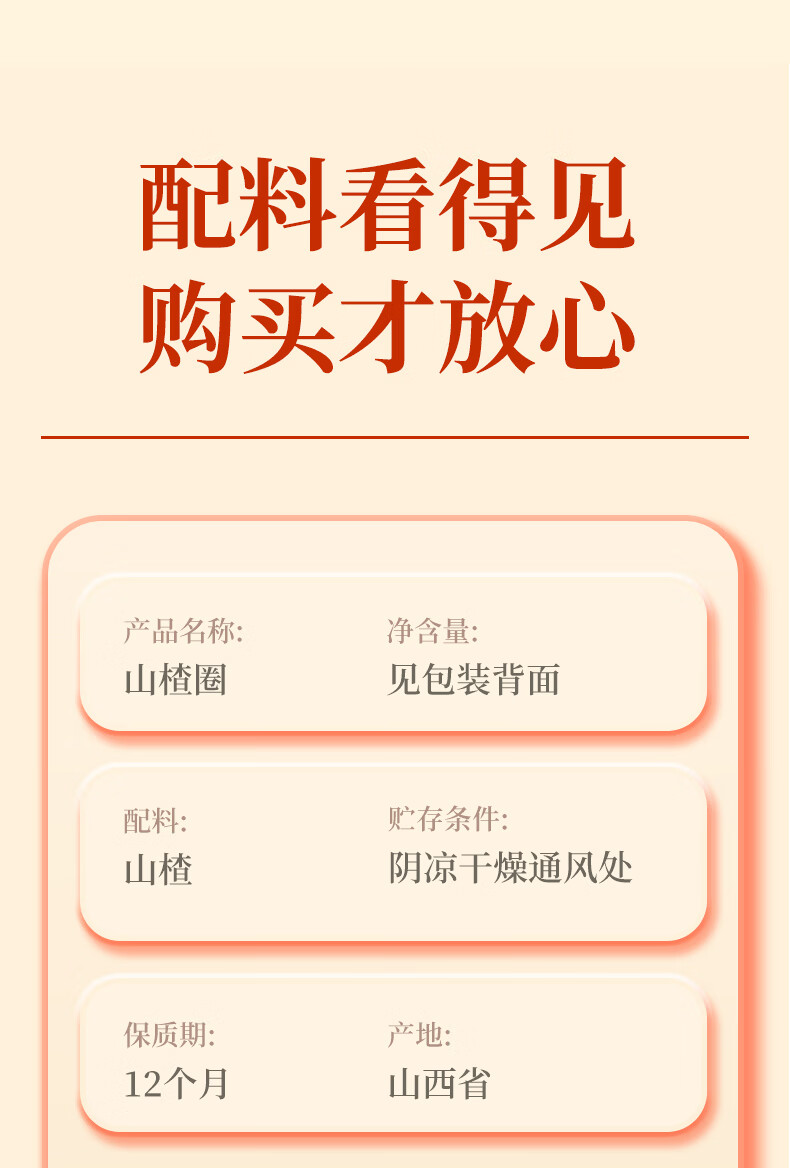晋斋坊无核山楂圈酸甜解腻片大肉厚原色原味果香馥郁500g*1袋 500g*1袋