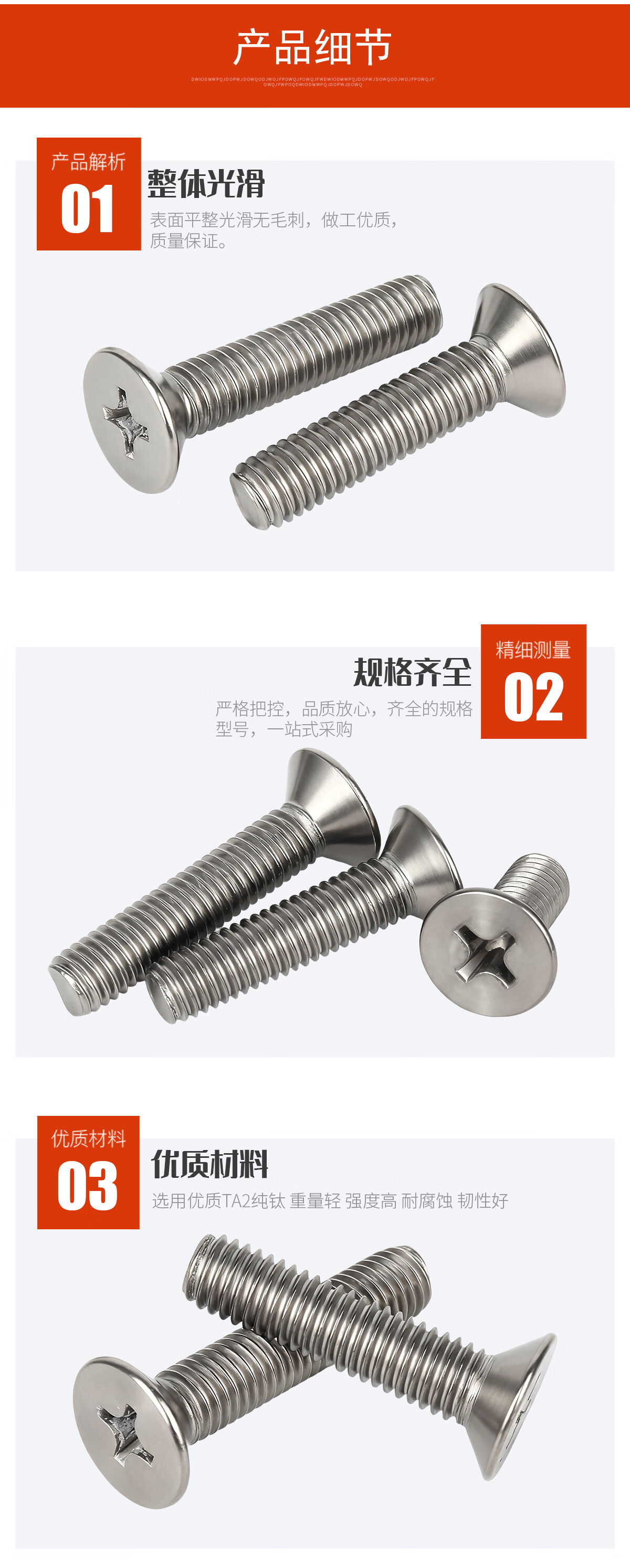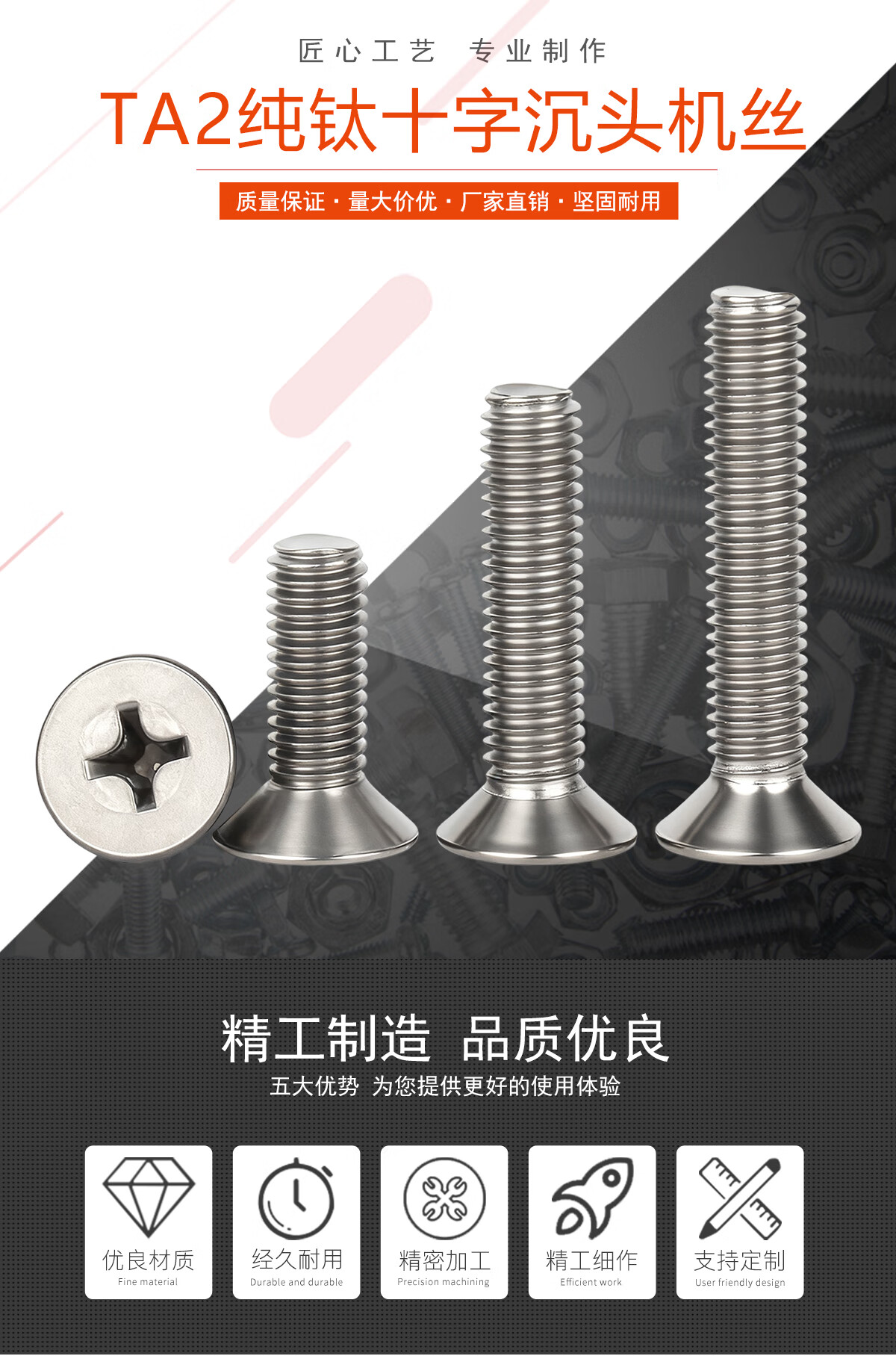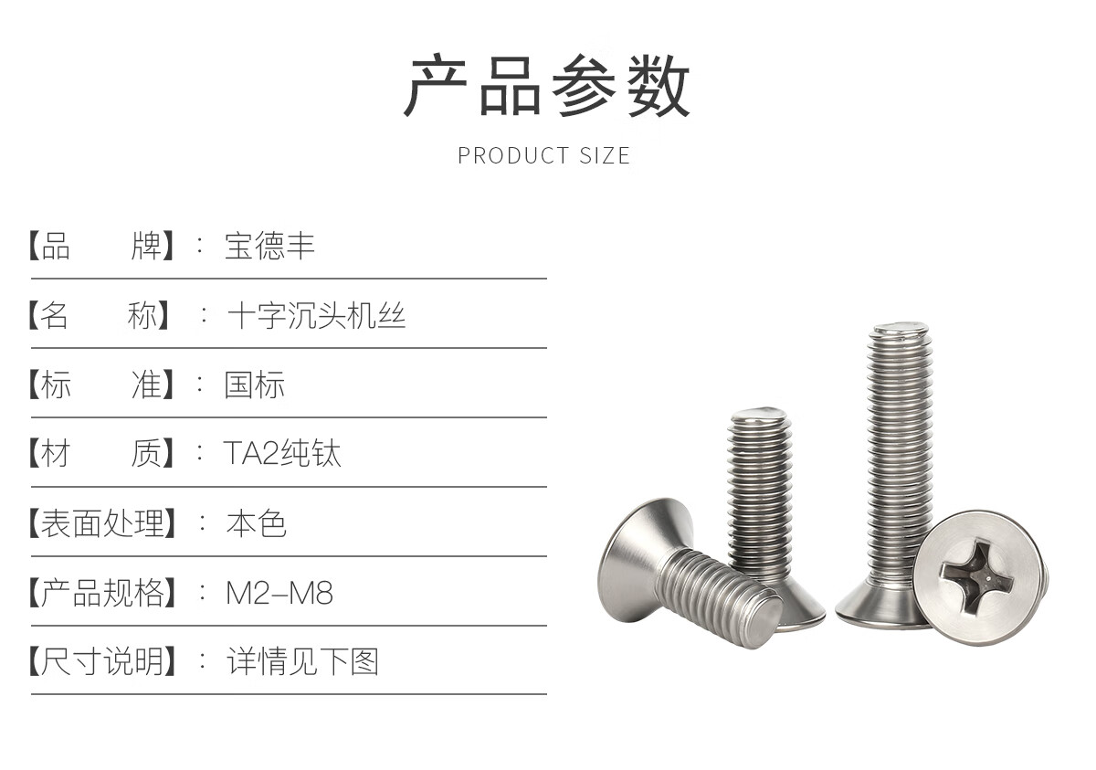 宝德丰国标TA2纯钛钛合金沉头十字螺丝平头螺钉螺栓M2M2.5M3M4M5M6M8M10 M2x3[10只]