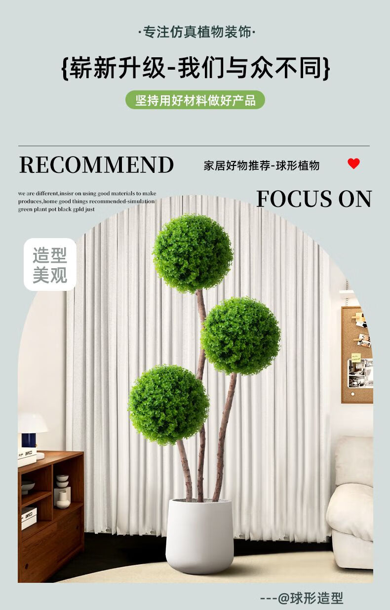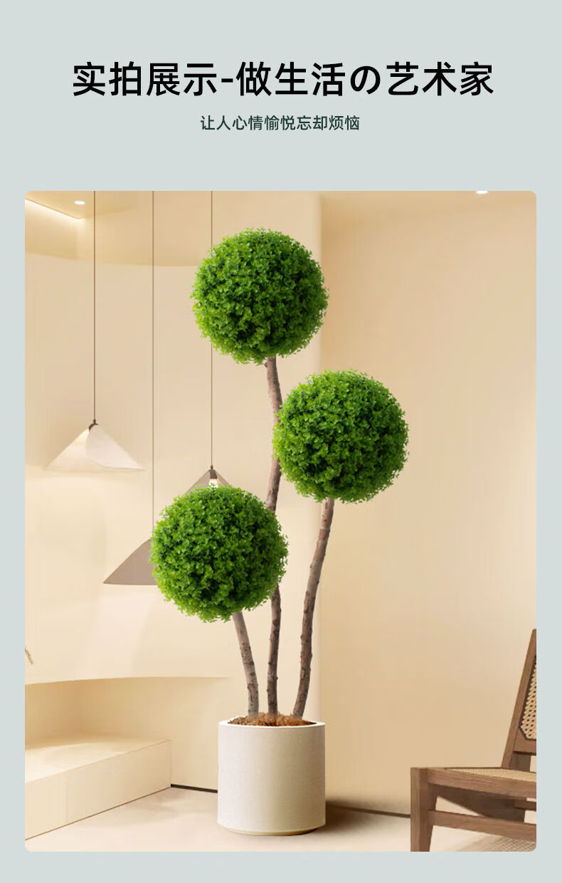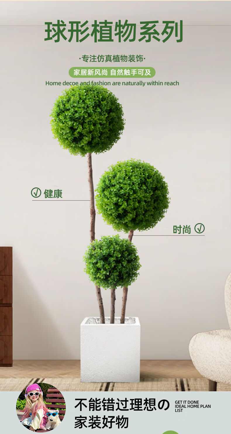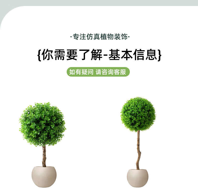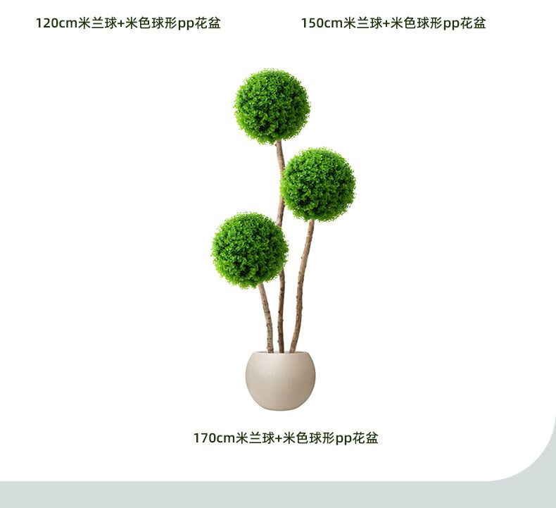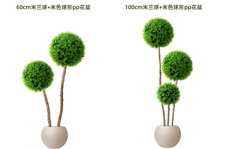 OYKTN仿真绿植球型植物大型室内球形客厅盆栽装饰摆件假花仿真花盆景扎 米兰球+白色齿轮花盆+吊牌+椰丝 60cm