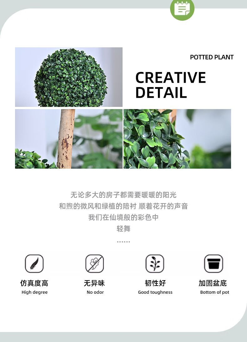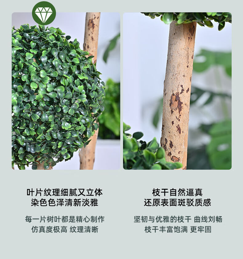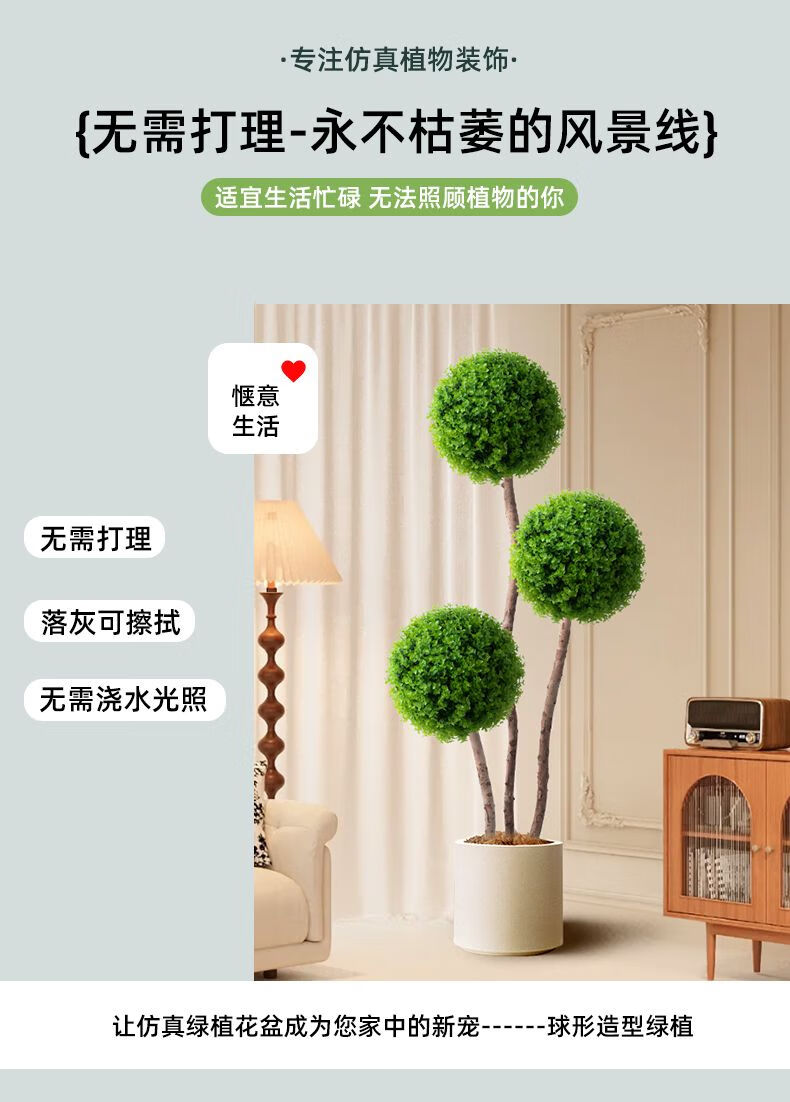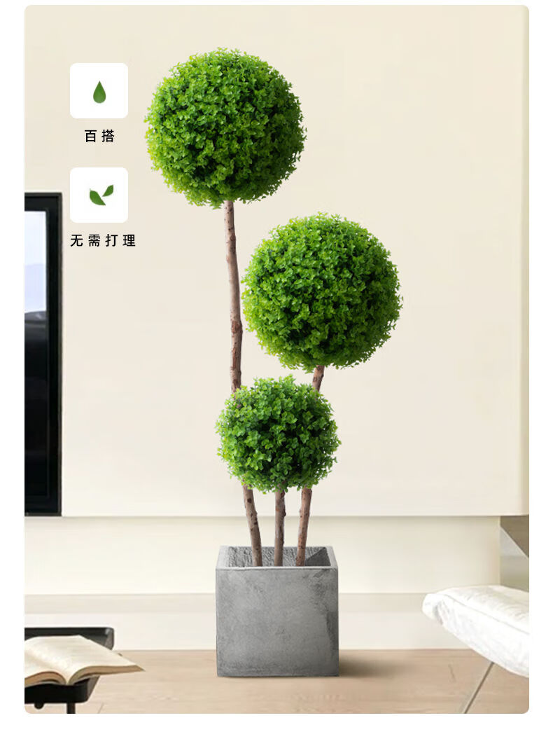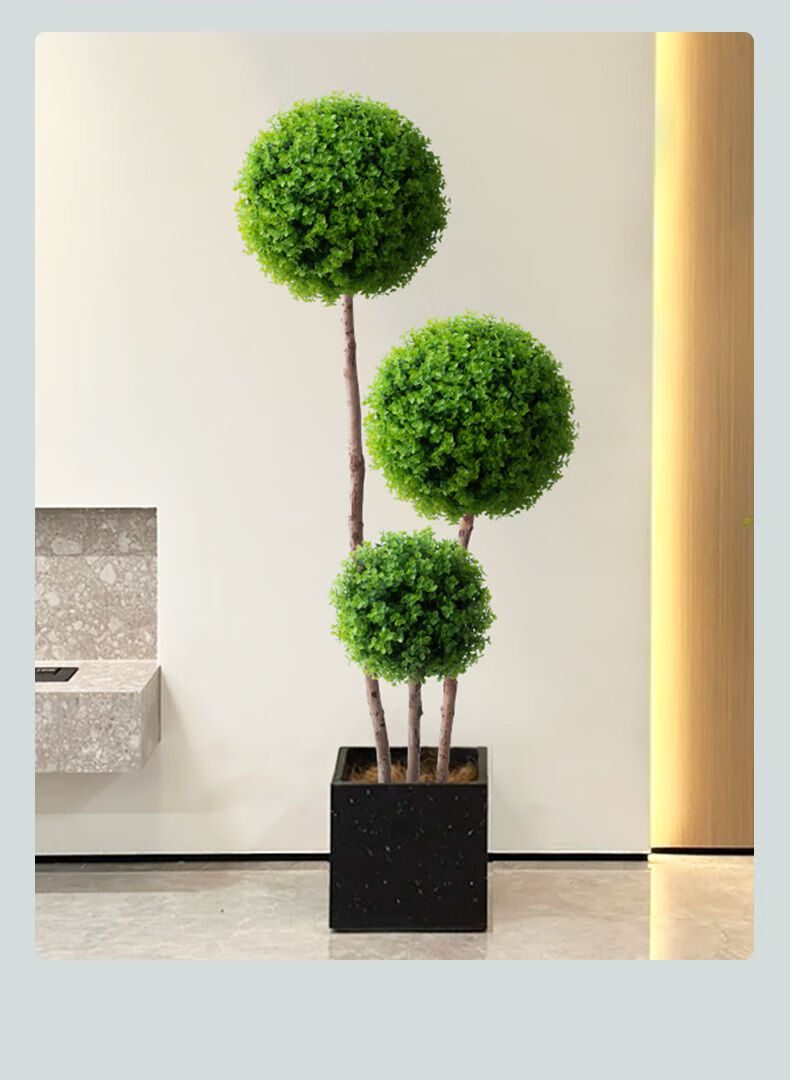 OYKTN仿真绿植球型植物大型室内球形客厅盆栽装饰摆件假花仿真花盆景扎 米兰球+白色齿轮花盆+吊牌+椰丝 60cm
