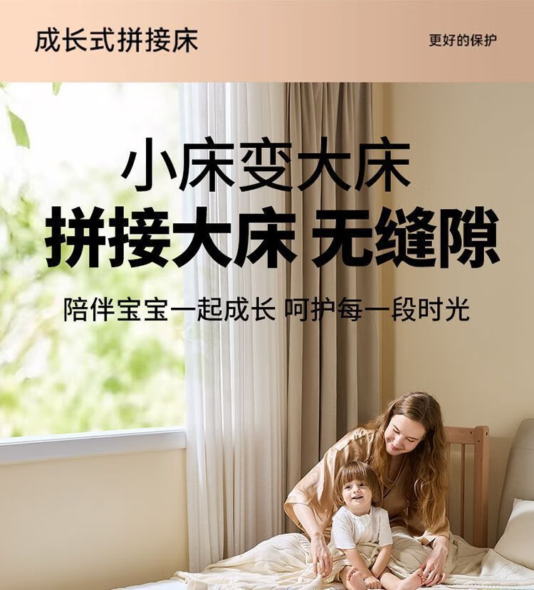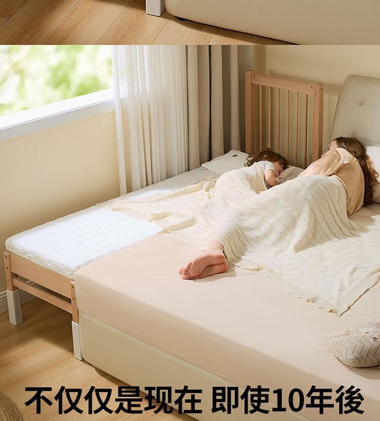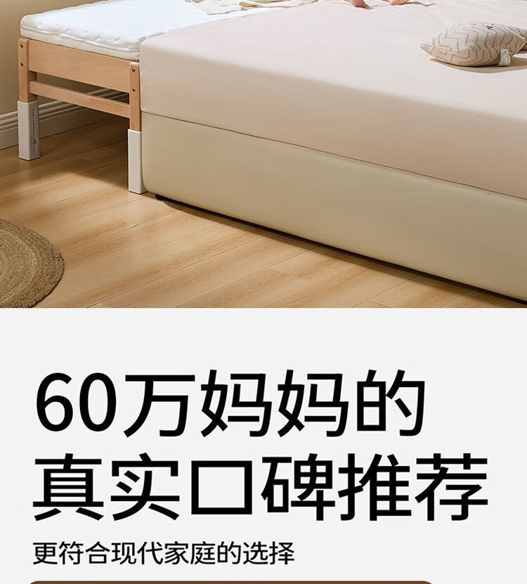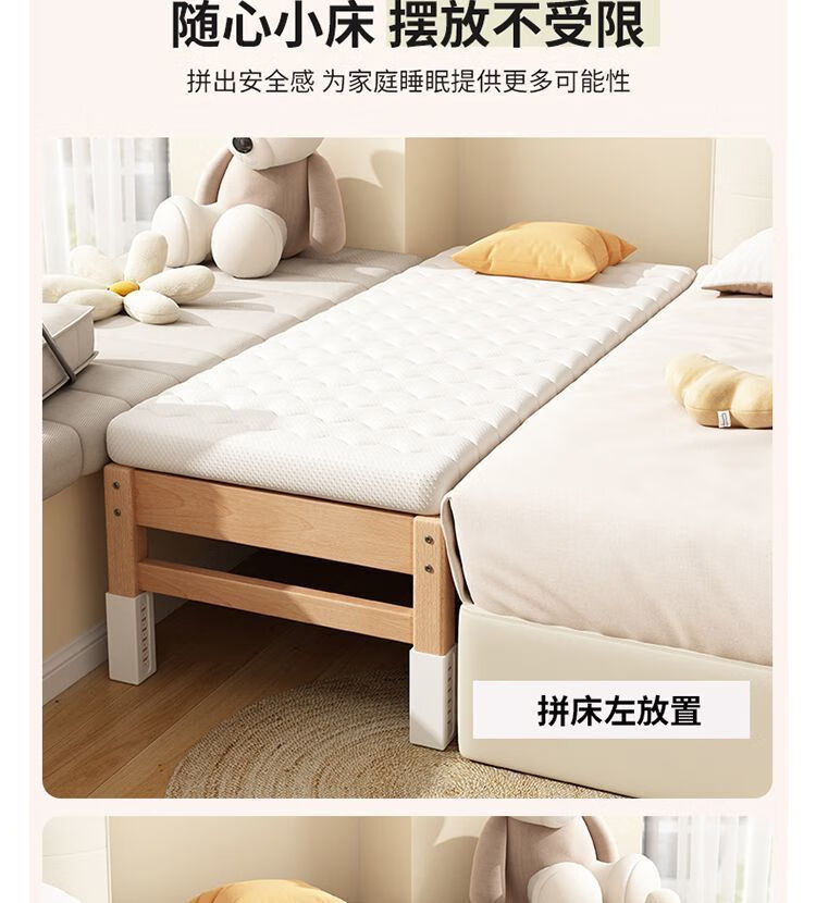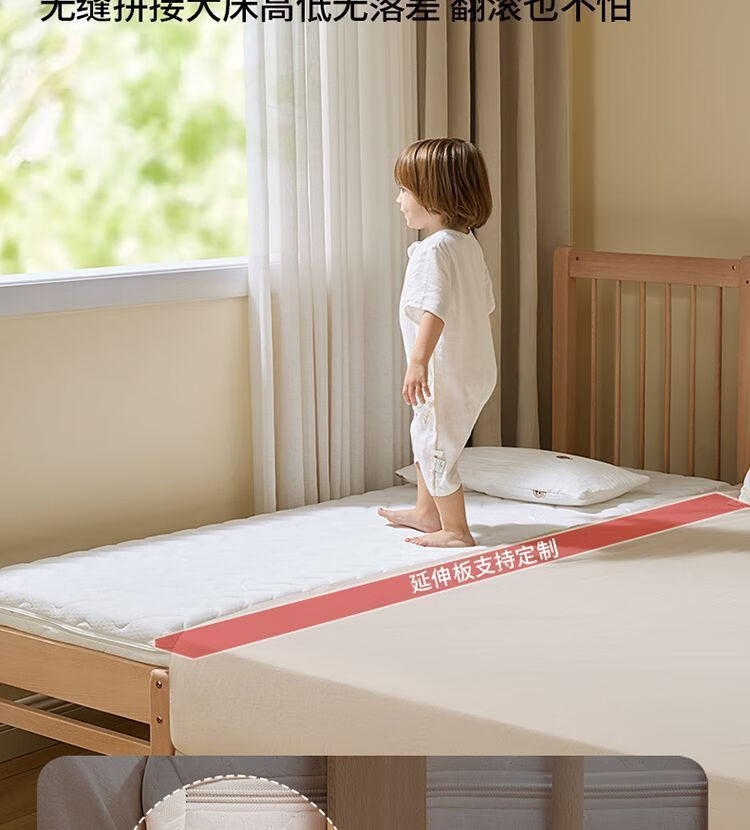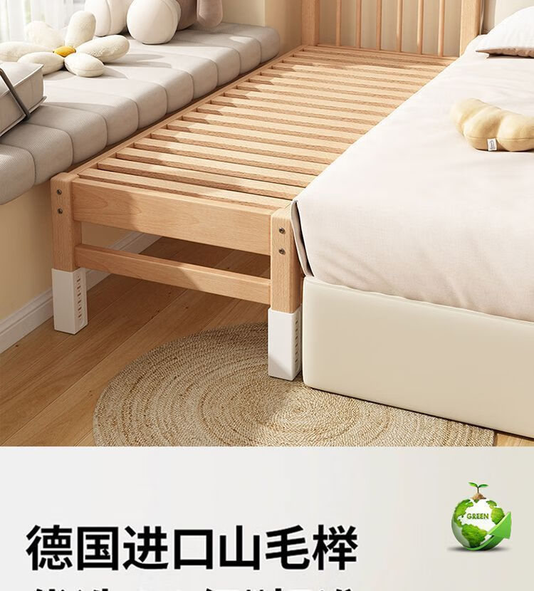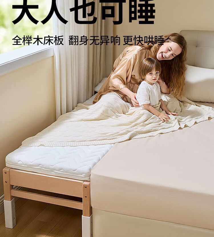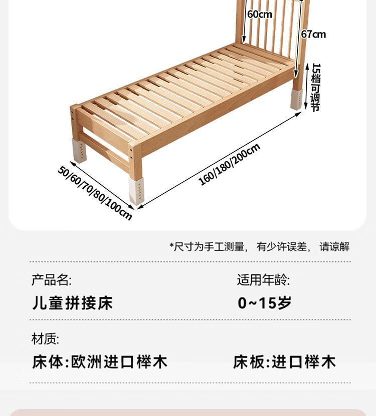 海诗圣堡实木儿童床榉木儿童拼接床加宽宝宝小床边护栏婴儿床可调节高度床 平板床(裸床) 160*60CM【进口榉木打造】