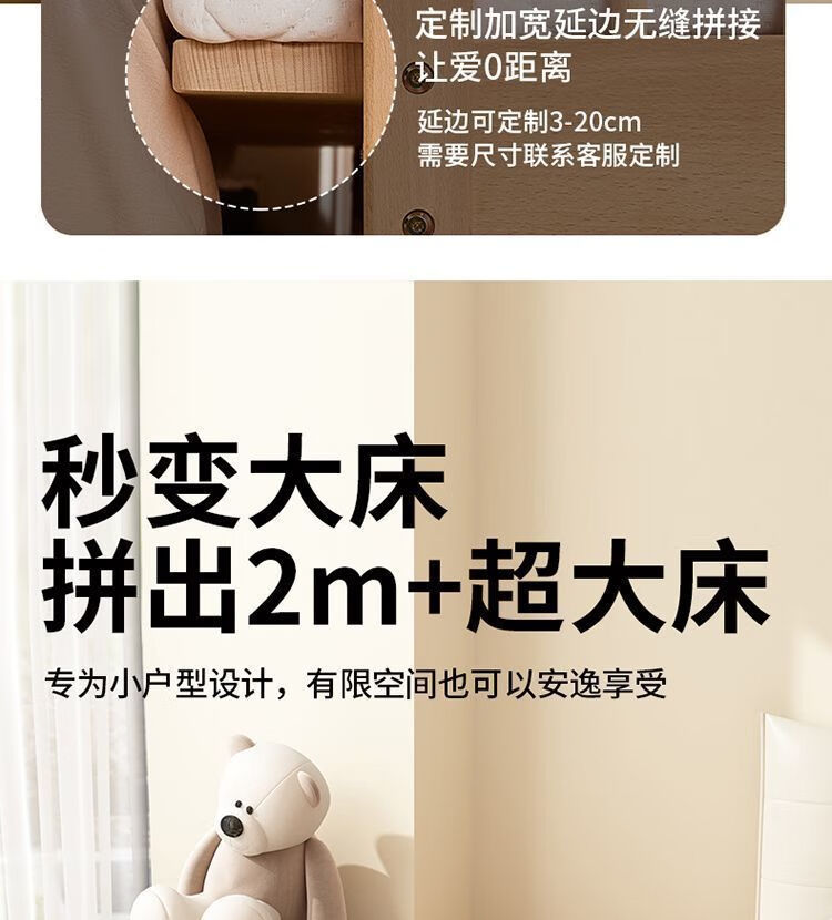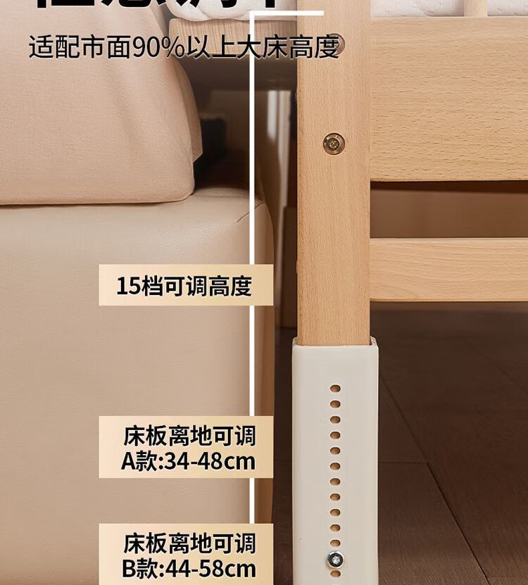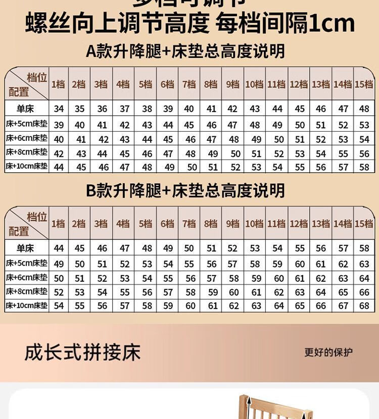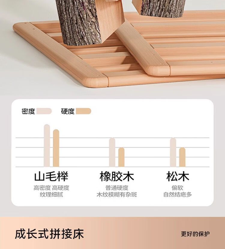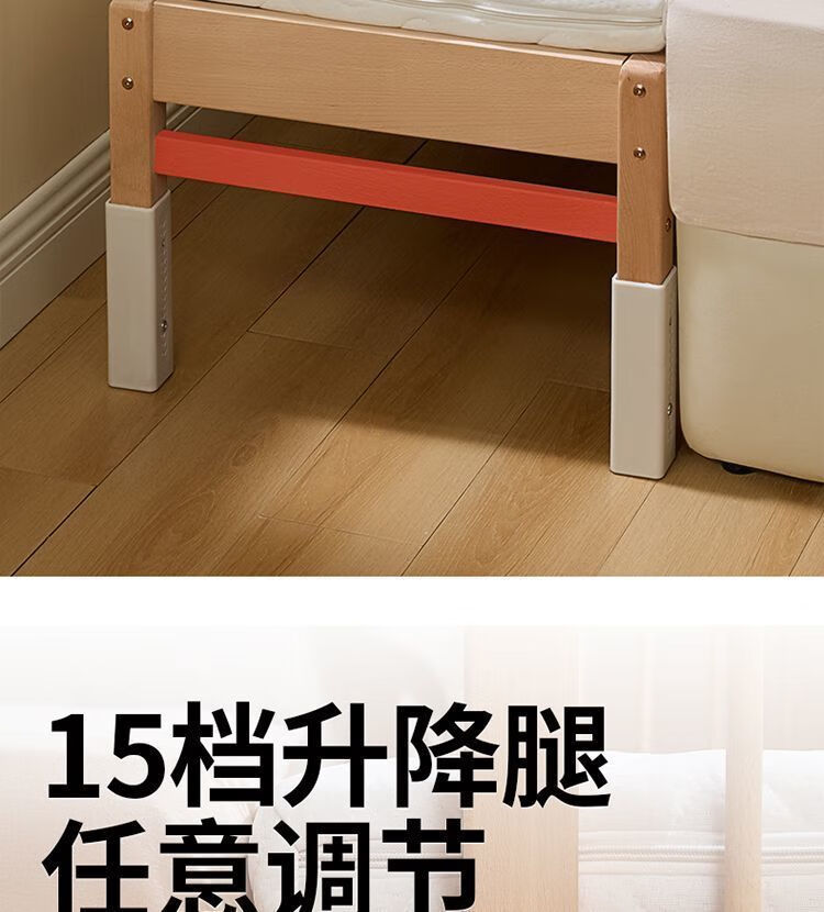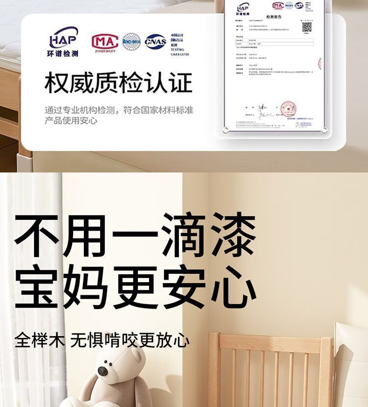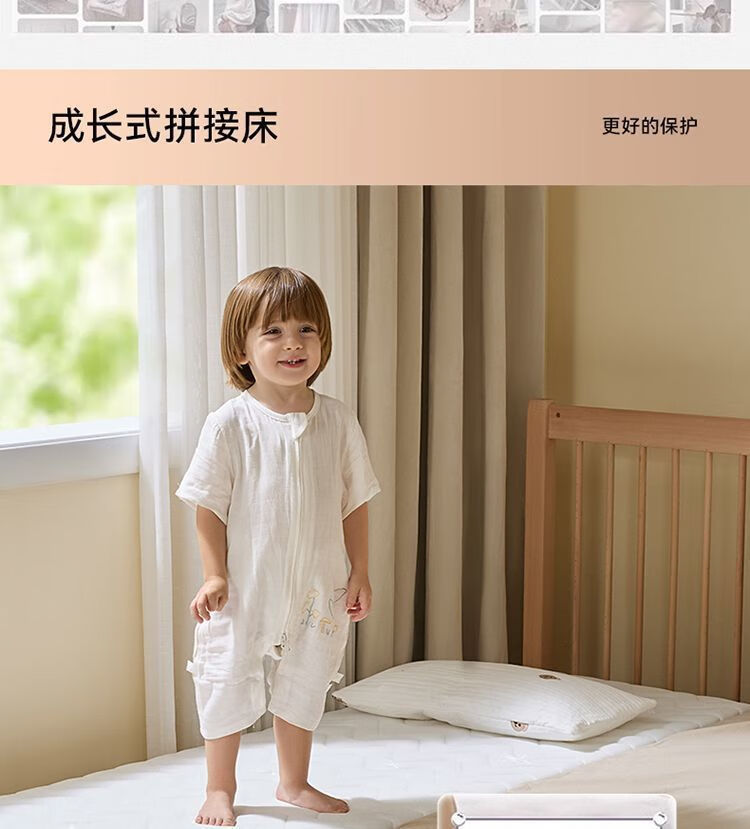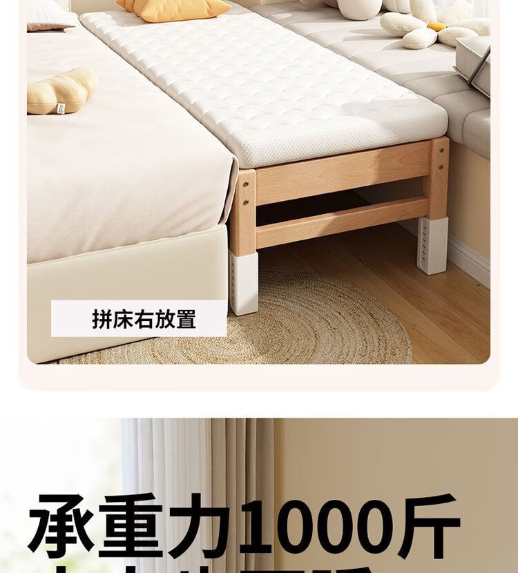 海诗圣堡实木儿童床榉木儿童拼接床加宽宝宝小床边护栏婴儿床可调节高度床 平板床(裸床) 160*60CM【进口榉木打造】
