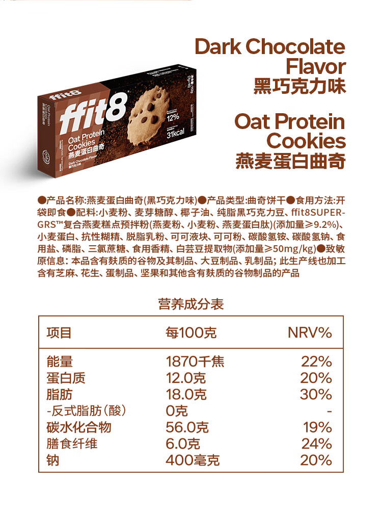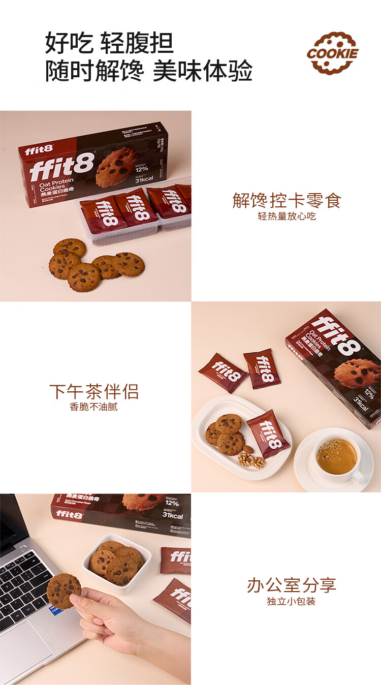ffit8燕麦蛋白曲奇饼干高蛋白酥脆饼干零食网红零食休闲下午茶 【山姆同款】黑巧克力味 7g*16包*4盒装