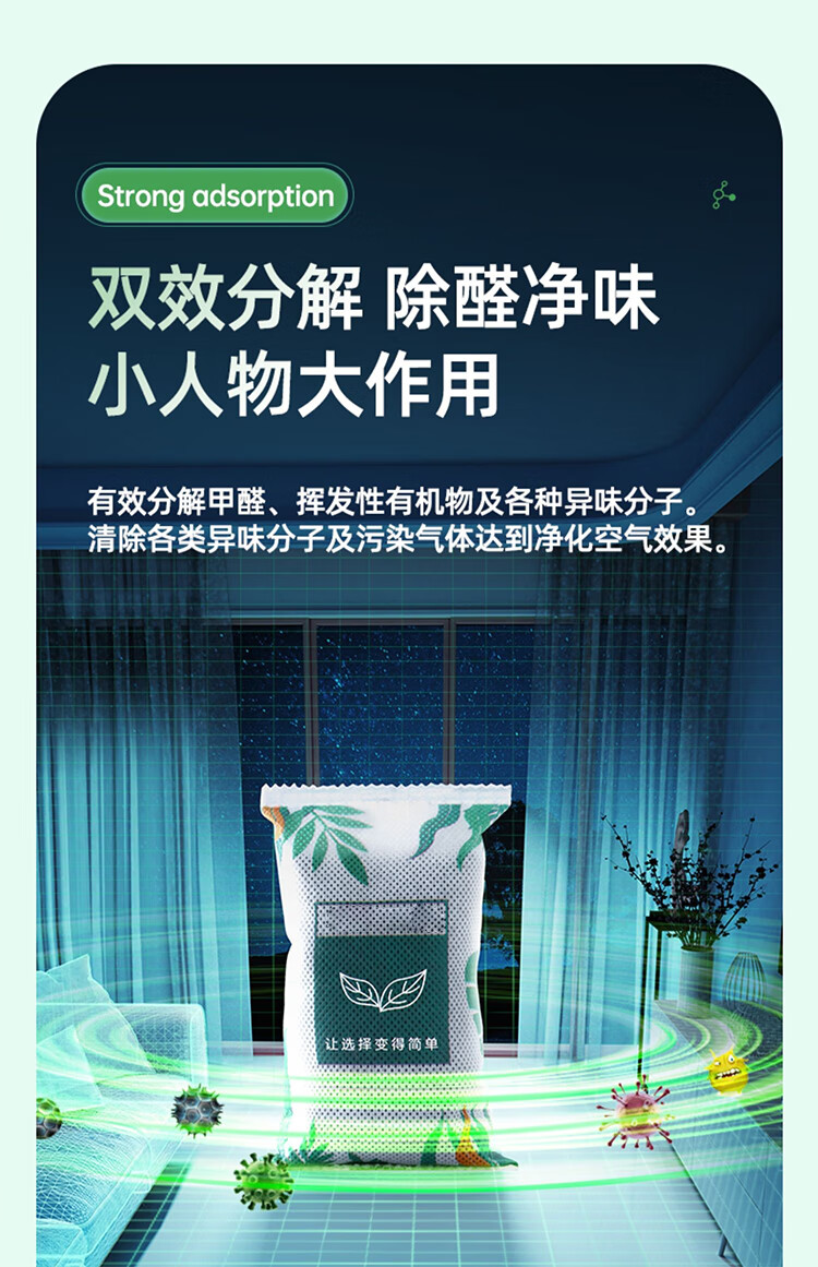 馍彭德国除甲醛活性炭包吸附新房装修神器竹碳净化去除臭异味室内家用 2KG【纳米矿晶强效型-快速吸附20-40平】送2检测盒