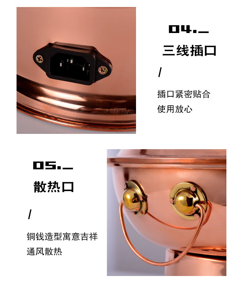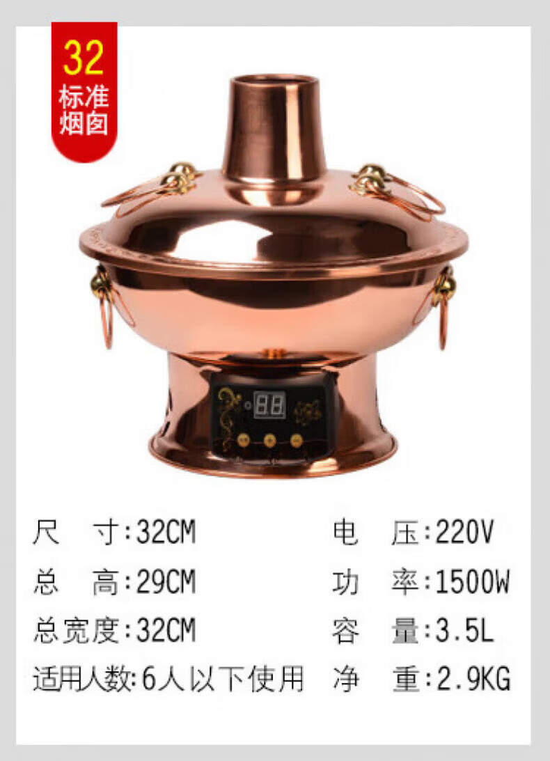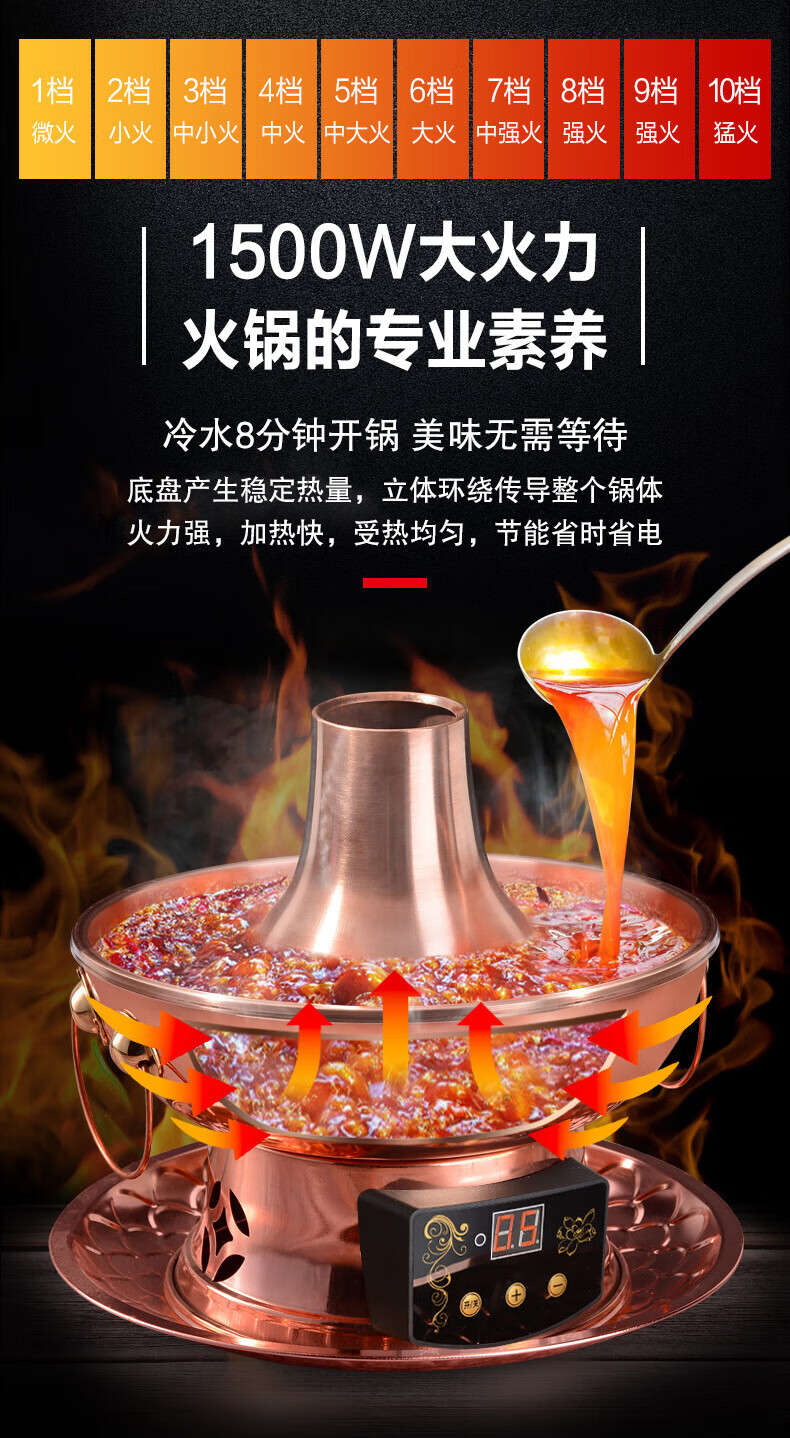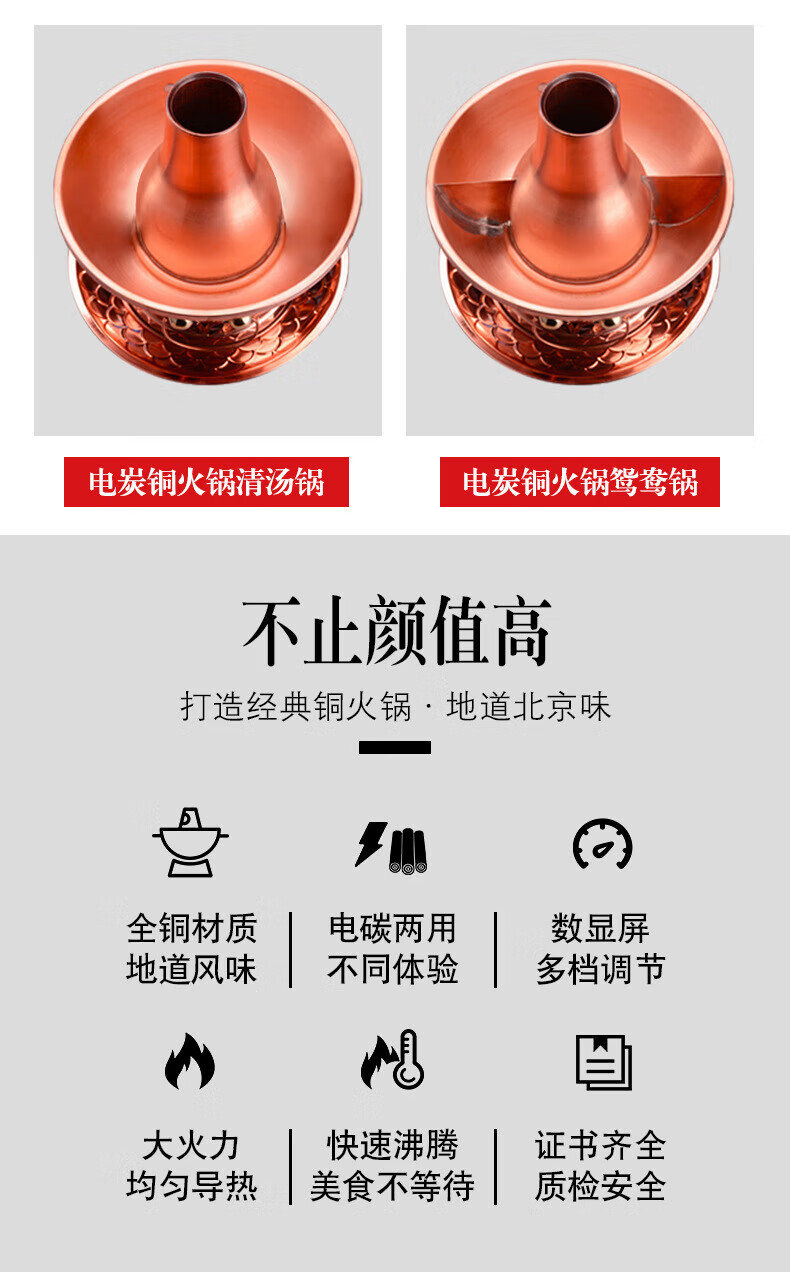 MMOTRO日本品牌紫铜电碳两用铜火锅加厚鸳鸯铜插电铜锅黄铜火锅家用款 紫铜(遥控数显10挡调温款) 34cm 32cm鸳鸯锅(6人以下使用)