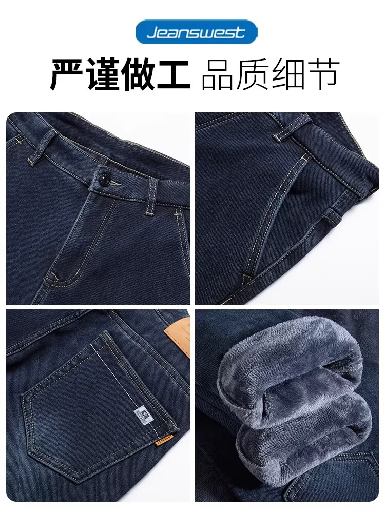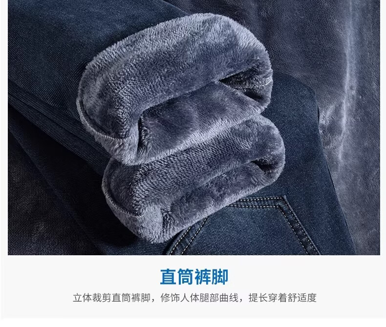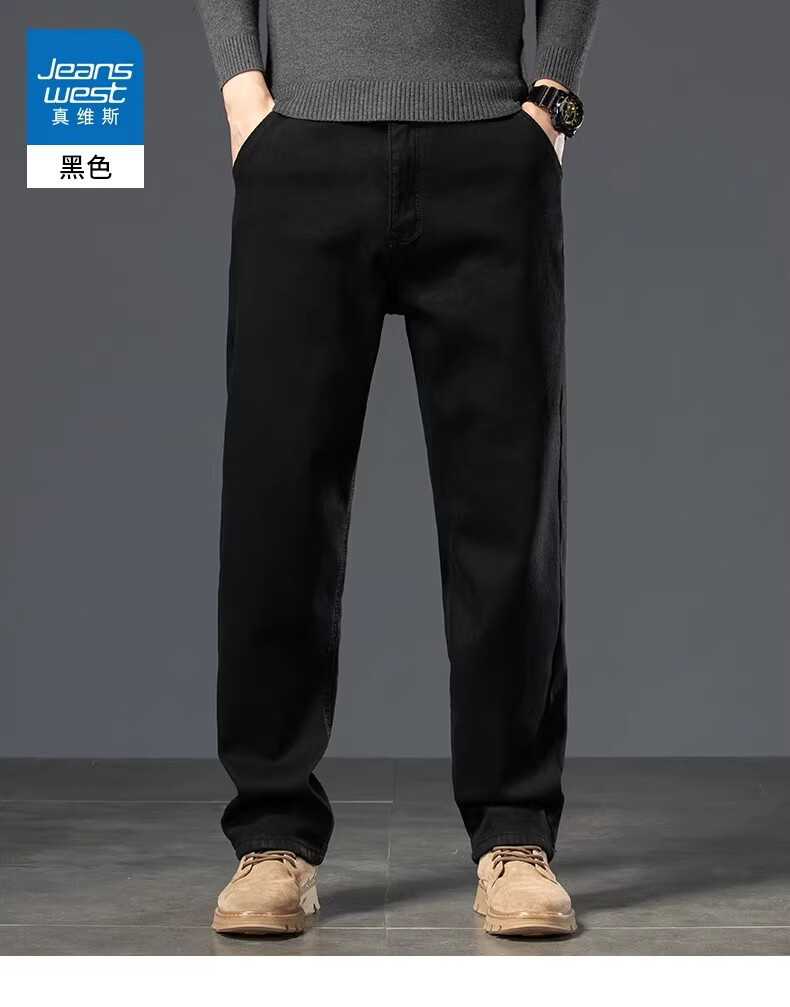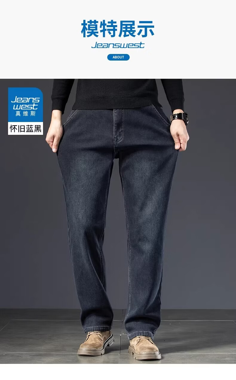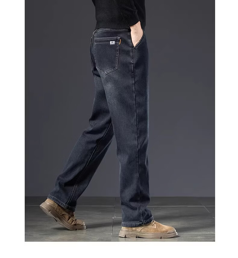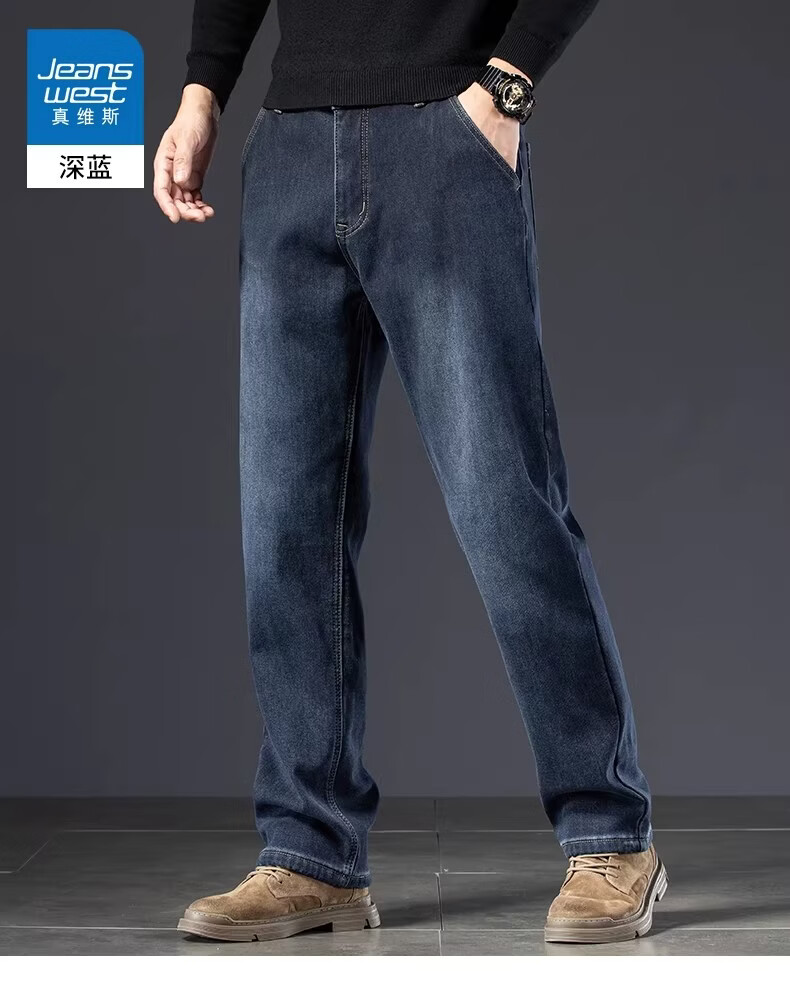 真维斯复古水洗加绒加厚牛仔裤男士冬季新款宽松直筒保暖休闲长裤 怀旧蓝黑加绒 【加绒加厚】 28 【建议95-110斤】