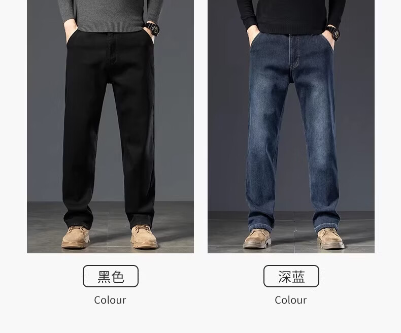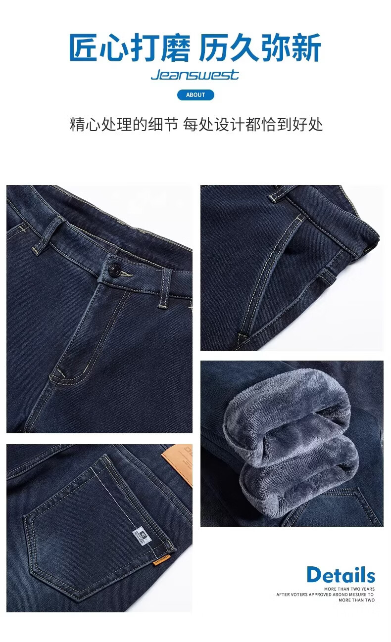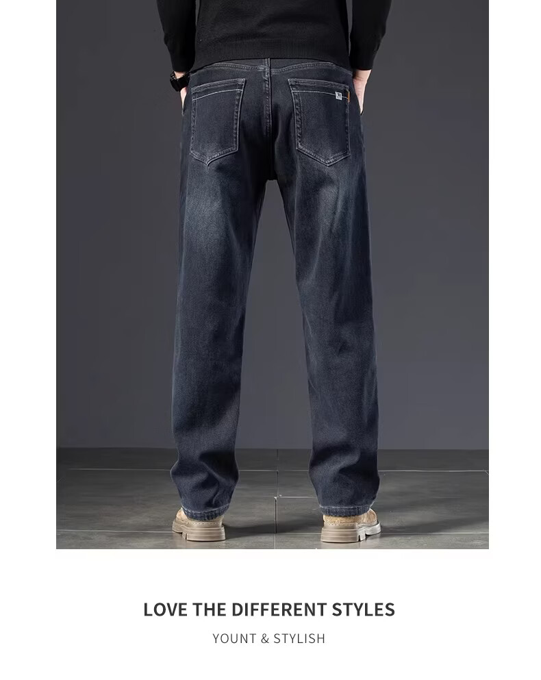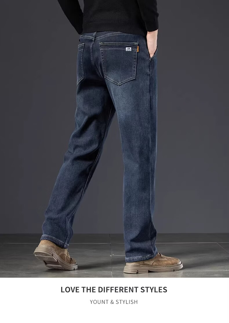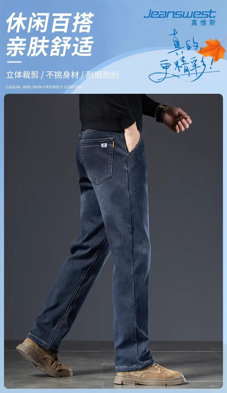 真维斯复古水洗加绒加厚牛仔裤男士冬季新款宽松直筒保暖休闲长裤 怀旧蓝黑加绒 【加绒加厚】 28 【建议95-110斤】