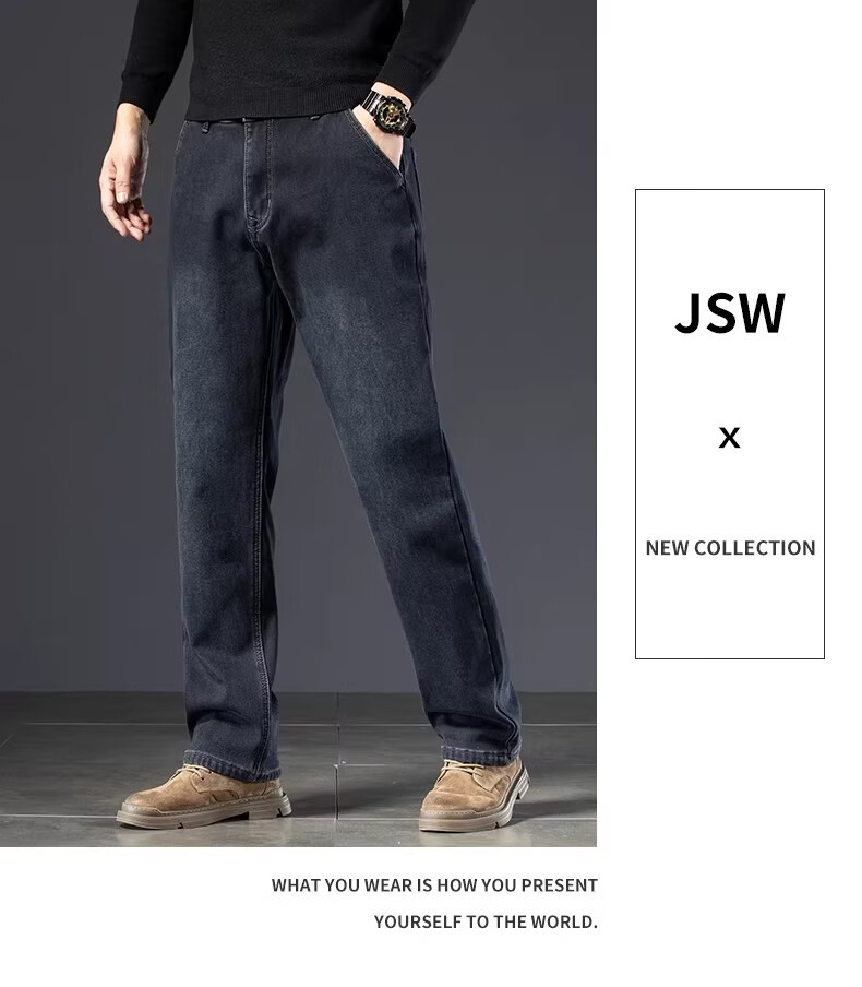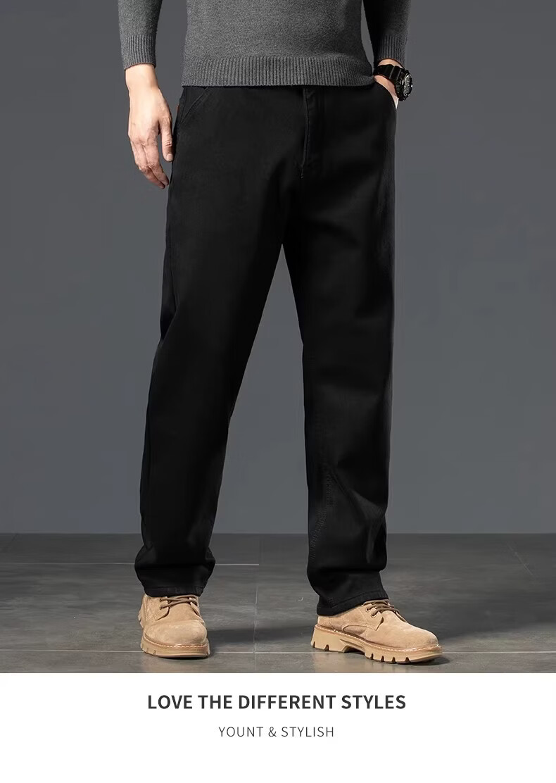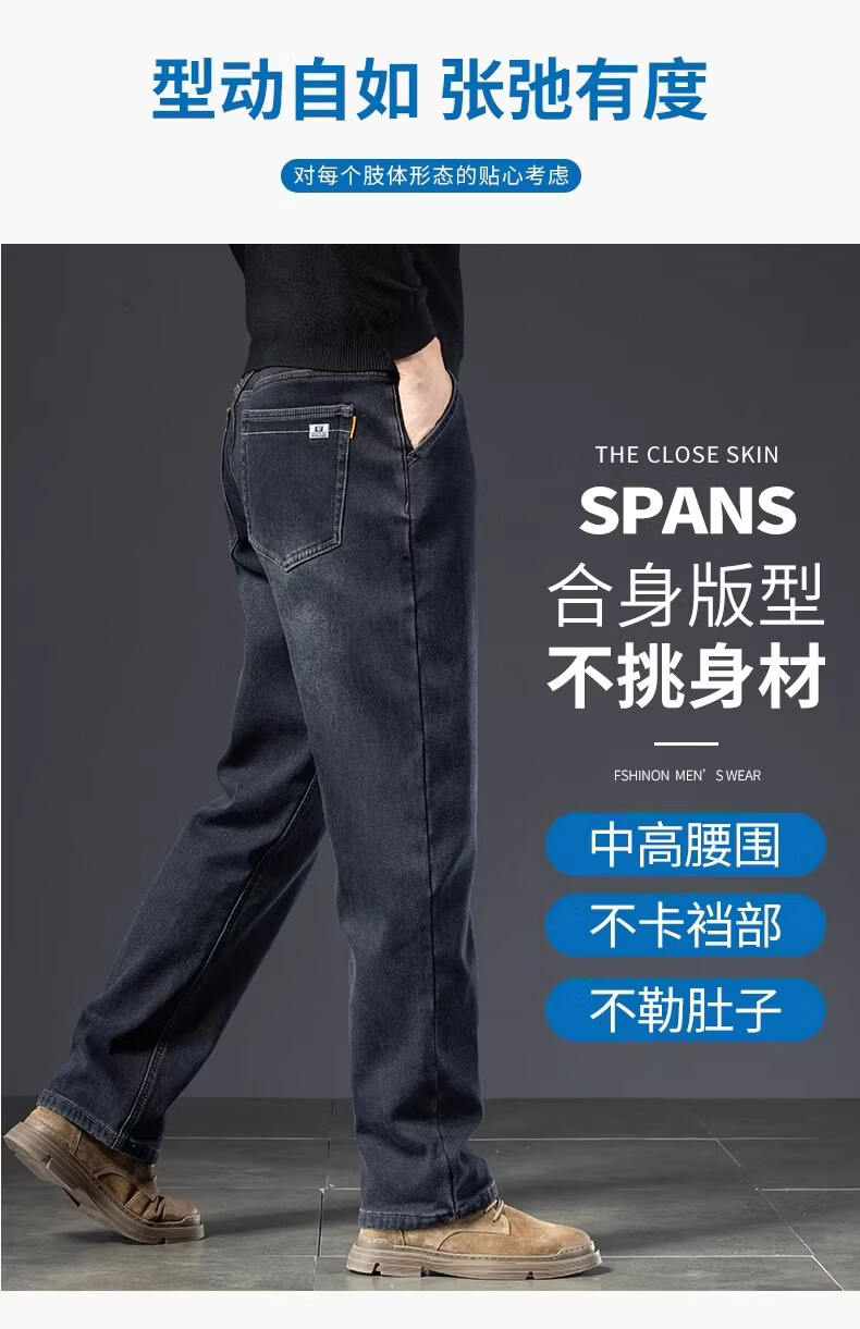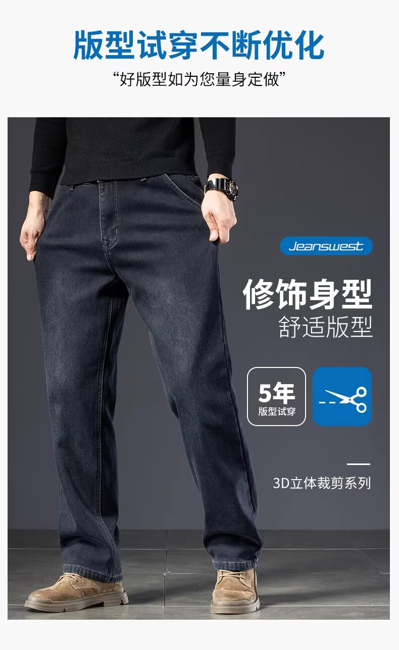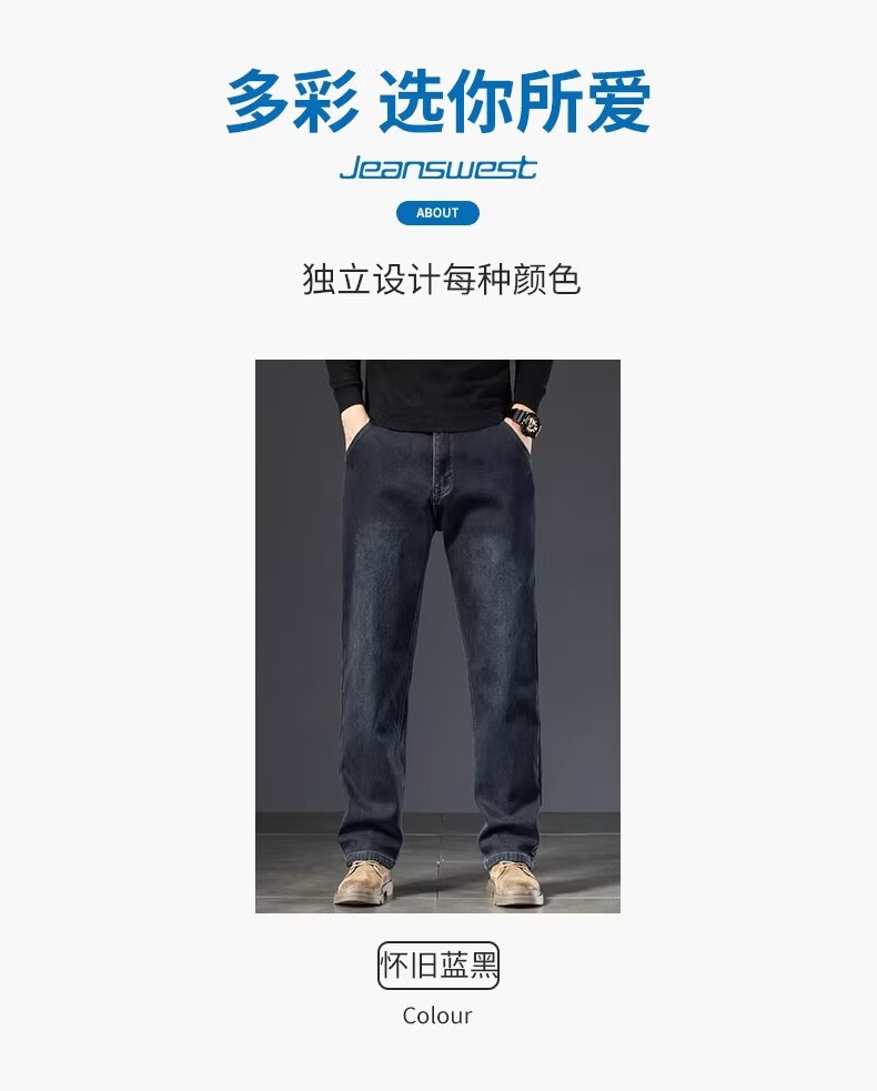 真维斯复古水洗加绒加厚牛仔裤男士冬季新款宽松直筒保暖休闲长裤 怀旧蓝黑加绒 【加绒加厚】 28 【建议95-110斤】