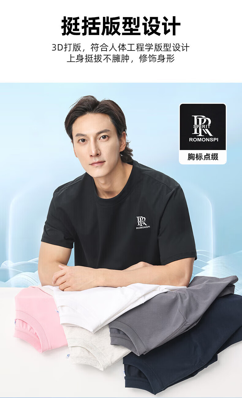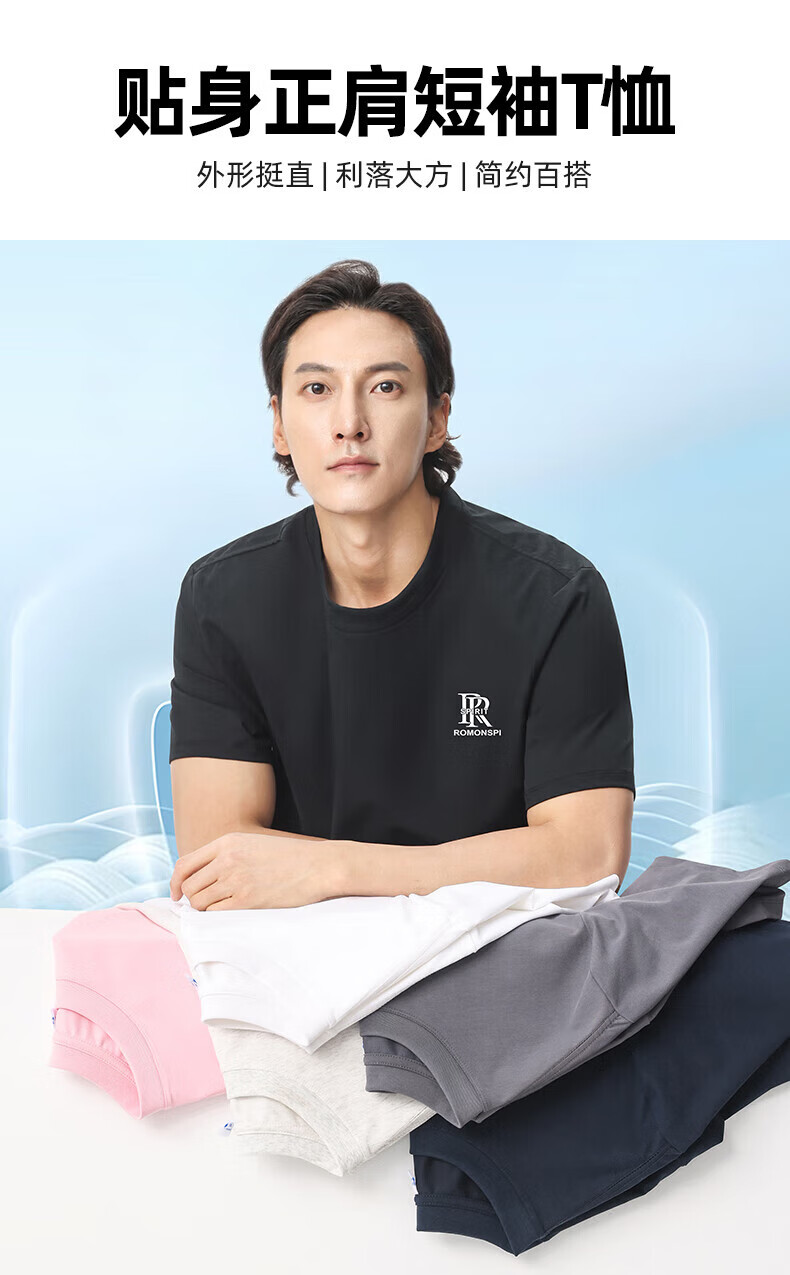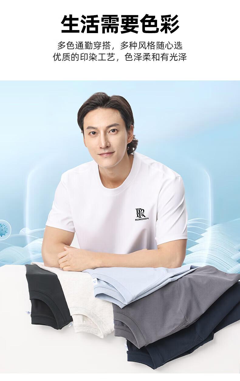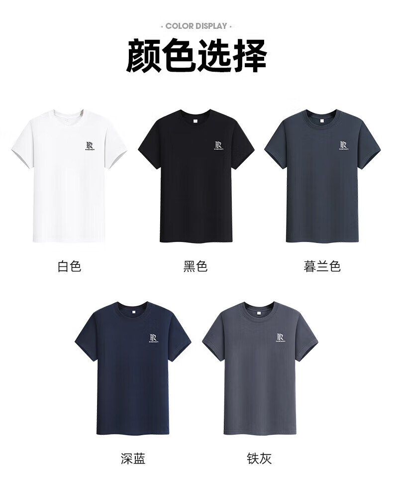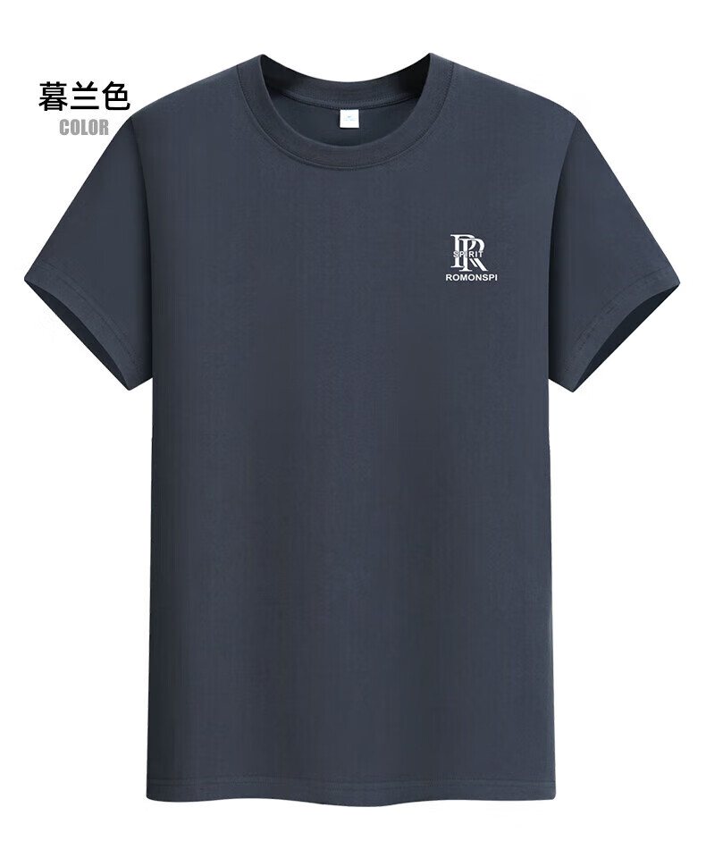 罗蒙(ROMON)纯棉7A抗菌短袖T恤男宽松圆领2026夏季新款百搭休闲时尚纯色上衣 暮兰色 L (175) 【建议125-145斤】