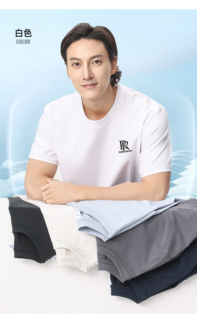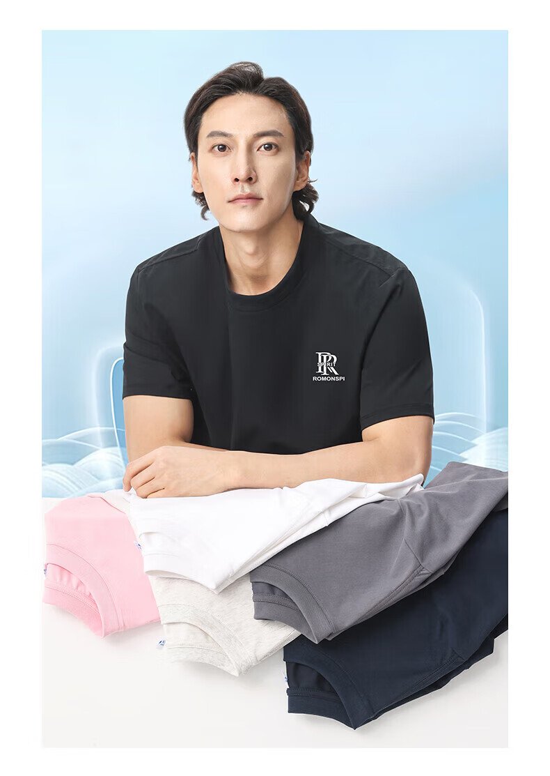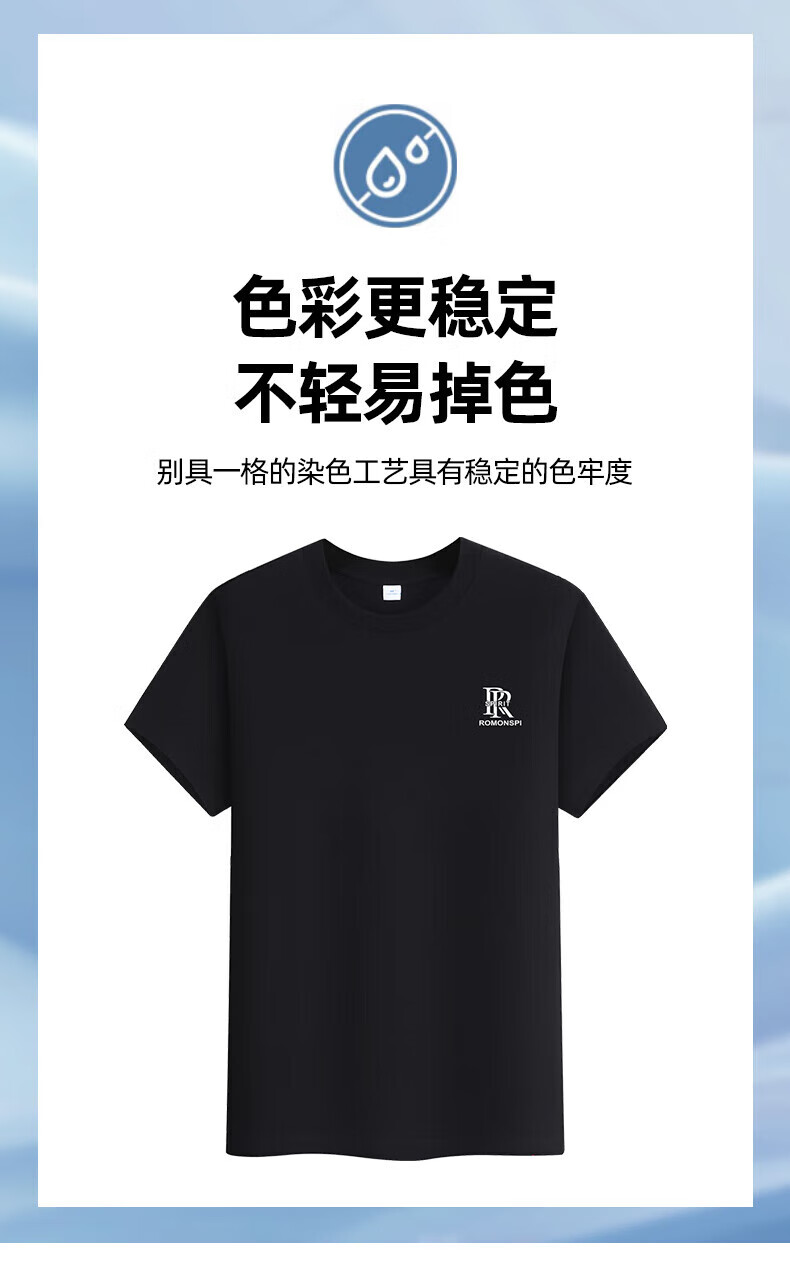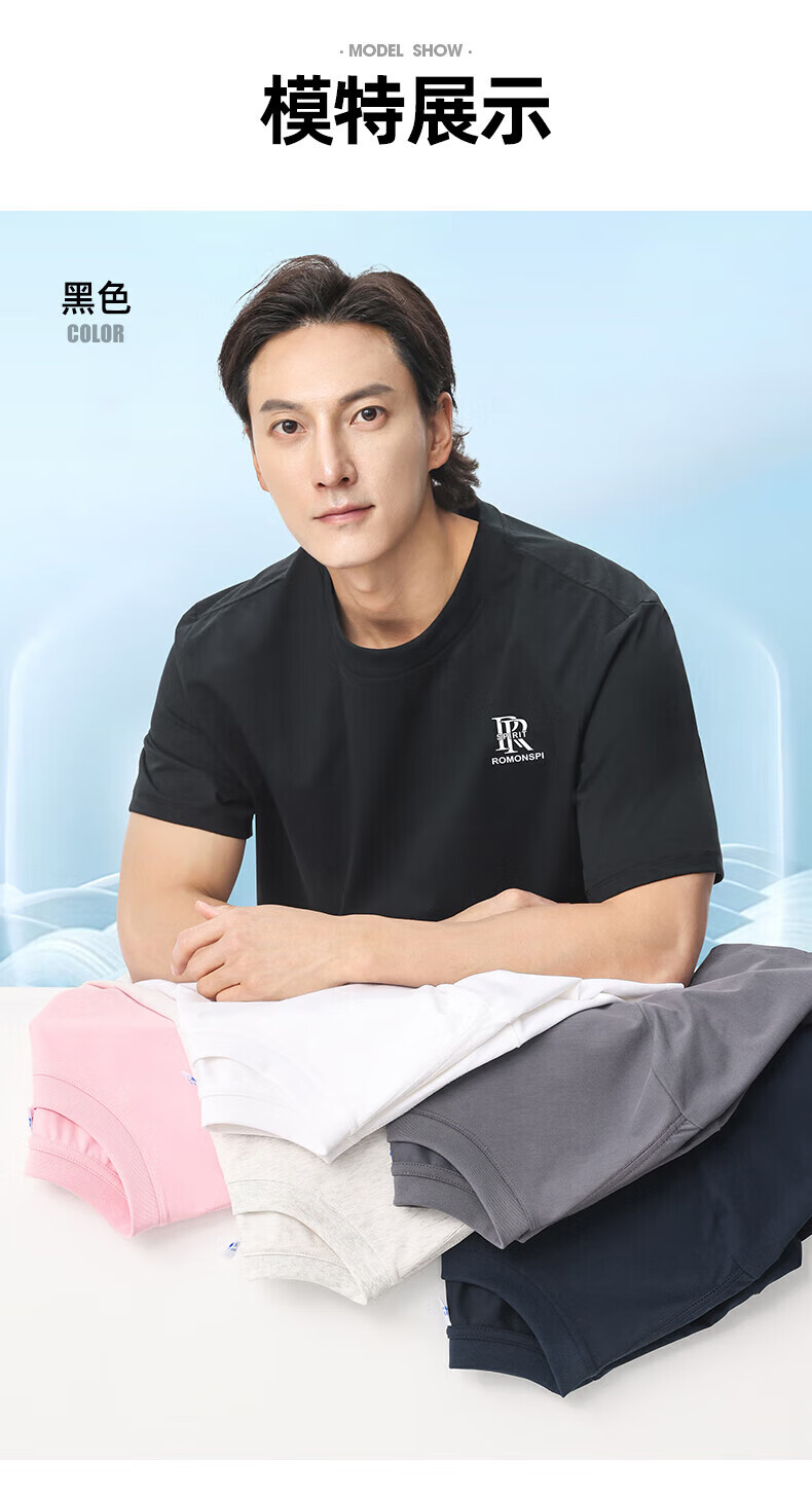 罗蒙(ROMON)纯棉7A抗菌短袖T恤男宽松圆领2026夏季新款百搭休闲时尚纯色上衣 暮兰色 L (175) 【建议125-145斤】