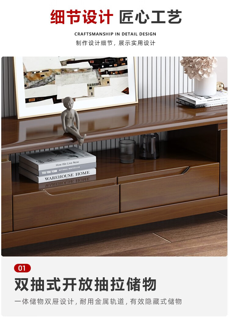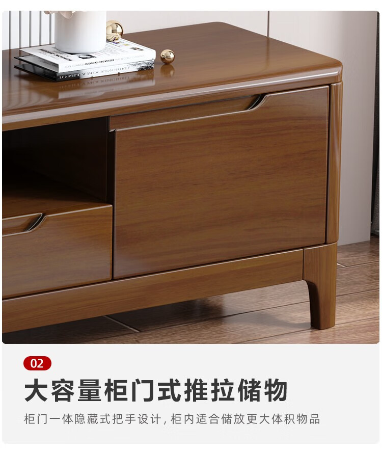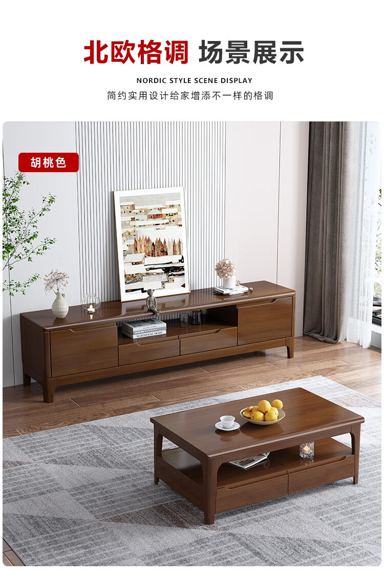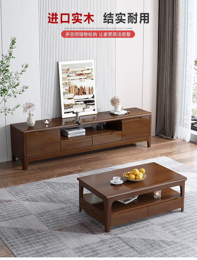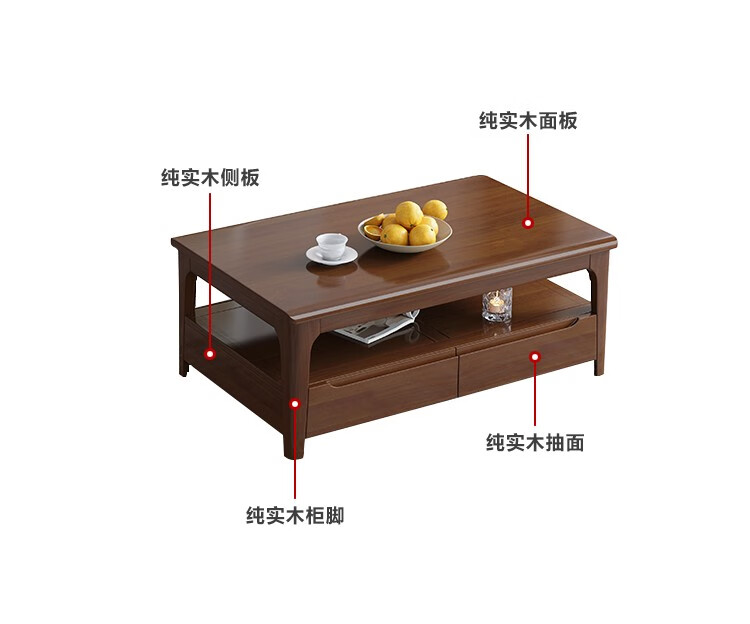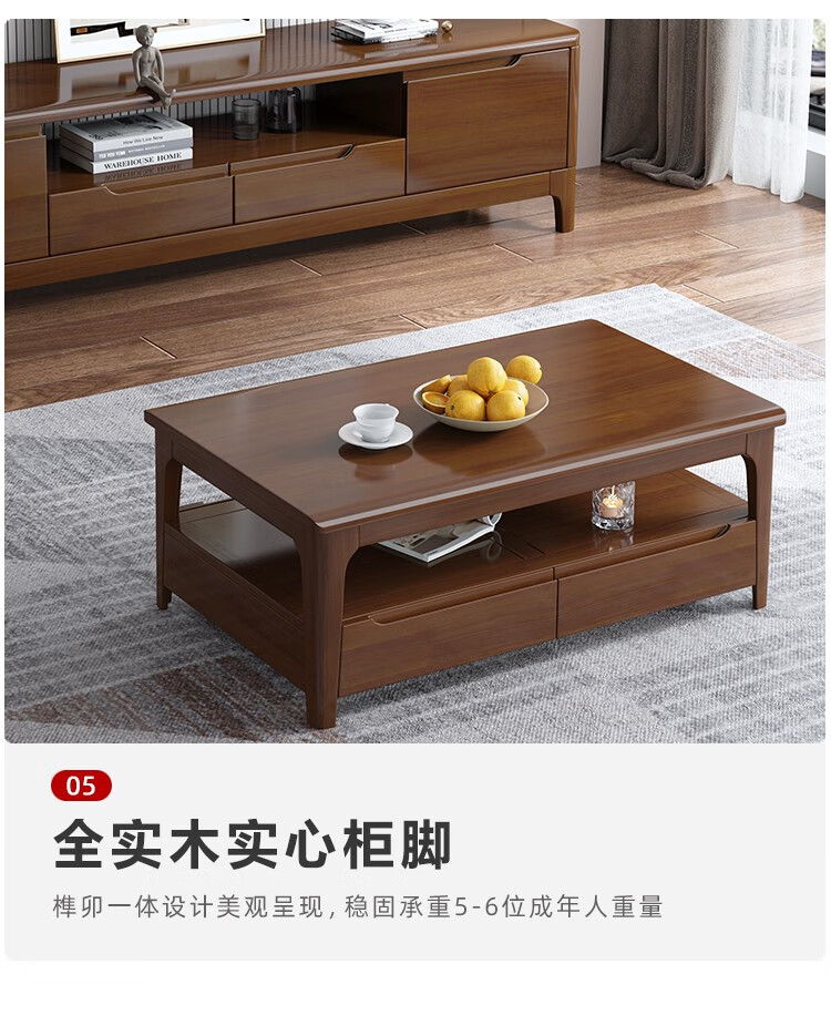 木尔雅全实木茶几电视柜客厅现代简约家用原木茶几带抽屉长方形小户型 全实木加厚120*60*45CM【四抽】胡桃色 【送货上门】专业师傅安装